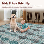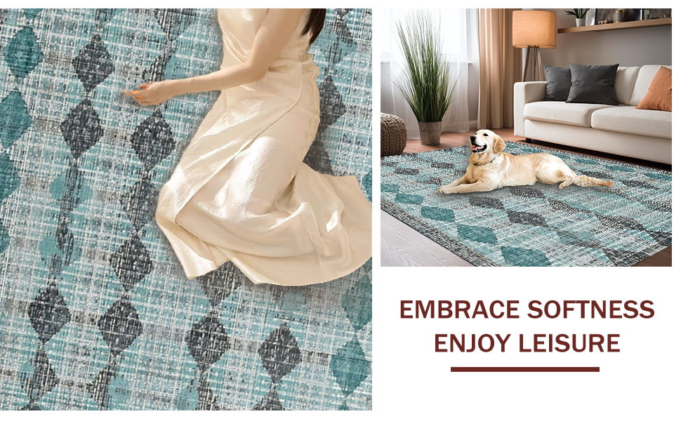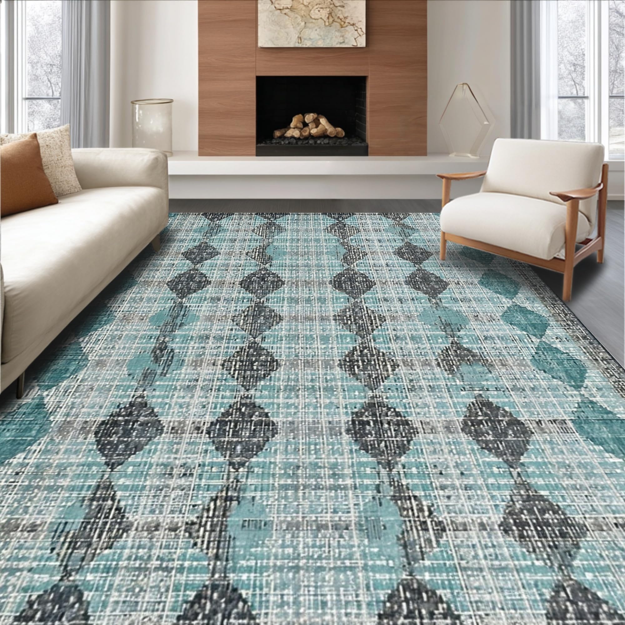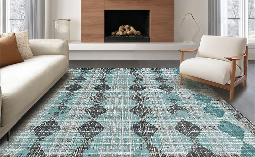 Ultra Soft Area Rug, Non Slip, Stain Resistant, Washable Area Rugs for Living Room, Bedroom, Modern Geometric Rug: Diamond & Stripe Fusion for a Stylish Hallway(Blue) Overview: