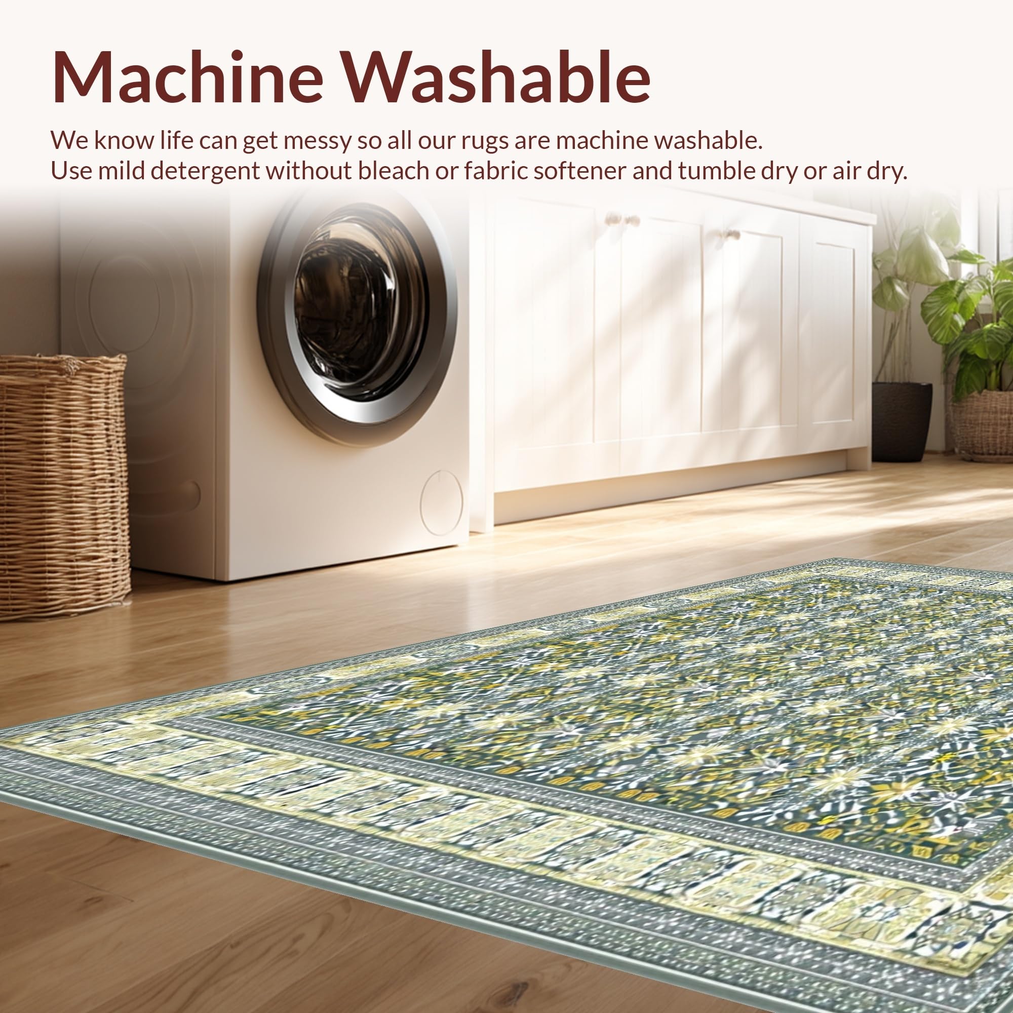 - Machine Washable: Our rugs can be easily thrown in the wash machine.