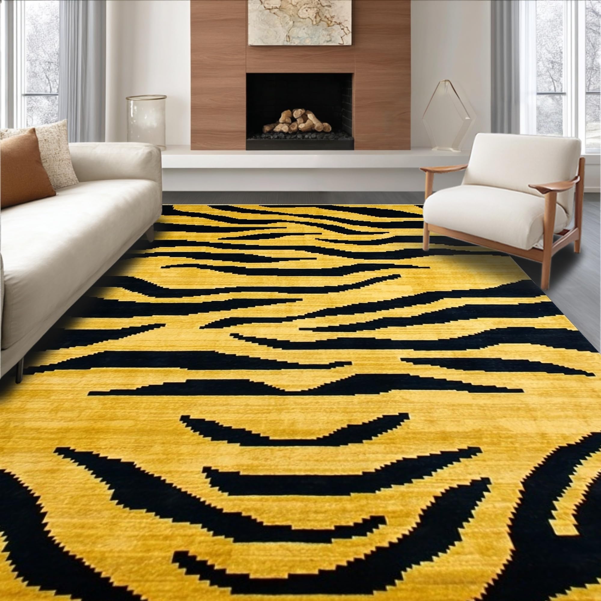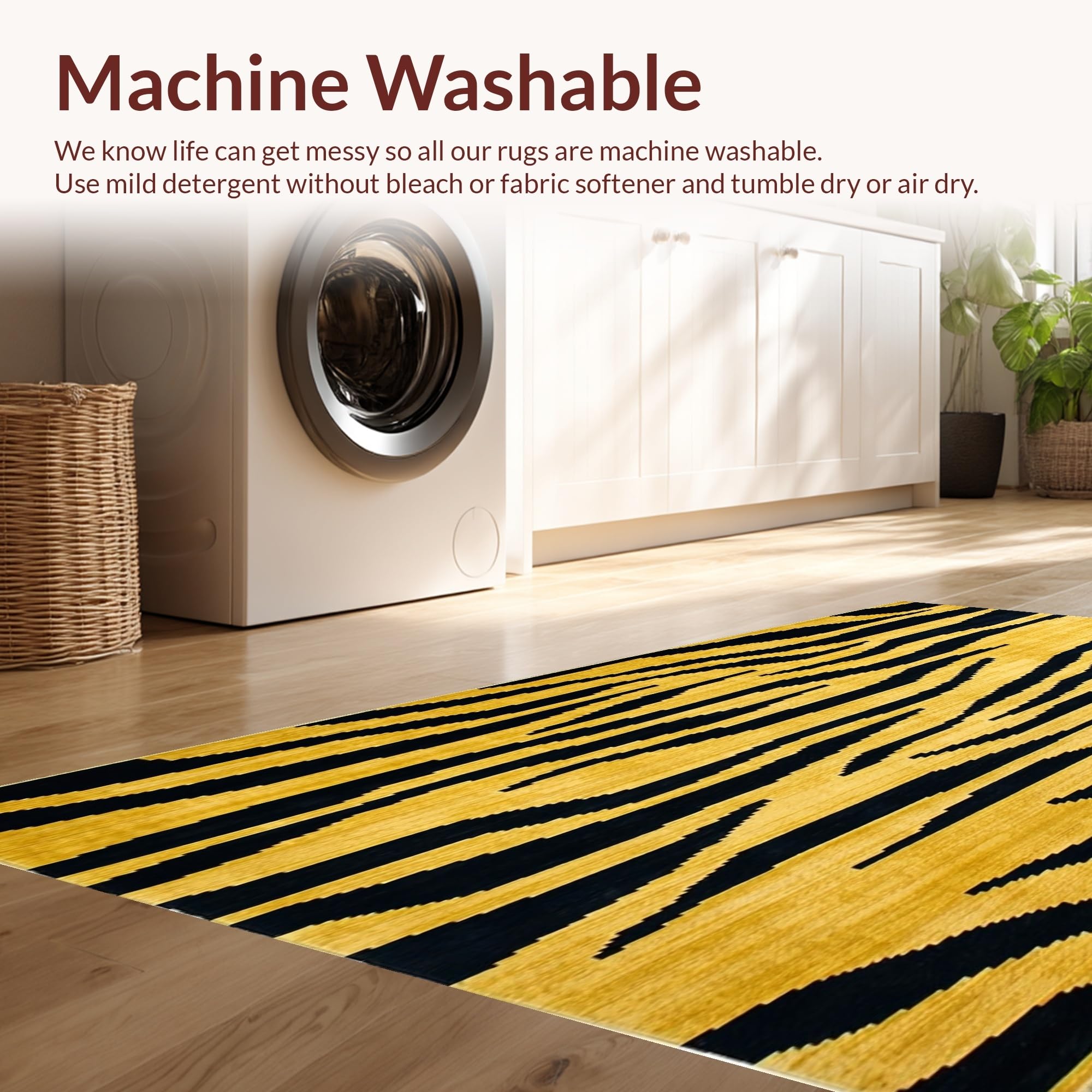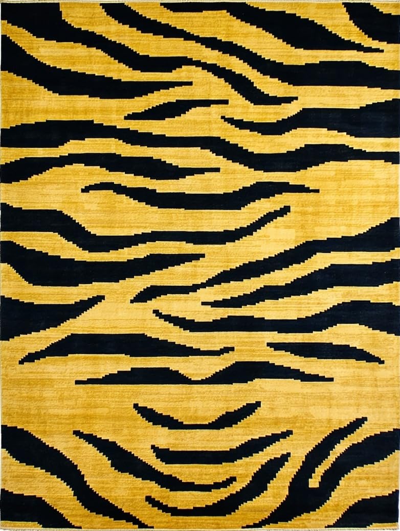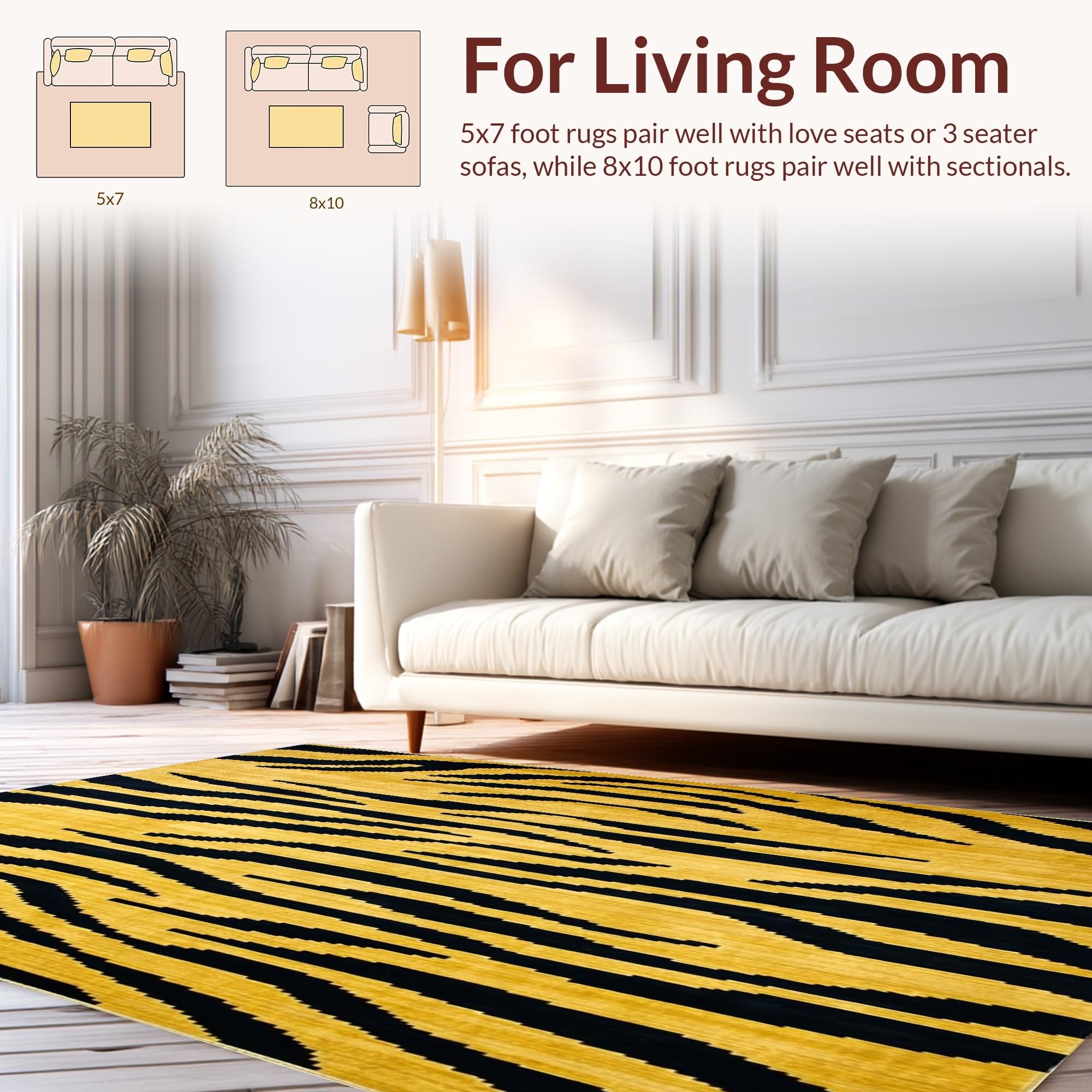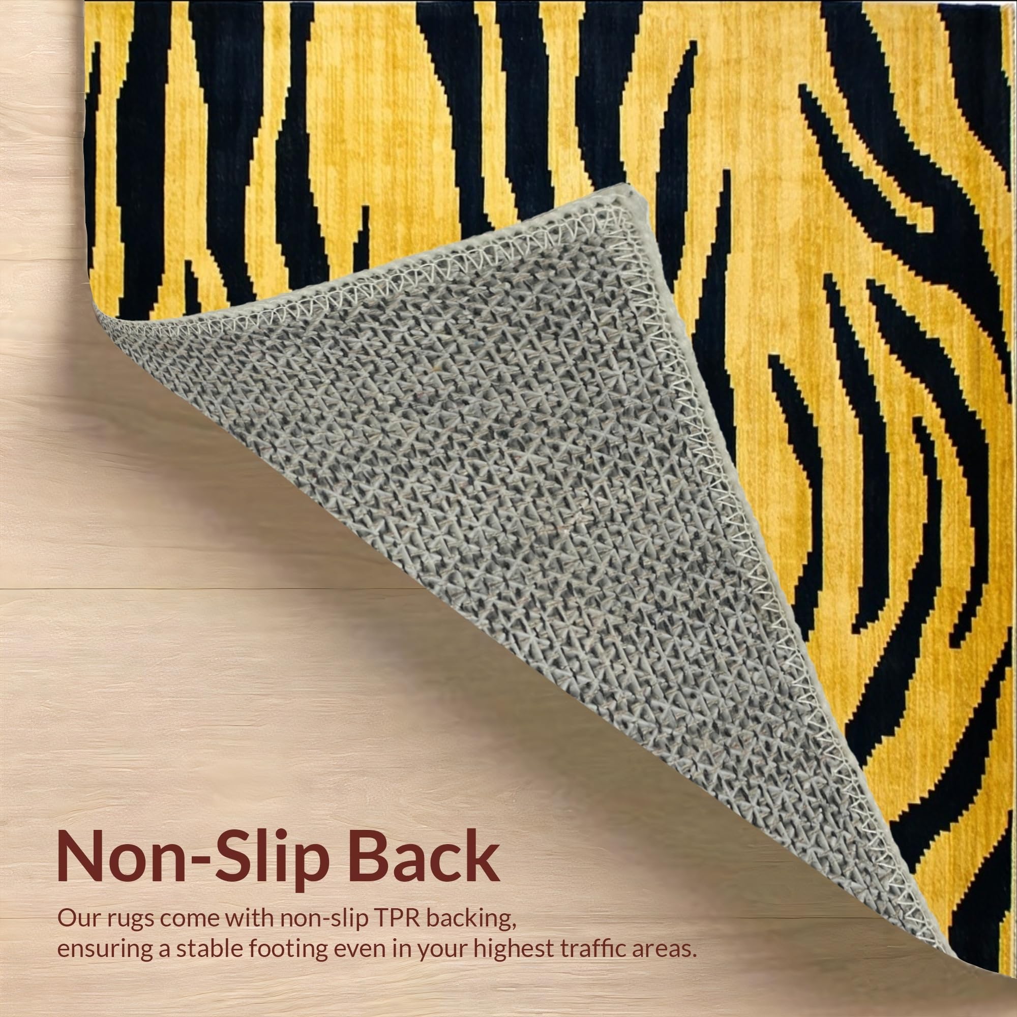Ultra Soft Area Rug, Non Slip, Stain Resistant, Washable Area Rugs for Living Room, Bedroom, Modern Geometric Tiger Area(Gold) Overview: