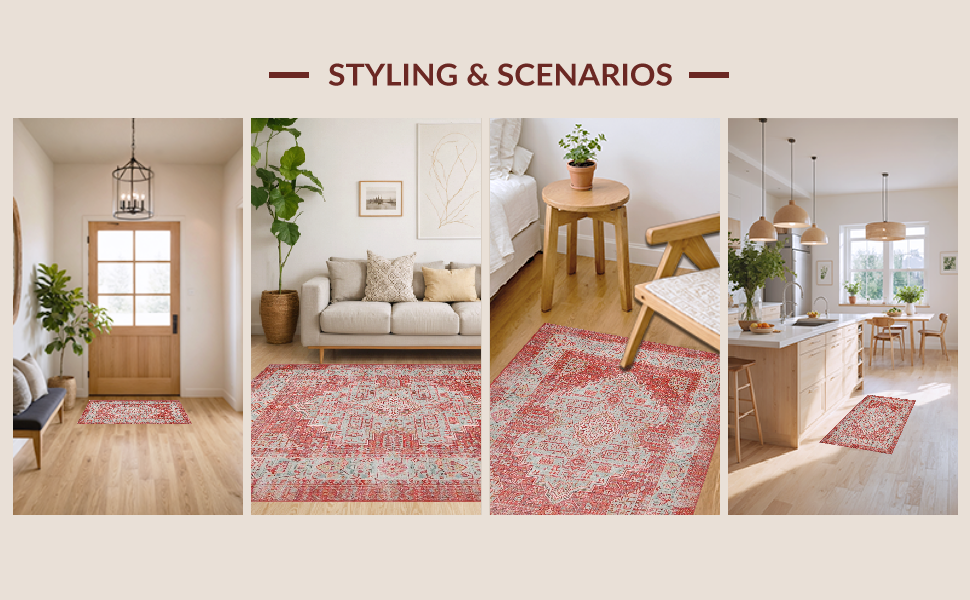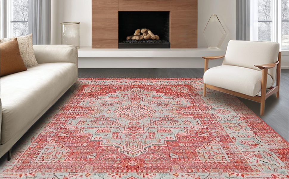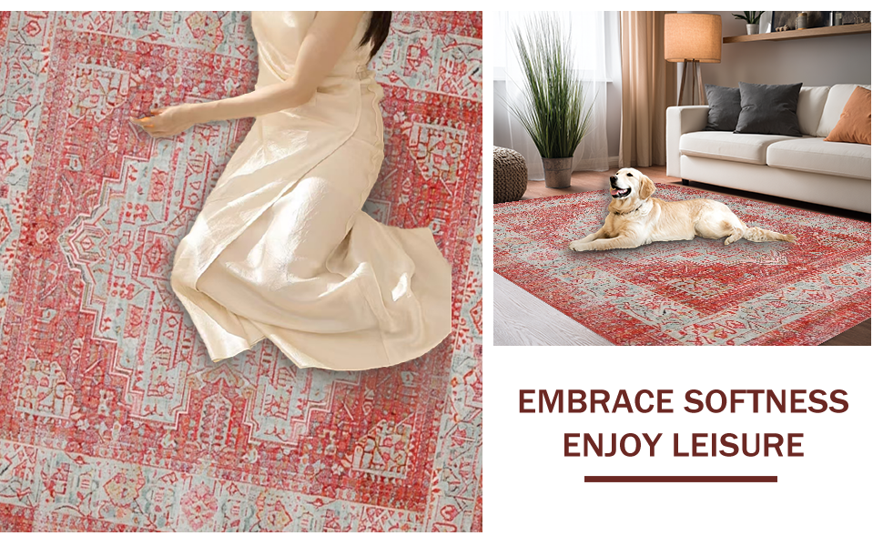 Ultra Soft Area Rug, Non Slip, Stain Resistant, Washable Area Rugs for Living Room, Bedroom, Modern Glamorous Ogee Style(Red) Overview: