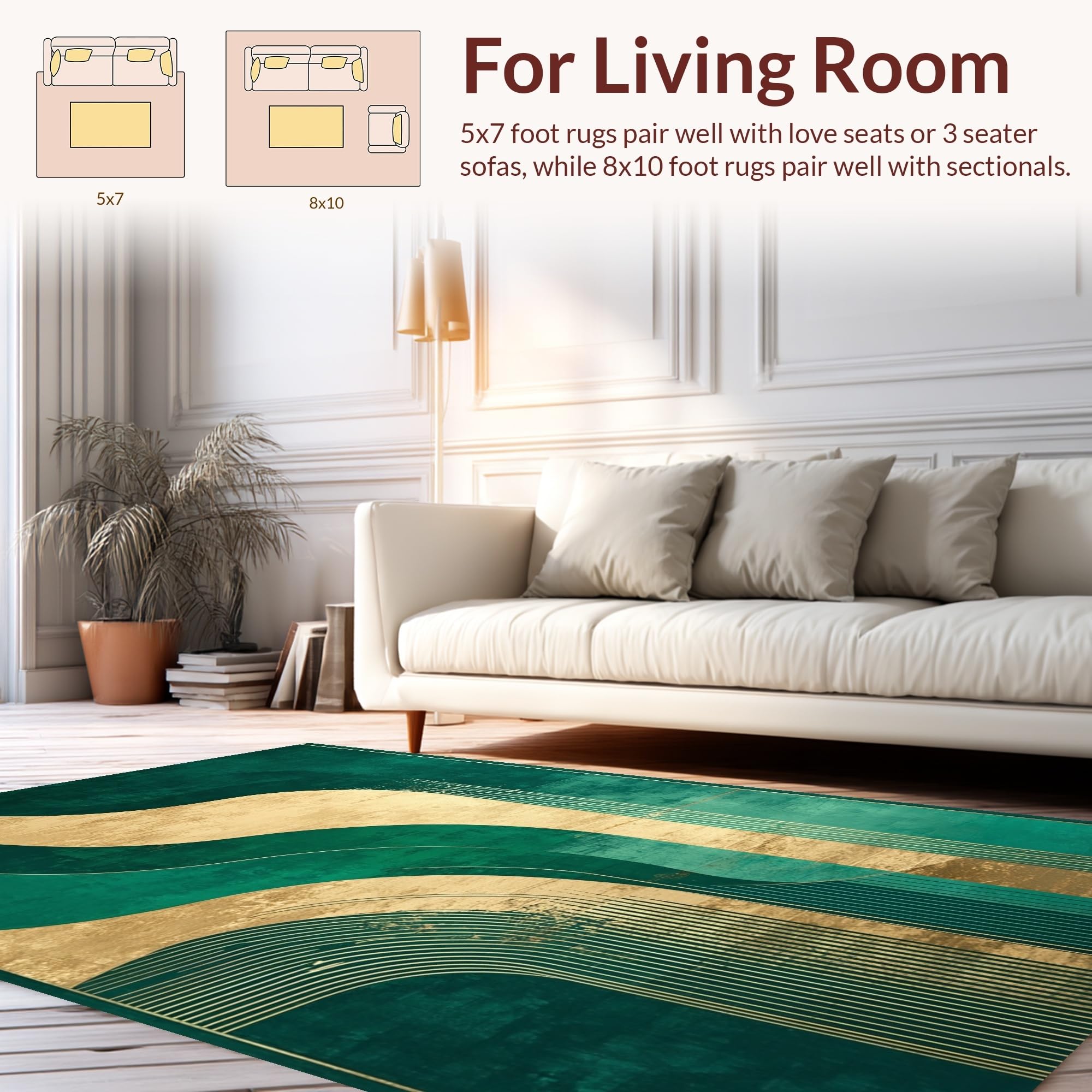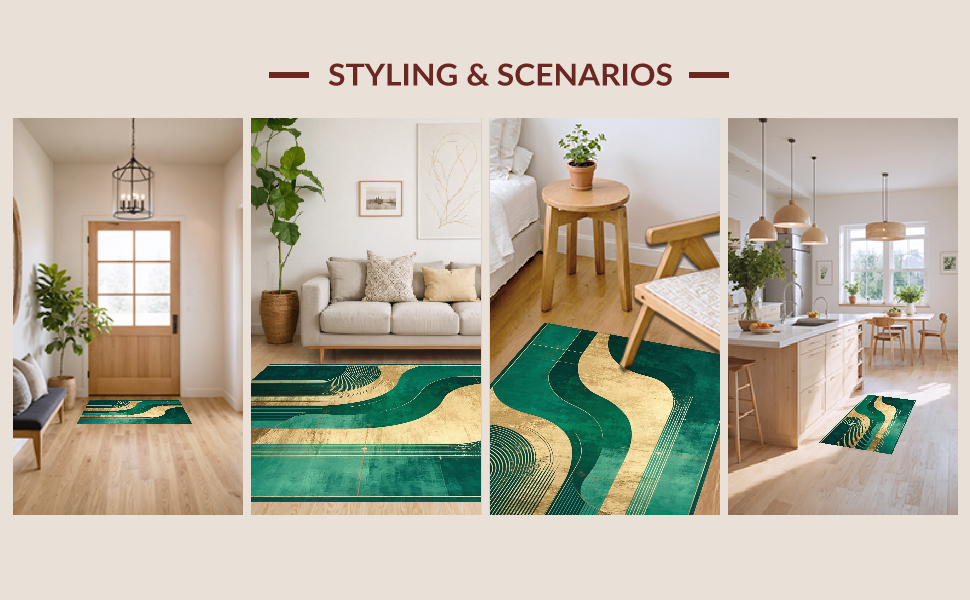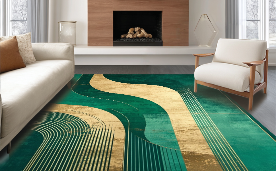 Ultra Soft Area Rug, Non Slip, Stain Resistant, Washable Area Rugs for Living Room, Bedroom, Modern Gradient Artful Style(Green) Overview: