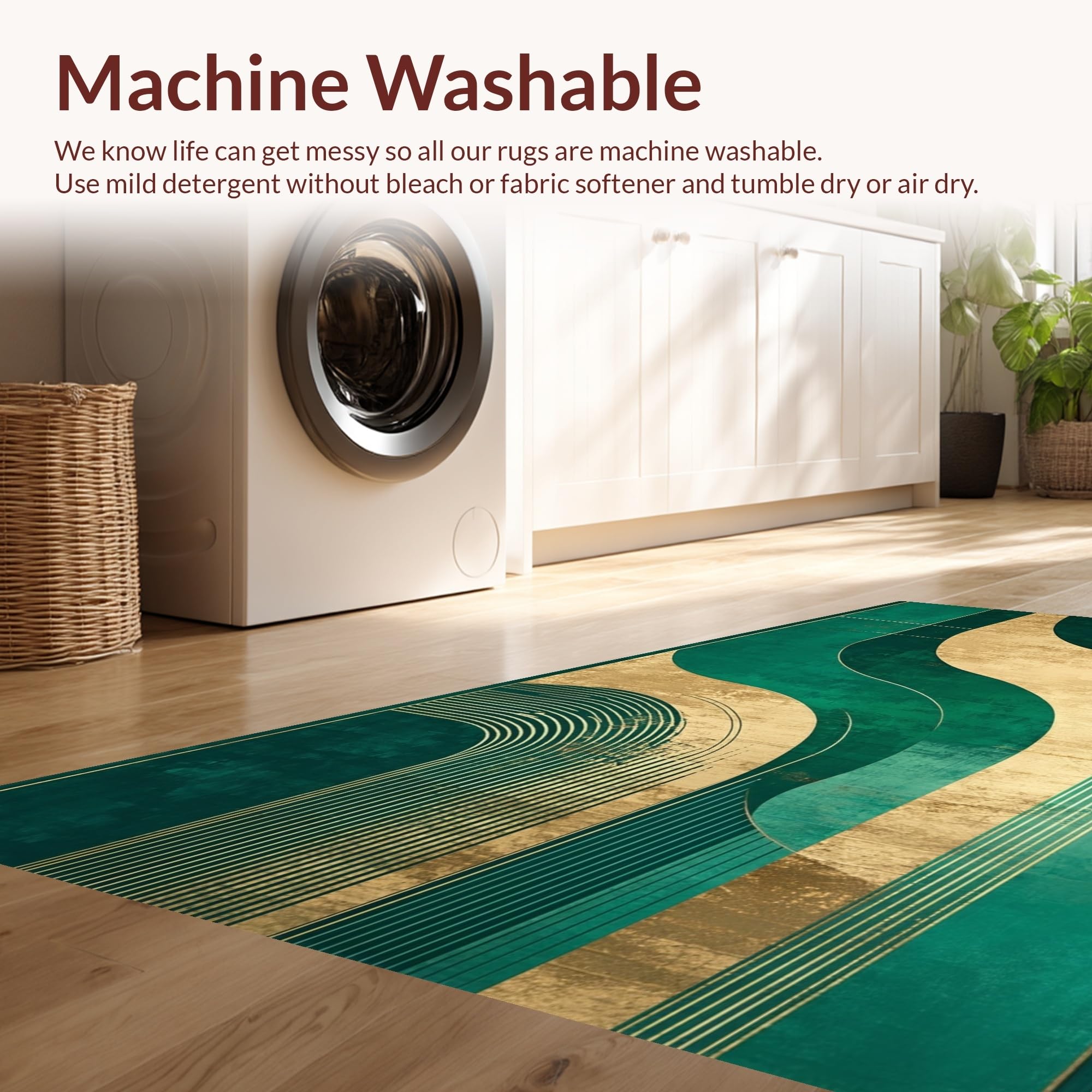 - Machine Washable: Our rugs can be easily thrown in the wash machine.