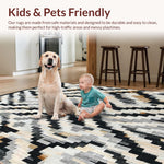 Ultra Soft Area Rug, Non Slip, Stain Resistant, Washable Area Rugs for Living Room, Bedroom, Modern Graphic Chevron Pattern Rug with Stark Black and White Bands(Black) Overview: