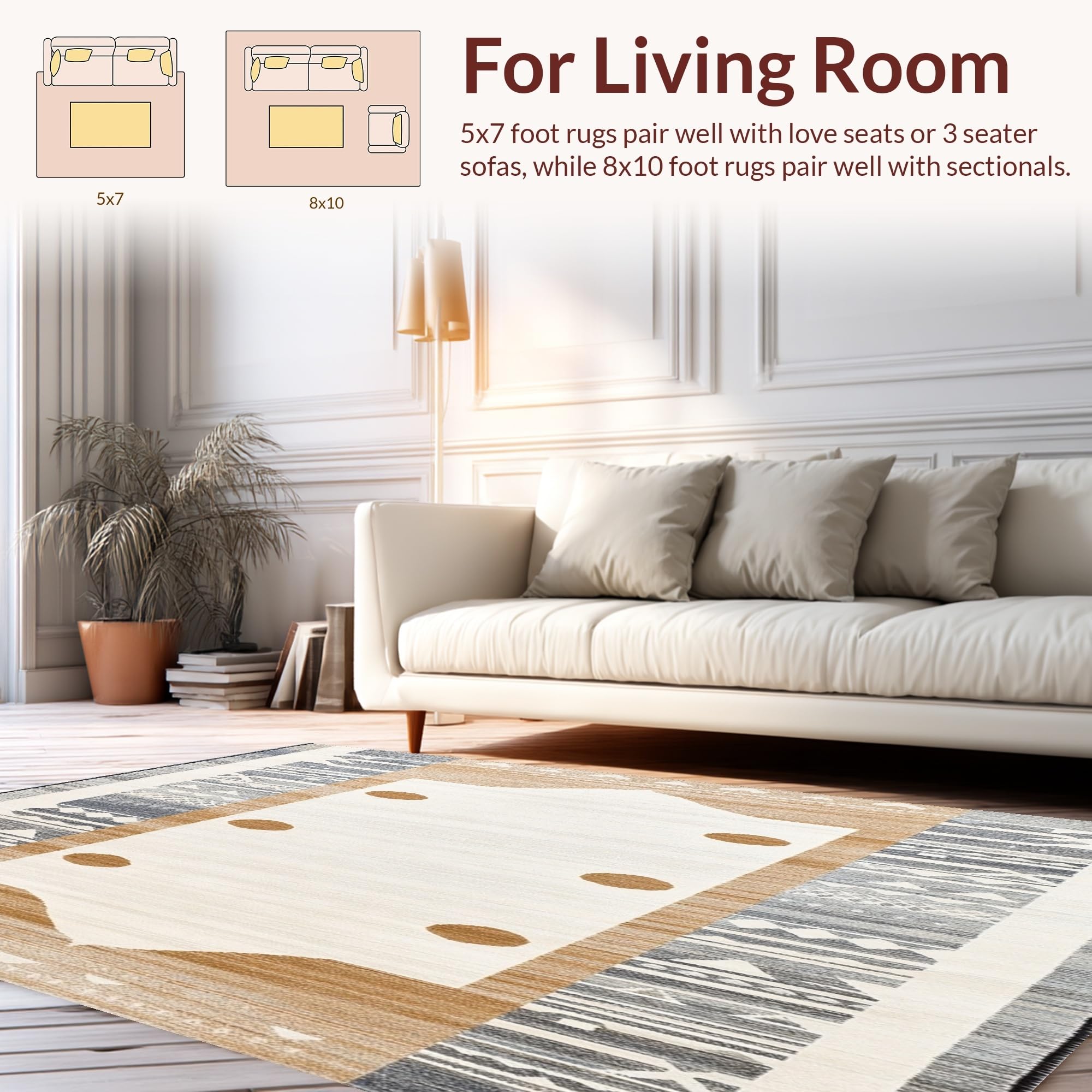 Ultra Soft Area Rug, Non Slip, Stain Resistant, Washable Area Rugs for Living Room, Bedroom, Modern Gray Camel Abstract(Beige) Overview: