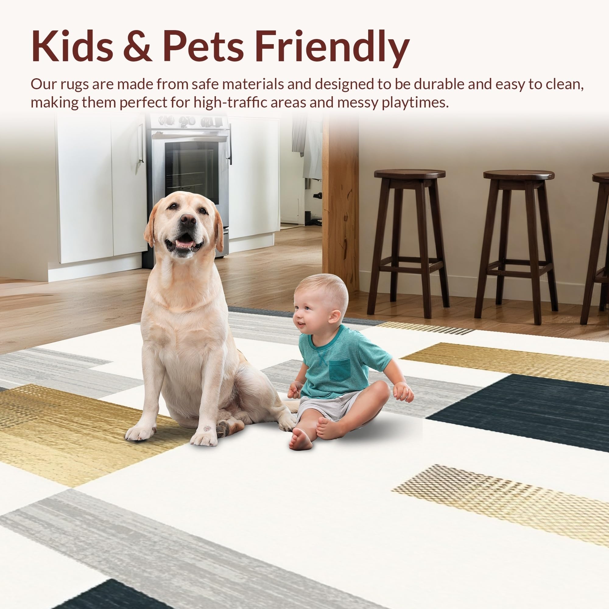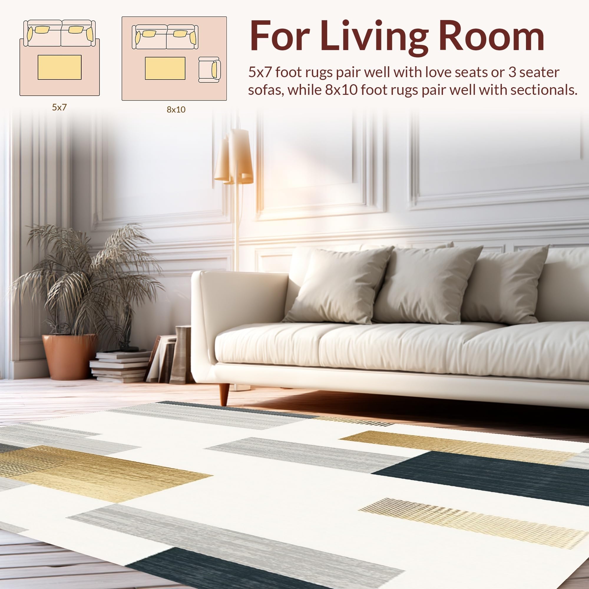 Ultra Soft Area Rug, Non Slip, Stain Resistant, Washable Area Rugs for Living Room, Bedroom, Modern Gray Textured Beige and Gold for Contemporary Spaces(White) Overview: