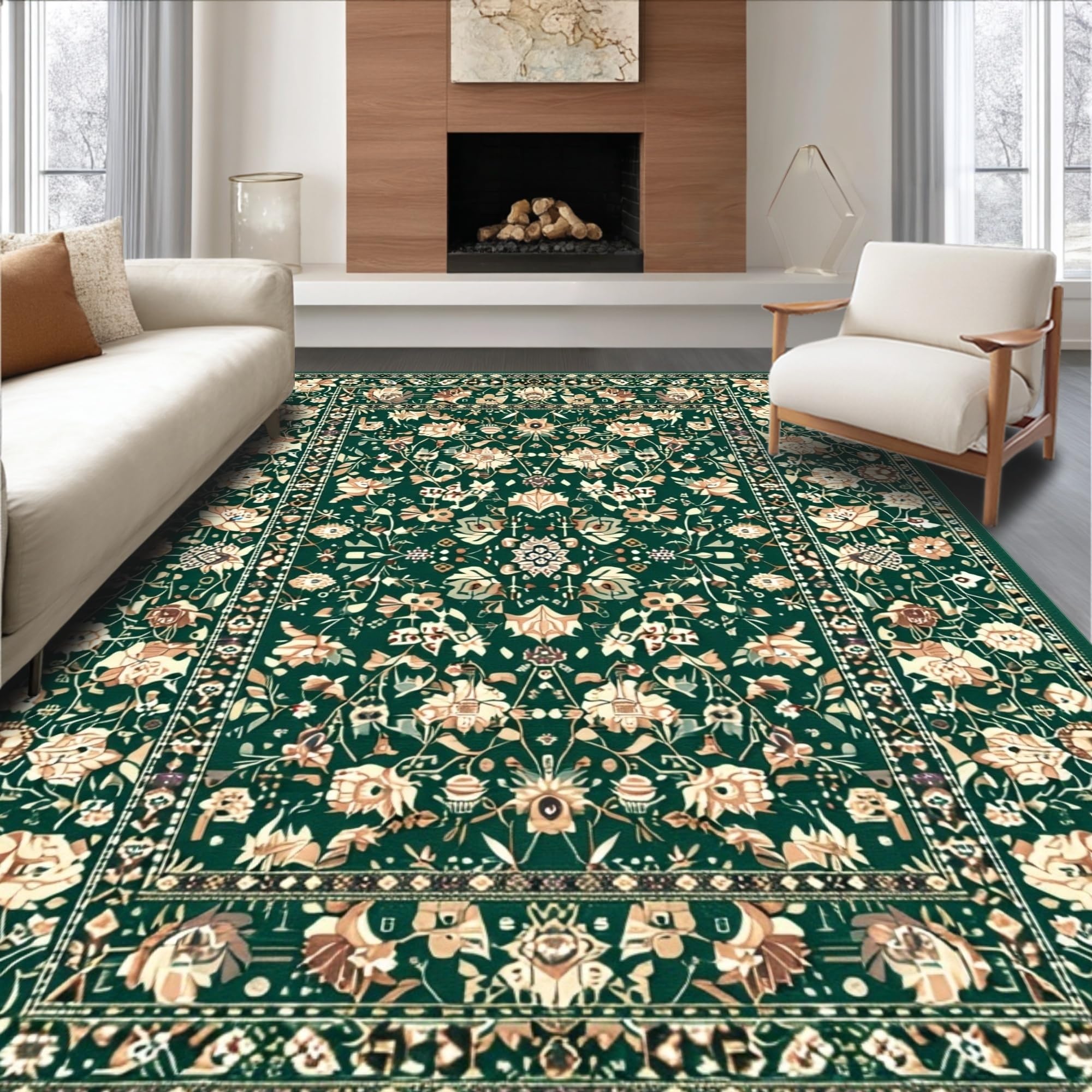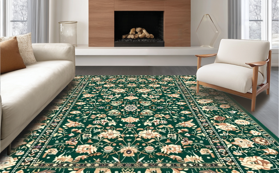 Ultra Soft Area Rug, Non Slip, Stain Resistant, Washable Area Rugs for Living Room, Bedroom, Modern Green Aesthetic Blend(Green) Overview: