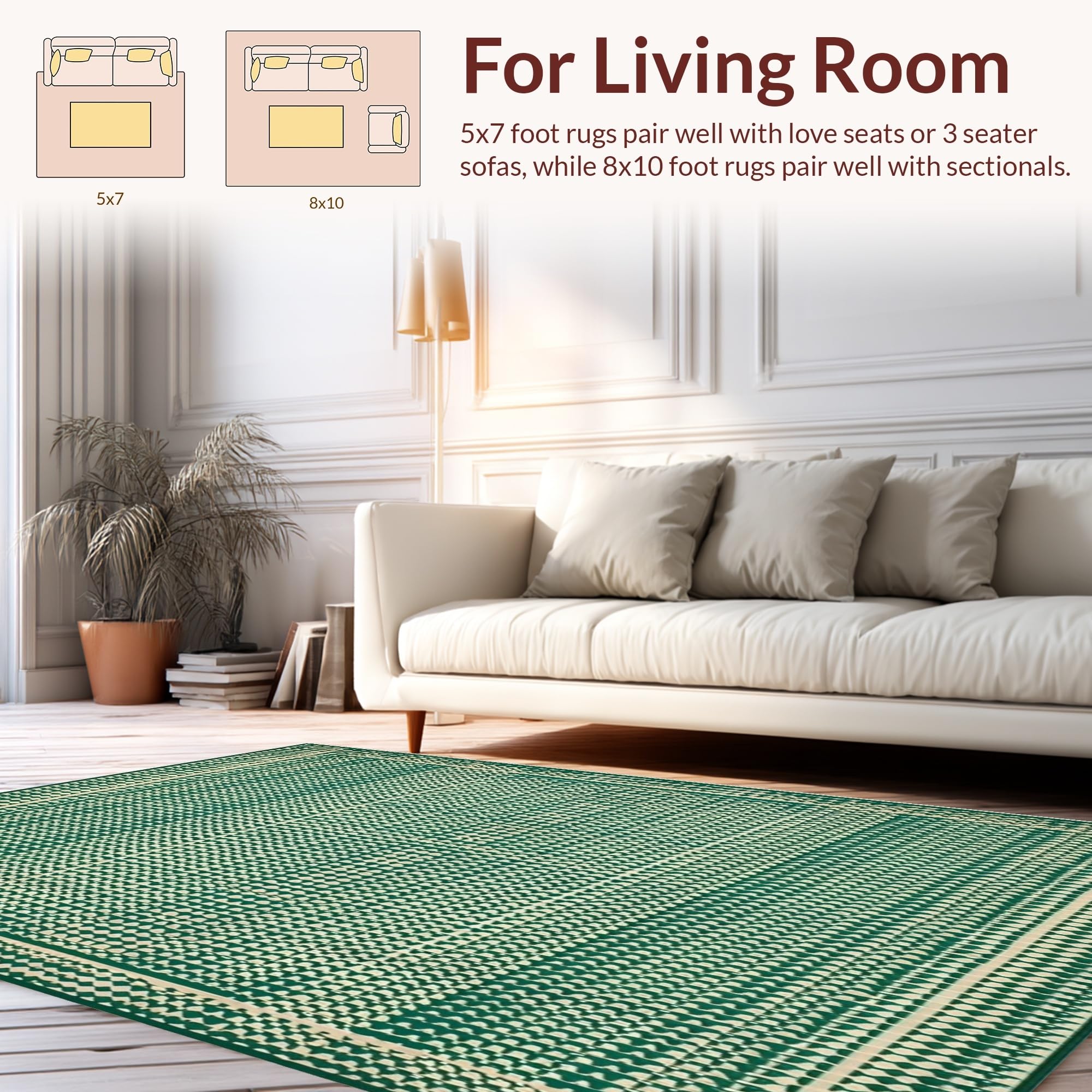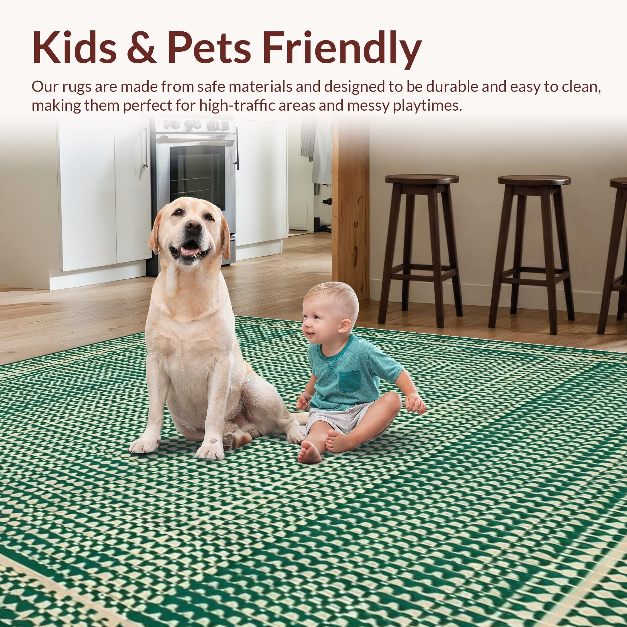 Ultra Soft Area Rug, Non Slip, Stain Resistant, Washable Area Rugs for Living Room, Bedroom, Modern Green Beige Area(Green) Overview:
