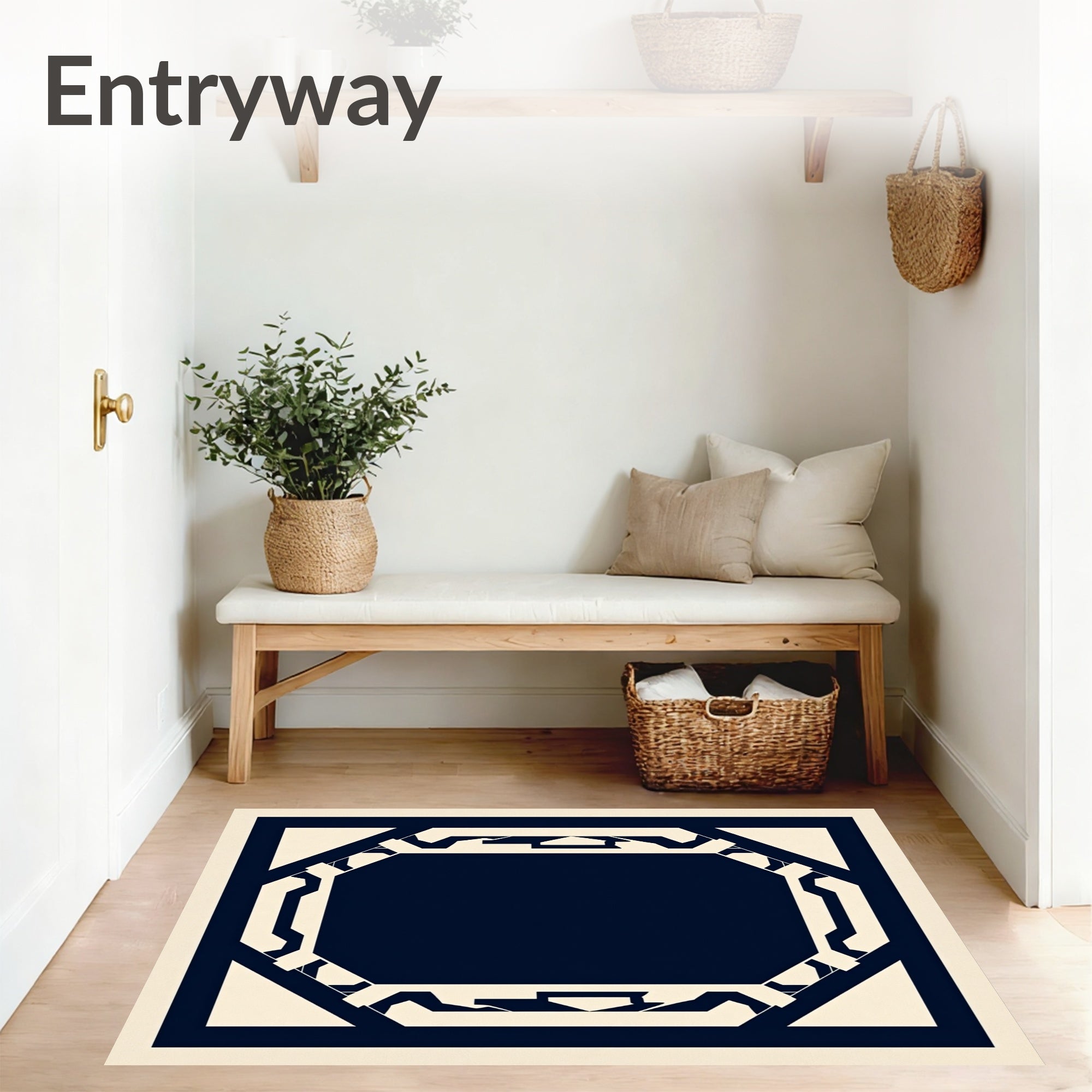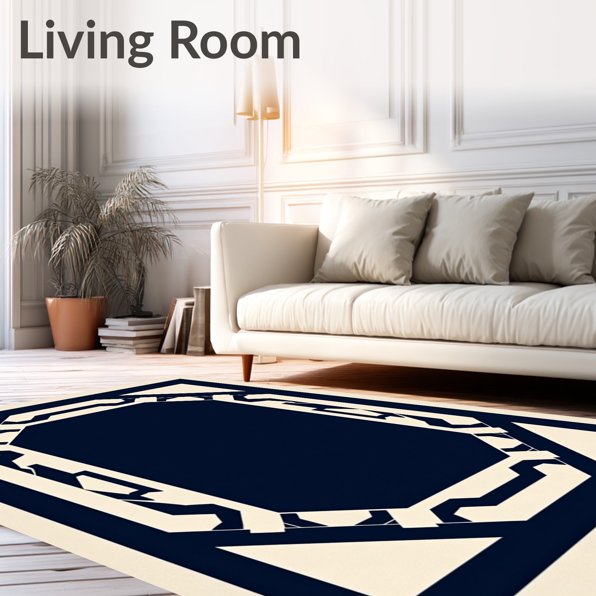 Ultra Soft Area Rug, Non Slip, Stain Resistant, Washable Area Rugs for Living Room, Bedroom, Modern Interlocking Lattice with Abstract Chevron Embellishments(Blue) Overview: