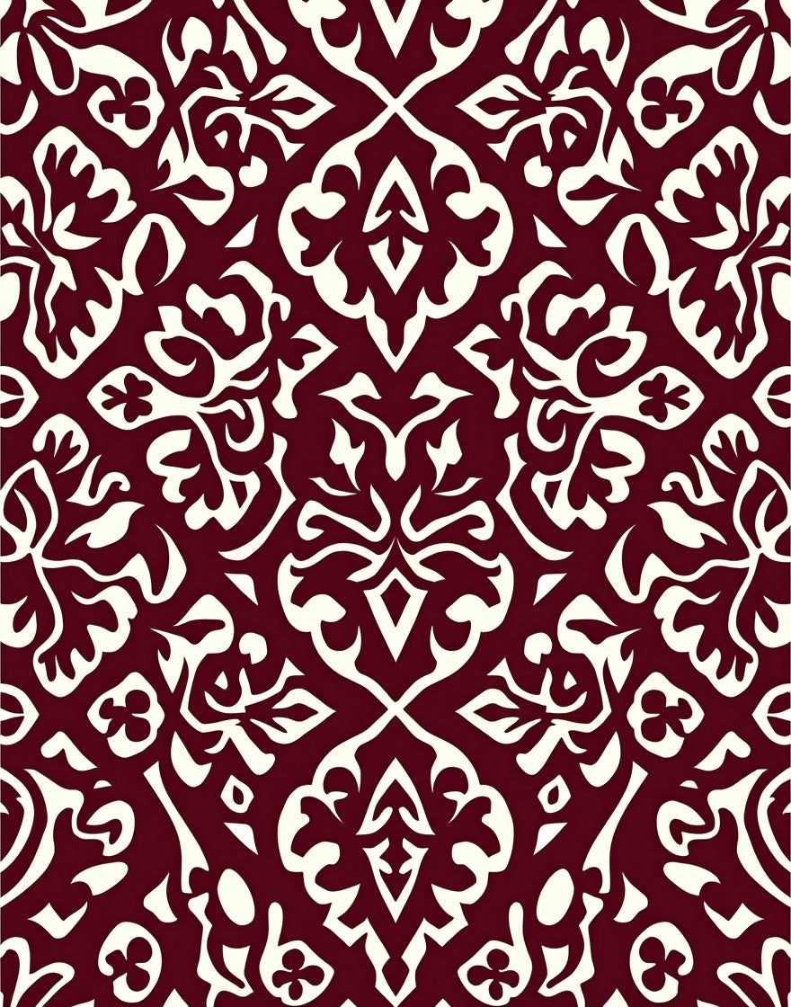 Modern Interlocking Trellis with Abstract Floral Motifs and Fine Detailing(Burgundy)
