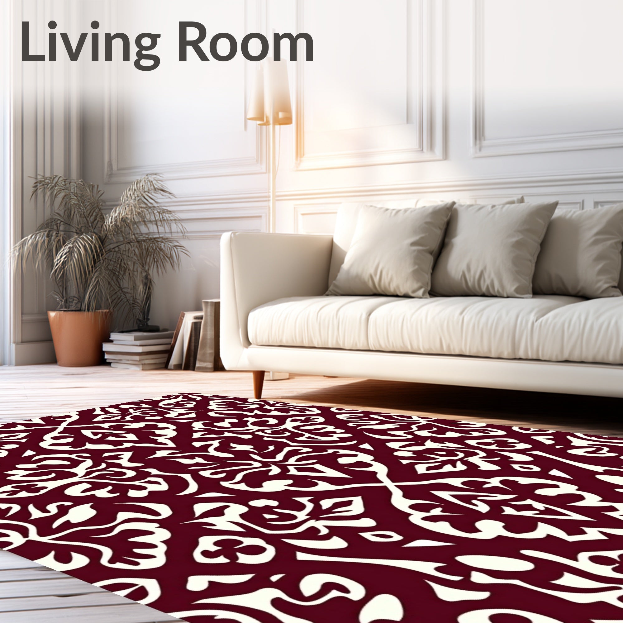 Ultra Soft Area Rug, Non Slip, Stain Resistant, Washable Area Rugs for Living Room, Bedroom, Modern Interlocking Trellis with Abstract Floral Motifs and Fine Detailing(Burgundy) Overview: