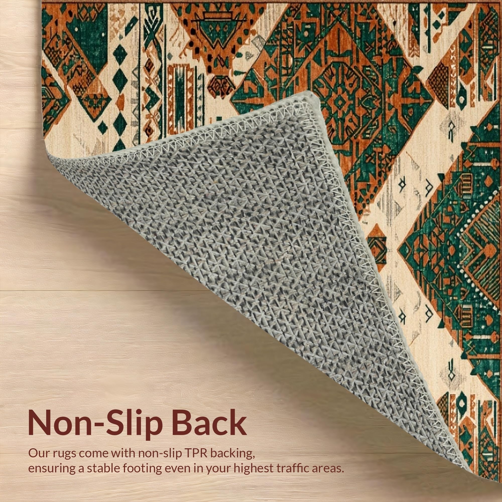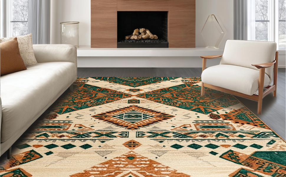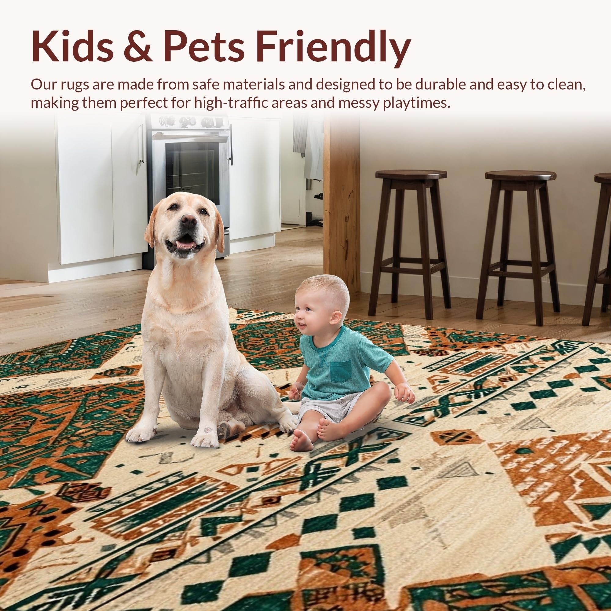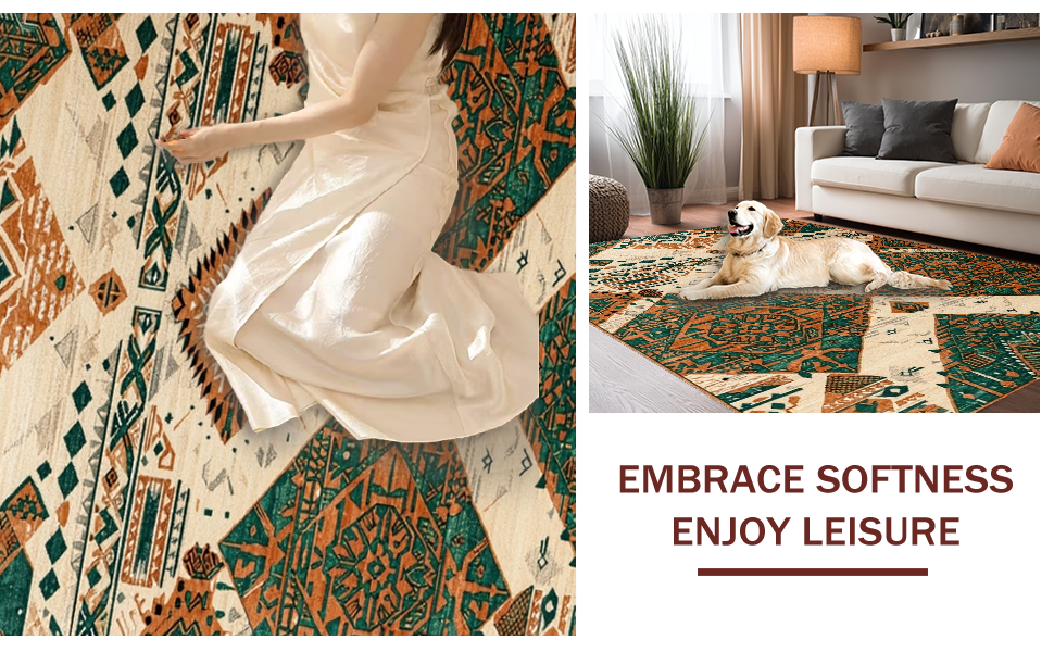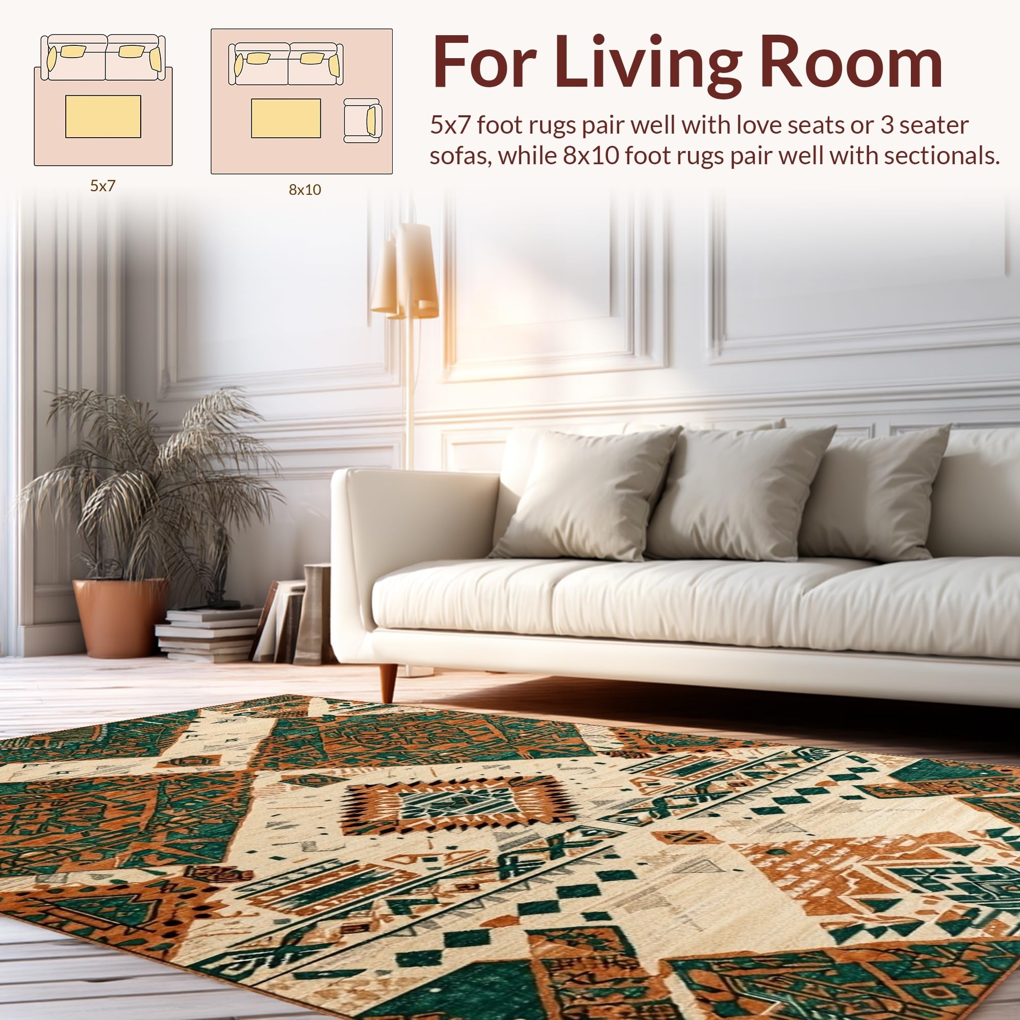 Ultra Soft Area Rug, Non Slip, Stain Resistant, Washable Area Rugs for Living Room, Bedroom, Modern Lattice Greenery Fusion(Beige) Overview: