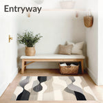 Modern Linework Area with Abstract Black and Beige Wavy Geometric(Gray)