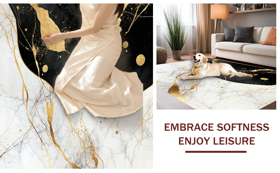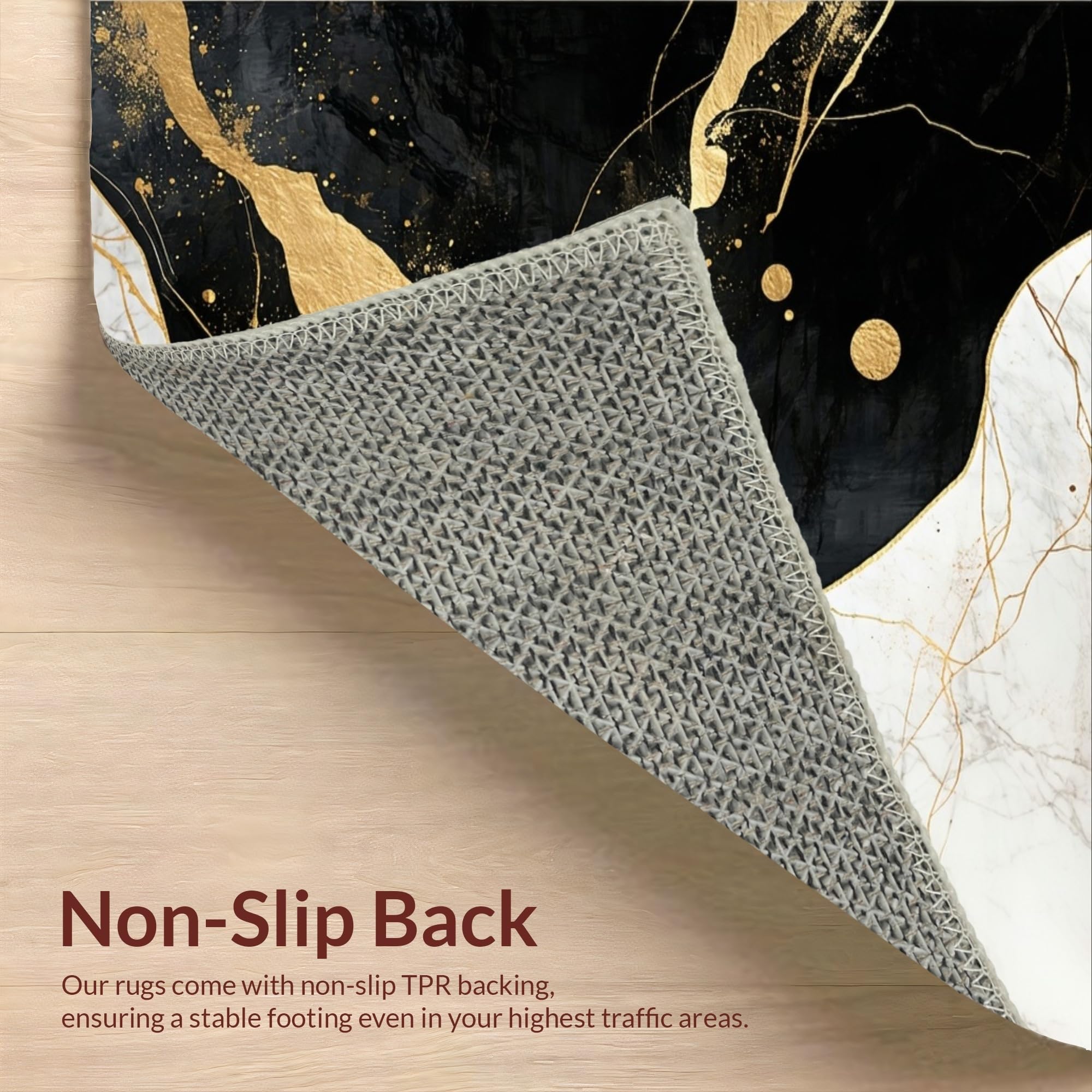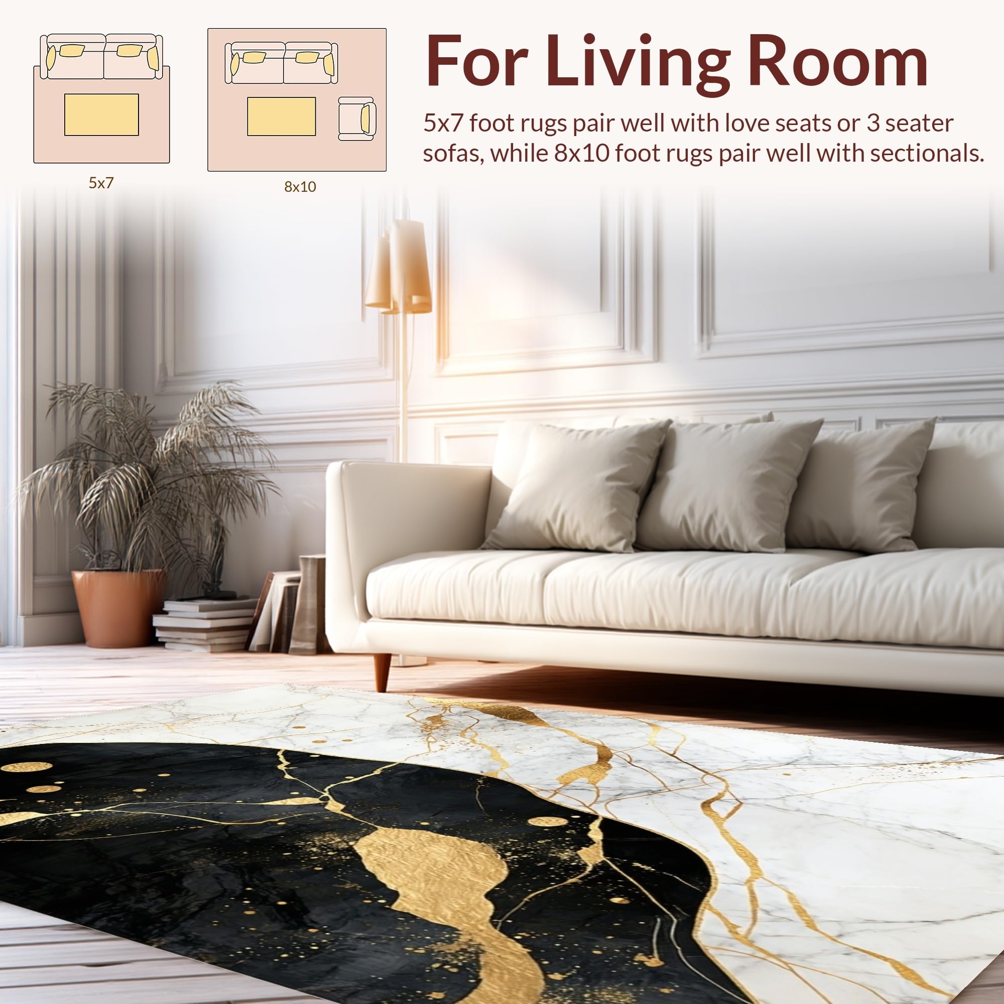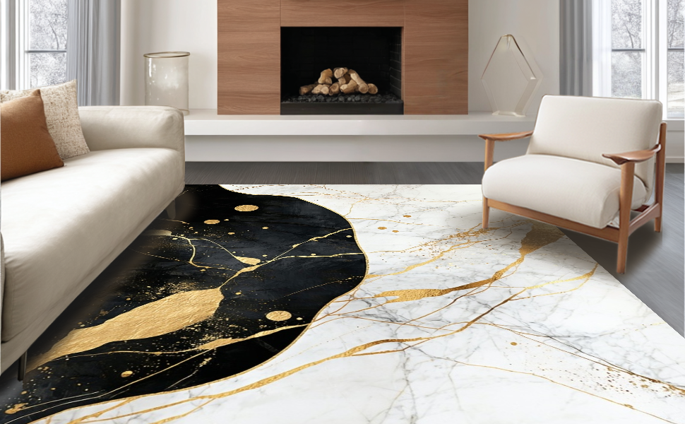 Ultra Soft Area Rug, Non Slip, Stain Resistant, Washable Area Rugs for Living Room, Bedroom, Modern Luxe Marble Artistry(Black) Overview: