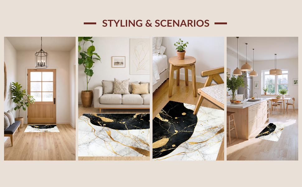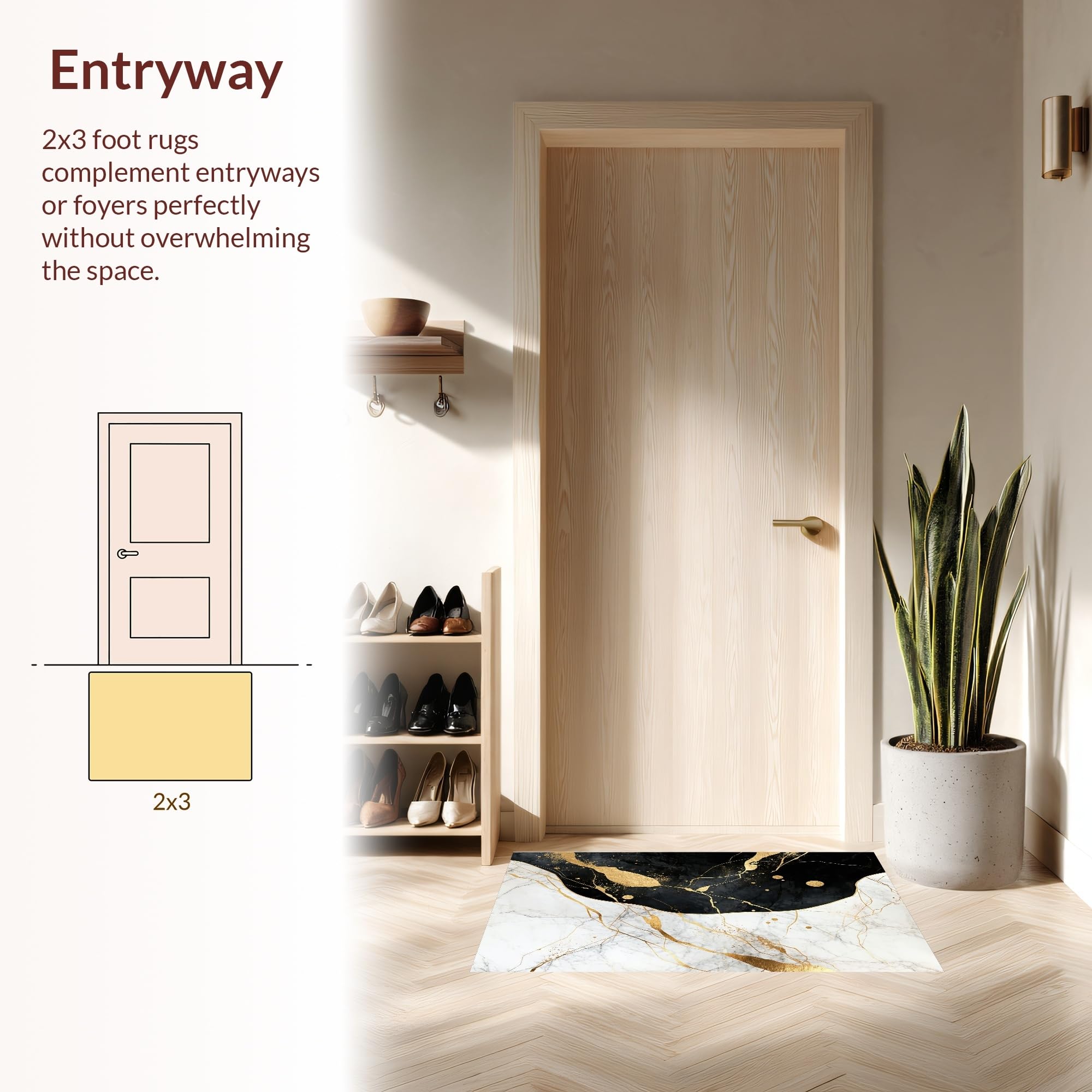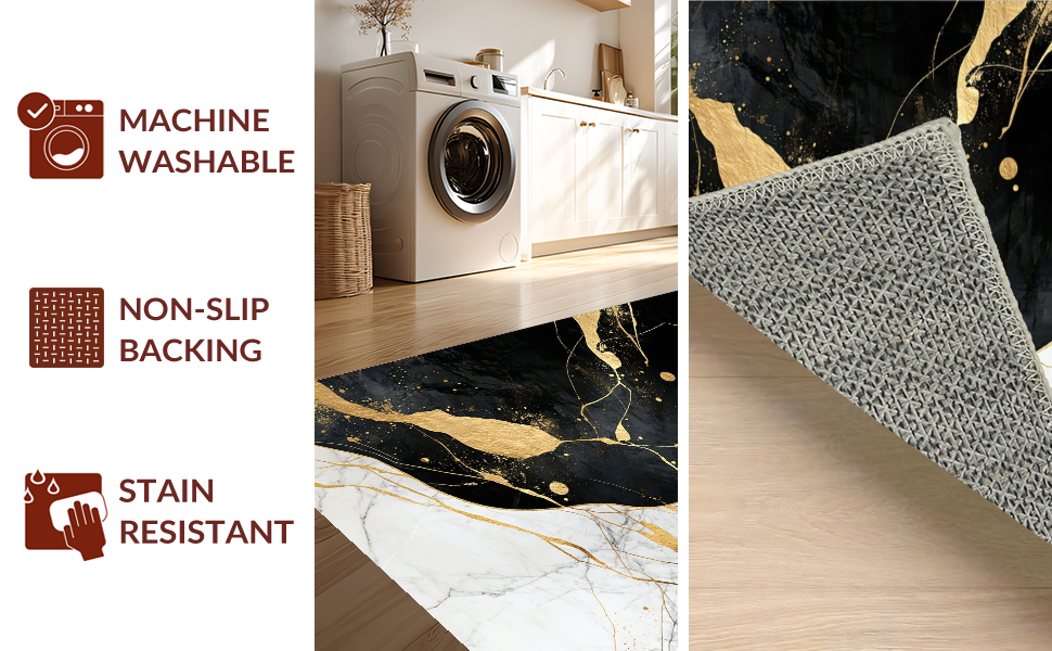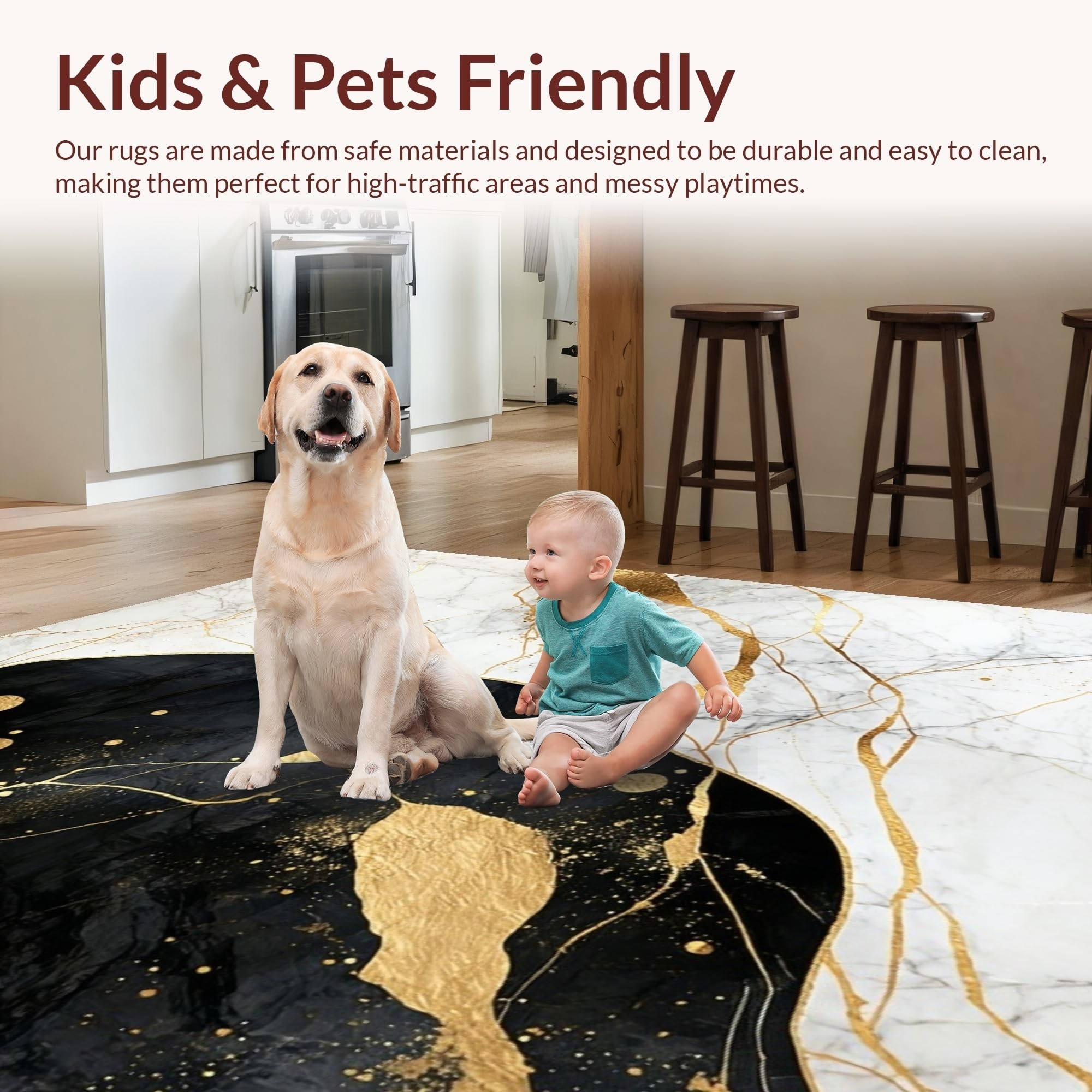 Ultra Soft Area Rug, Non Slip, Stain Resistant, Washable Area Rugs for Living Room, Bedroom, Modern Luxe Marble Artistry(Black) Overview: