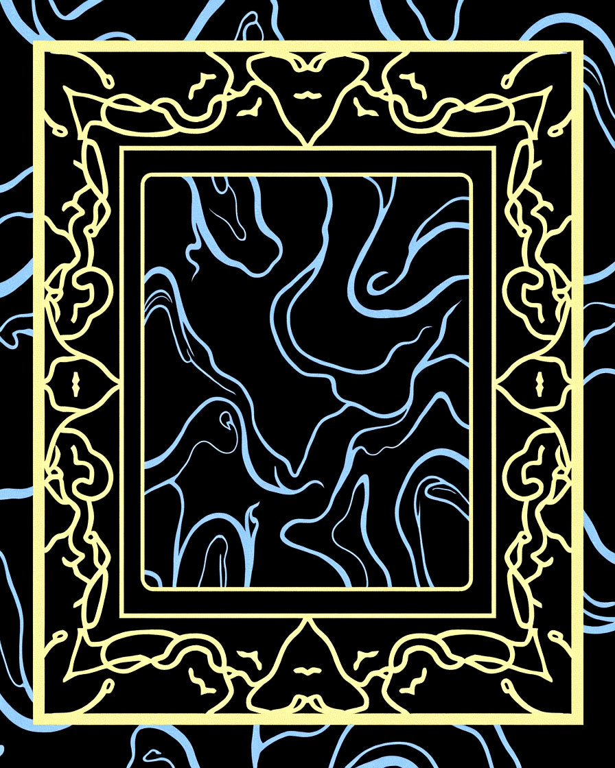 Modern Marble Cascade with Gold Ribbon Detailing(Black)