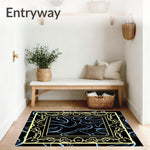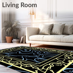 Flatwoven High Traffic Area Rug, Modern Marble Cascade with Gold Ribbon Detailing, Non Slip, Stain Resistant, Washable Area Rugs for Living Room, Bedroom (Black) Overview: