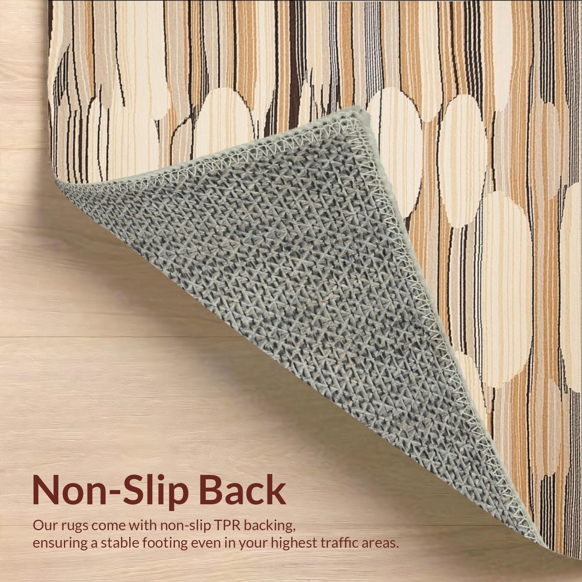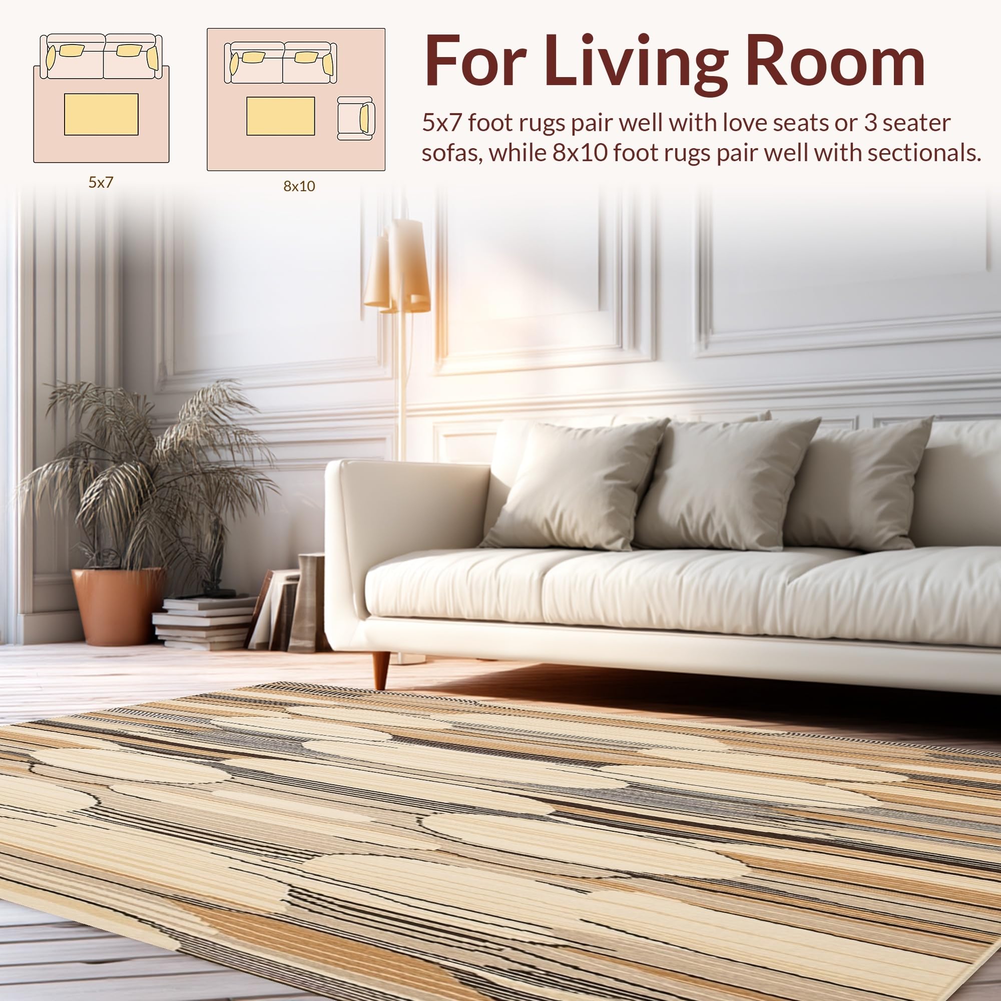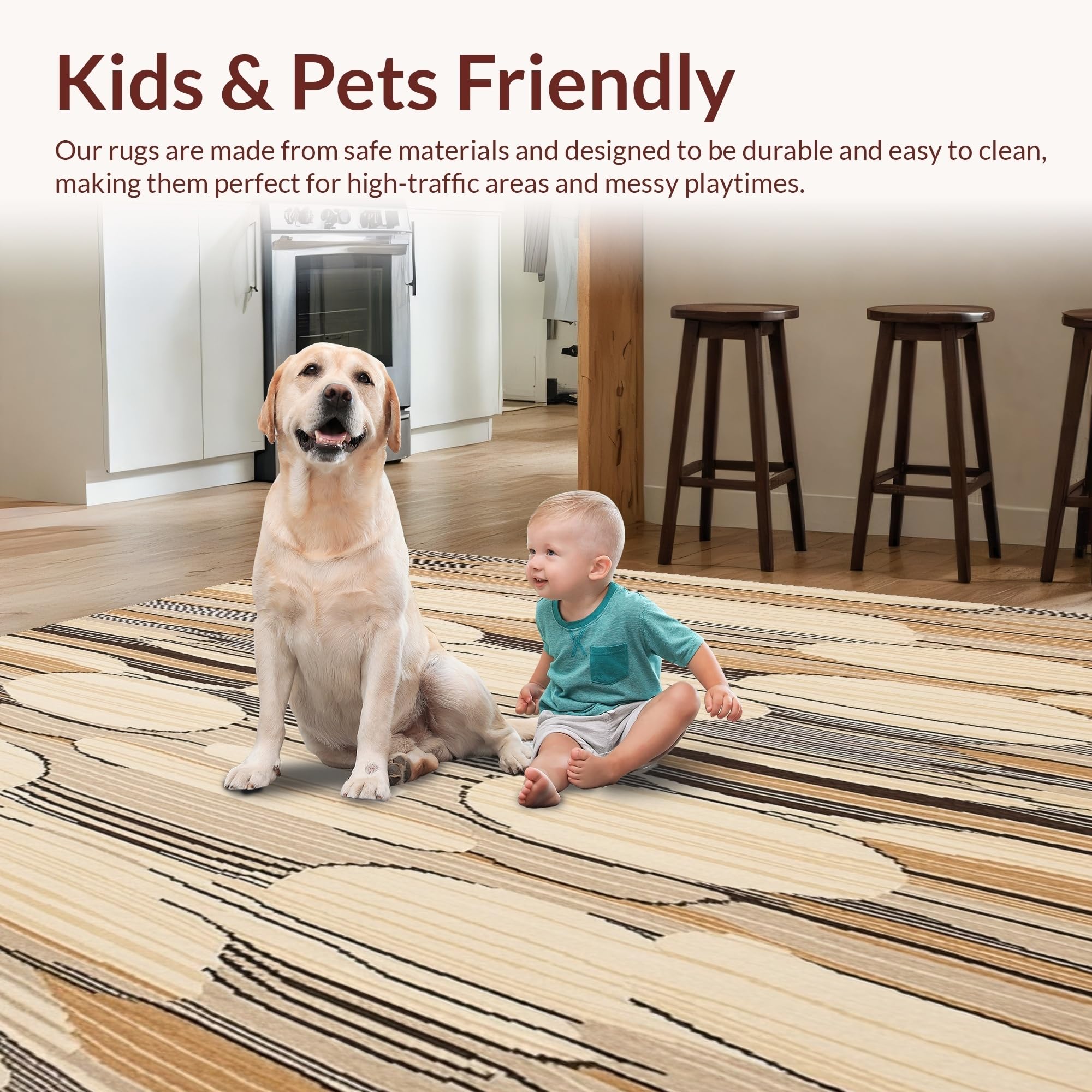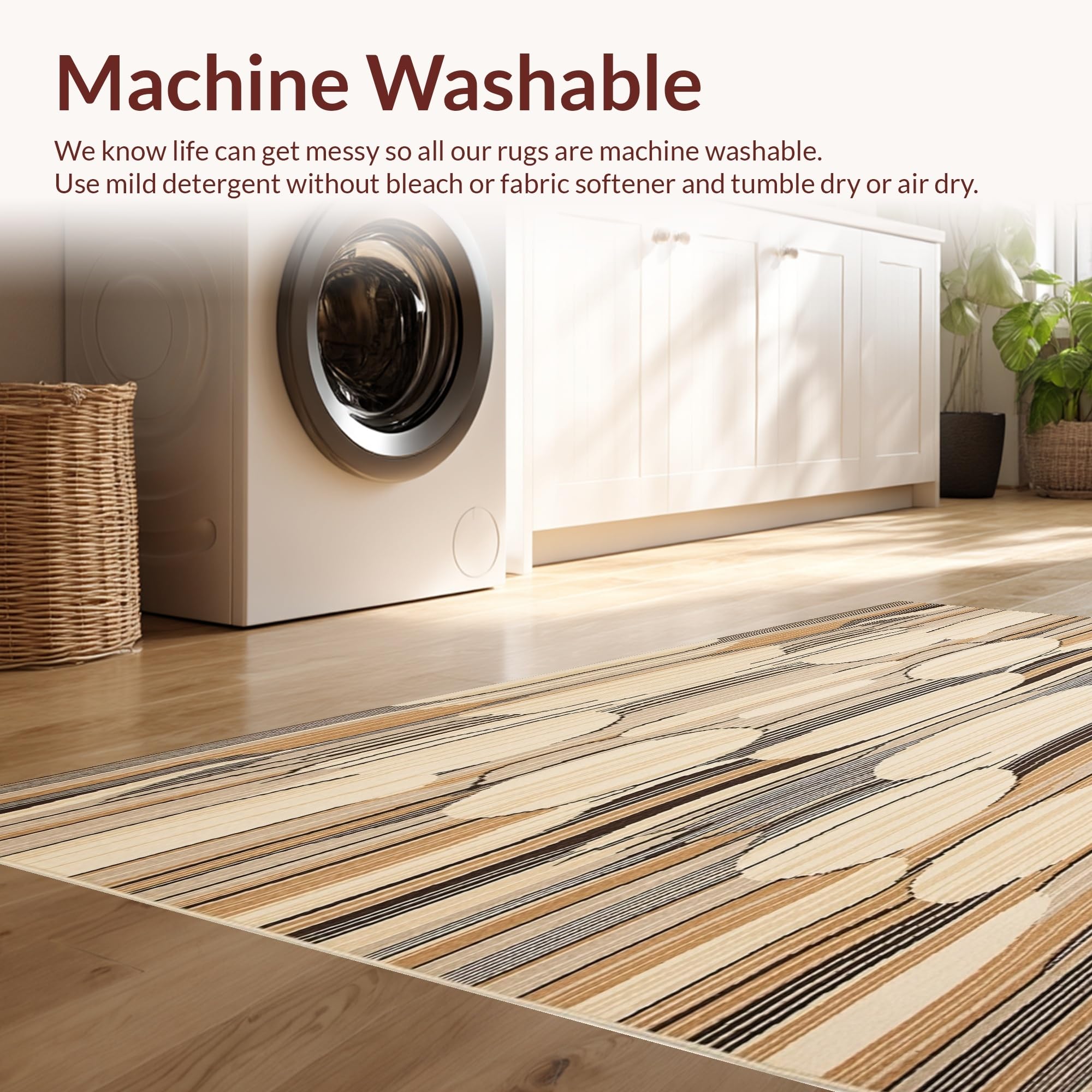 Ultra Soft Area Rug, Non Slip, Stain Resistant, Washable Area Rugs for Living Room, Bedroom, Modern Meander Decorative Runner in Earthy Beige and Brown Palette(Beige) Overview: