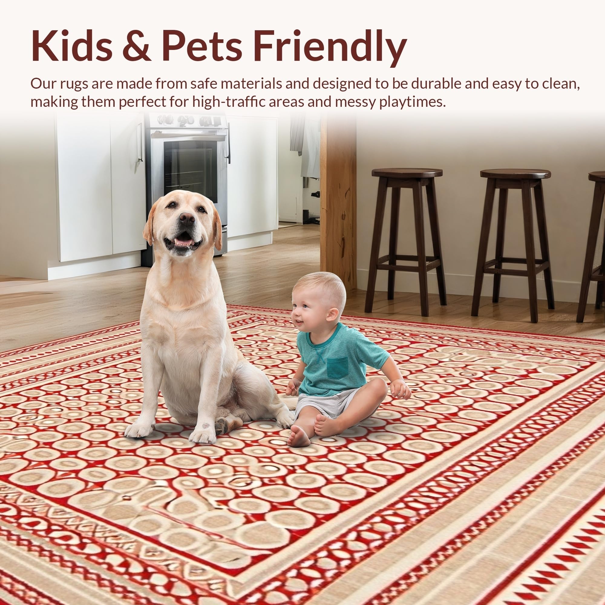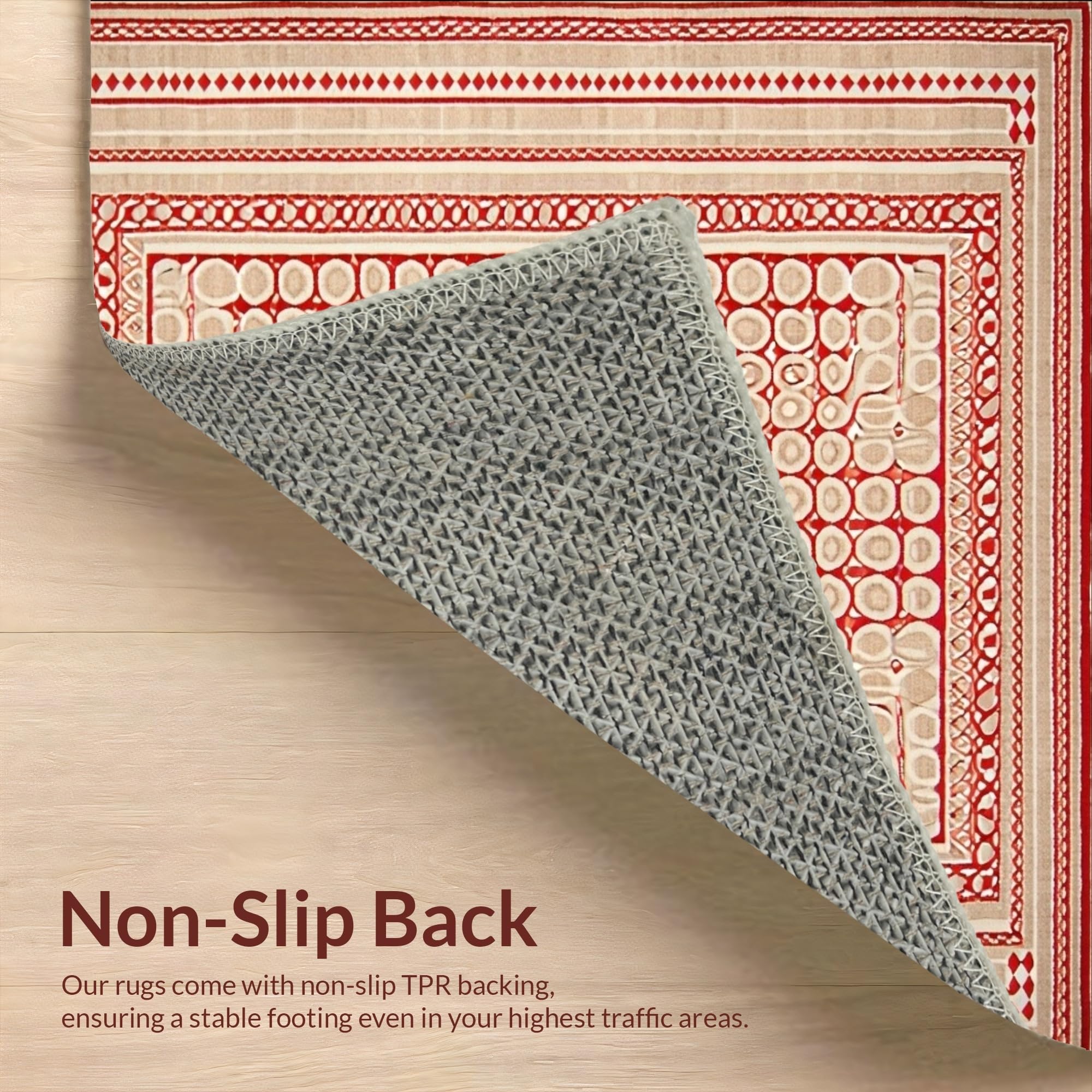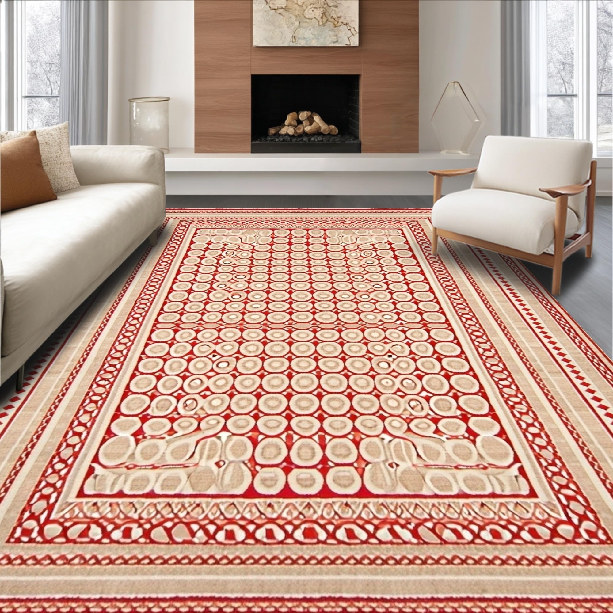 Ultra Soft Area Rug, Non Slip, Stain Resistant, Washable Area Rugs for Living Room, Bedroom, Modern Medallion Low Pile Non Slip Durable Easy Clean(Red) Overview: