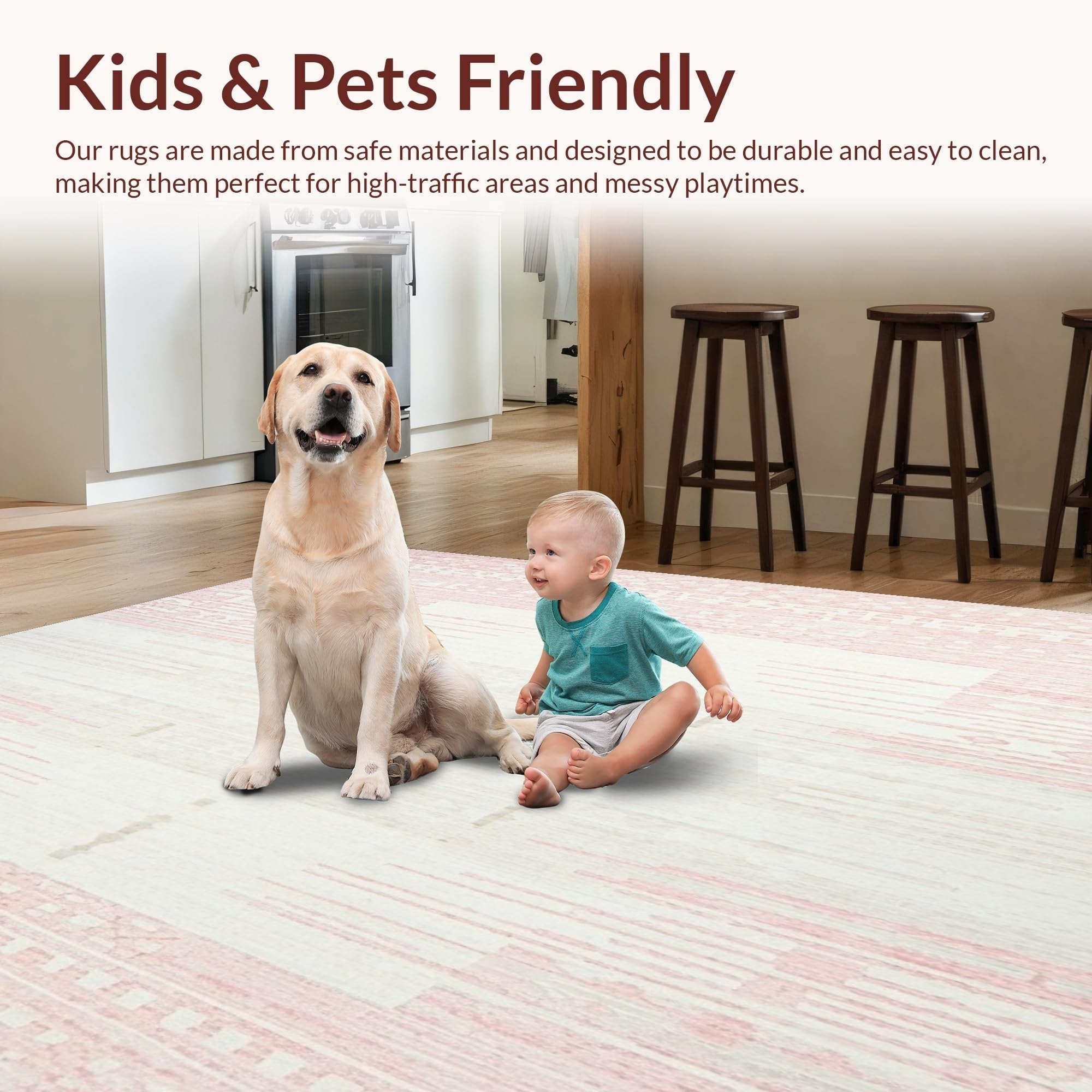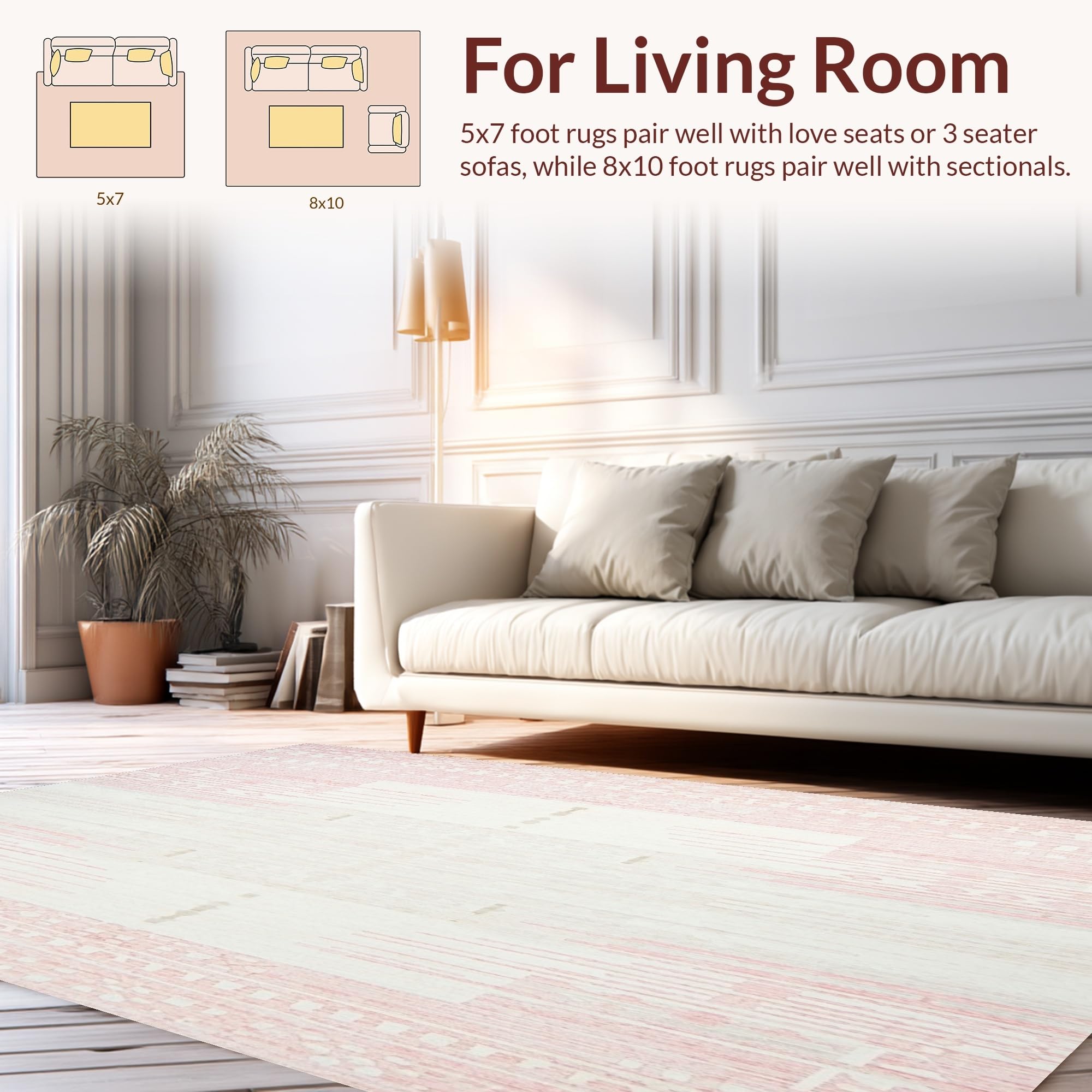 Ultra Soft Area Rug, Non Slip, Stain Resistant, Washable Area Rugs for Living Room, Bedroom, Modern Minimalist Area Rose & Cream(Pink) Overview: