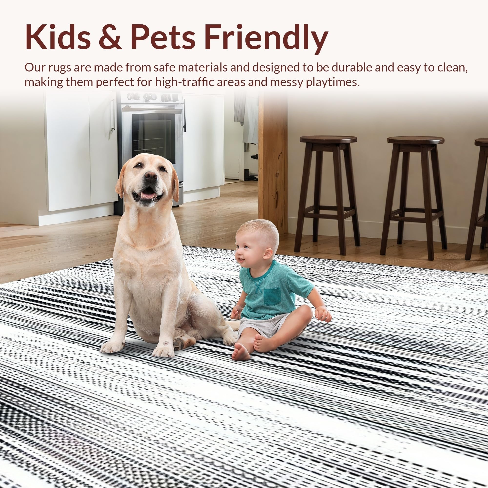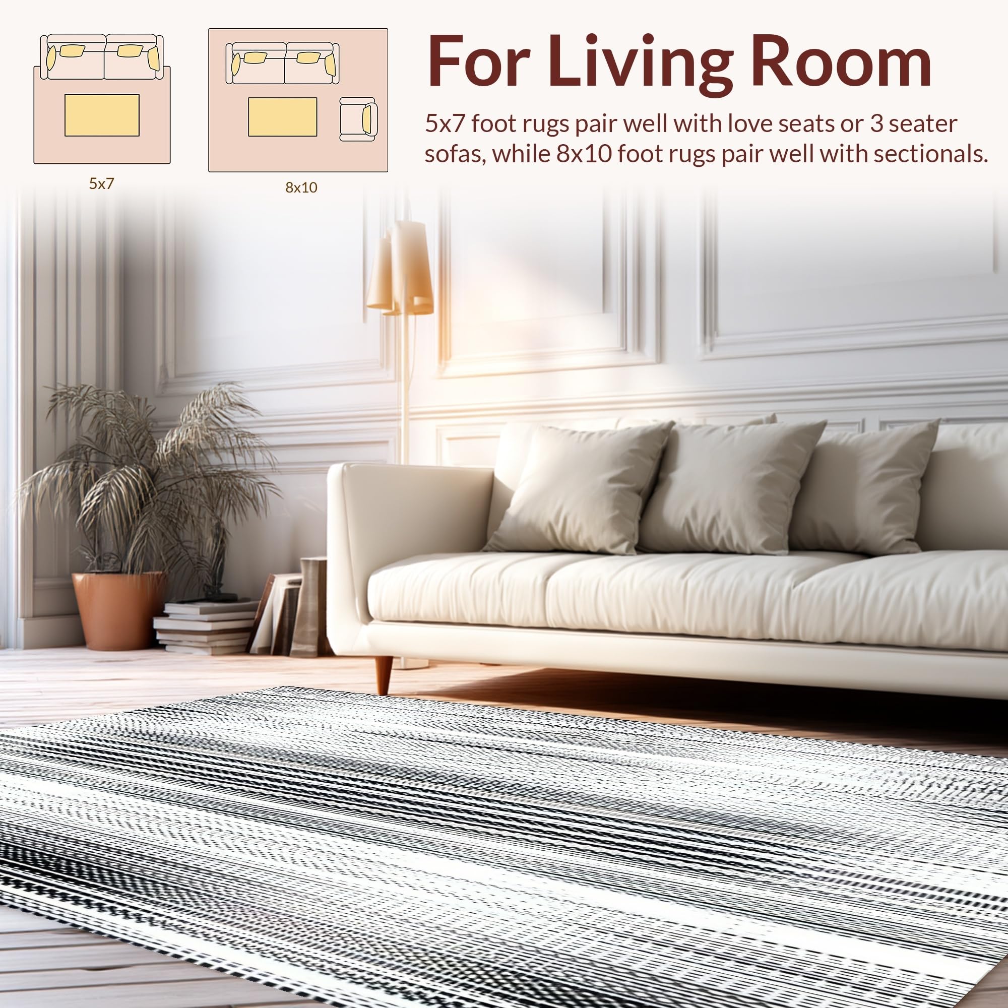 Ultra Soft Area Rug, Non Slip, Stain Resistant, Washable Area Rugs for Living Room, Bedroom, Modern Minimalist Black & White Area Abstract Geometric Design(Black) Overview: