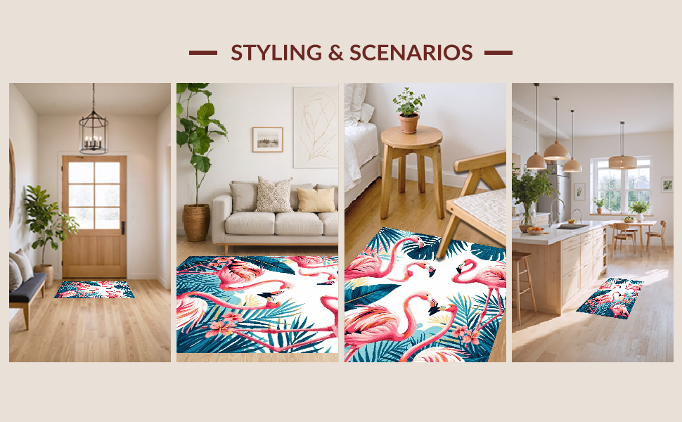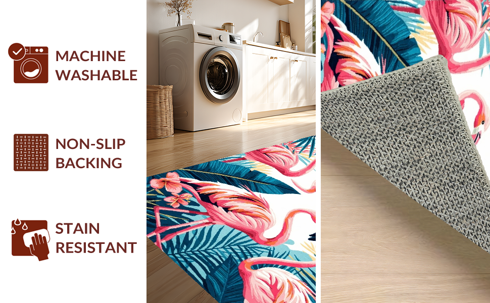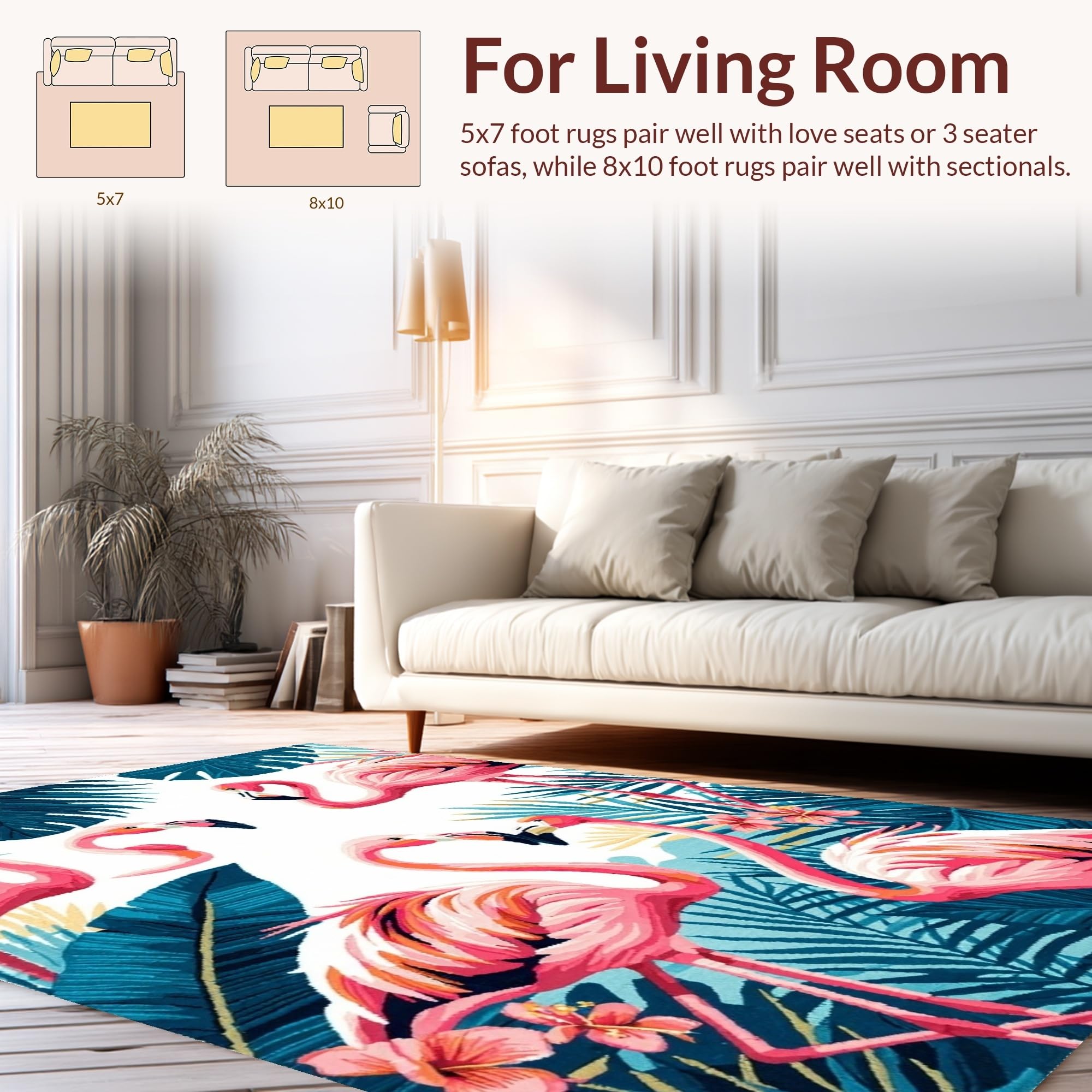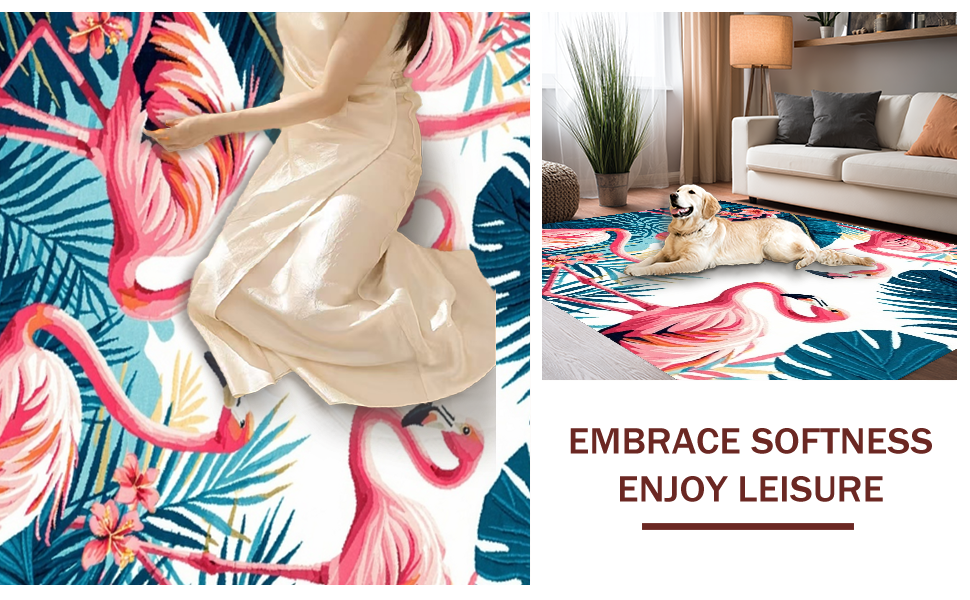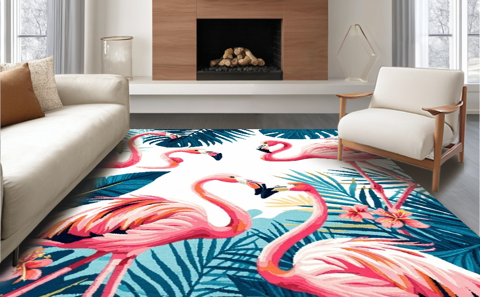 Ultra Soft Area Rug, Non Slip, Stain Resistant, Washable Area Rugs for Living Room, Bedroom, Modern Minimalist Flamingo Aesthetic(Pink) Overview: