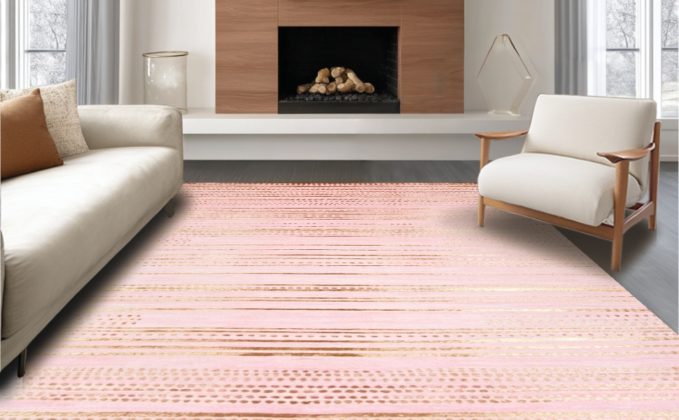 Ultra Soft Area Rug, Non Slip, Stain Resistant, Washable Area Rugs for Living Room, Bedroom, Modern Minimalist Gold Trimmed Design(Gold) Overview: