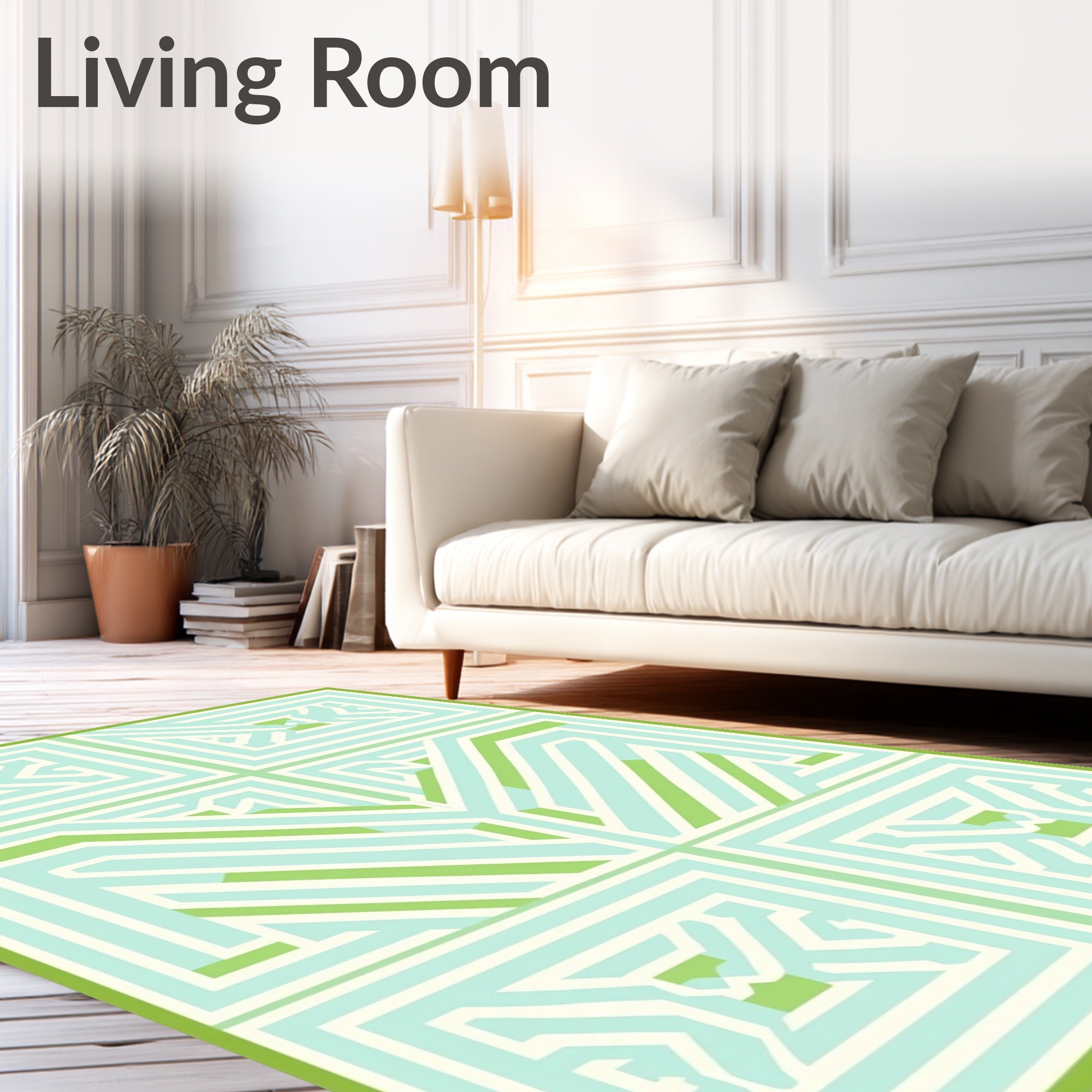 Ultra Soft Area Rug, Non Slip, Stain Resistant, Washable Area Rugs for Living Room, Bedroom, Modern Minimalist Maze with Subtle Chevron Interlocking Lines(Green) Overview: