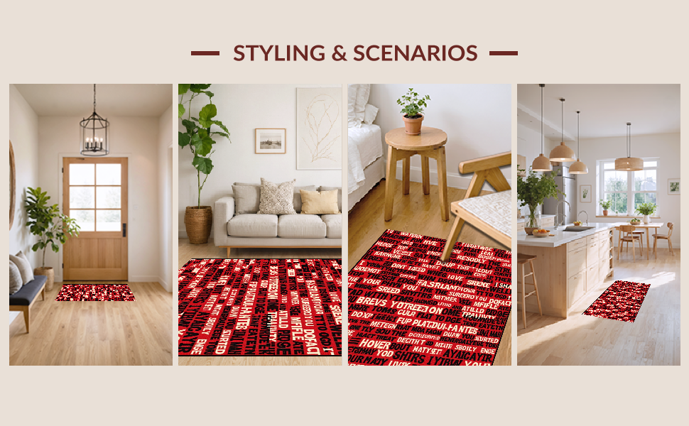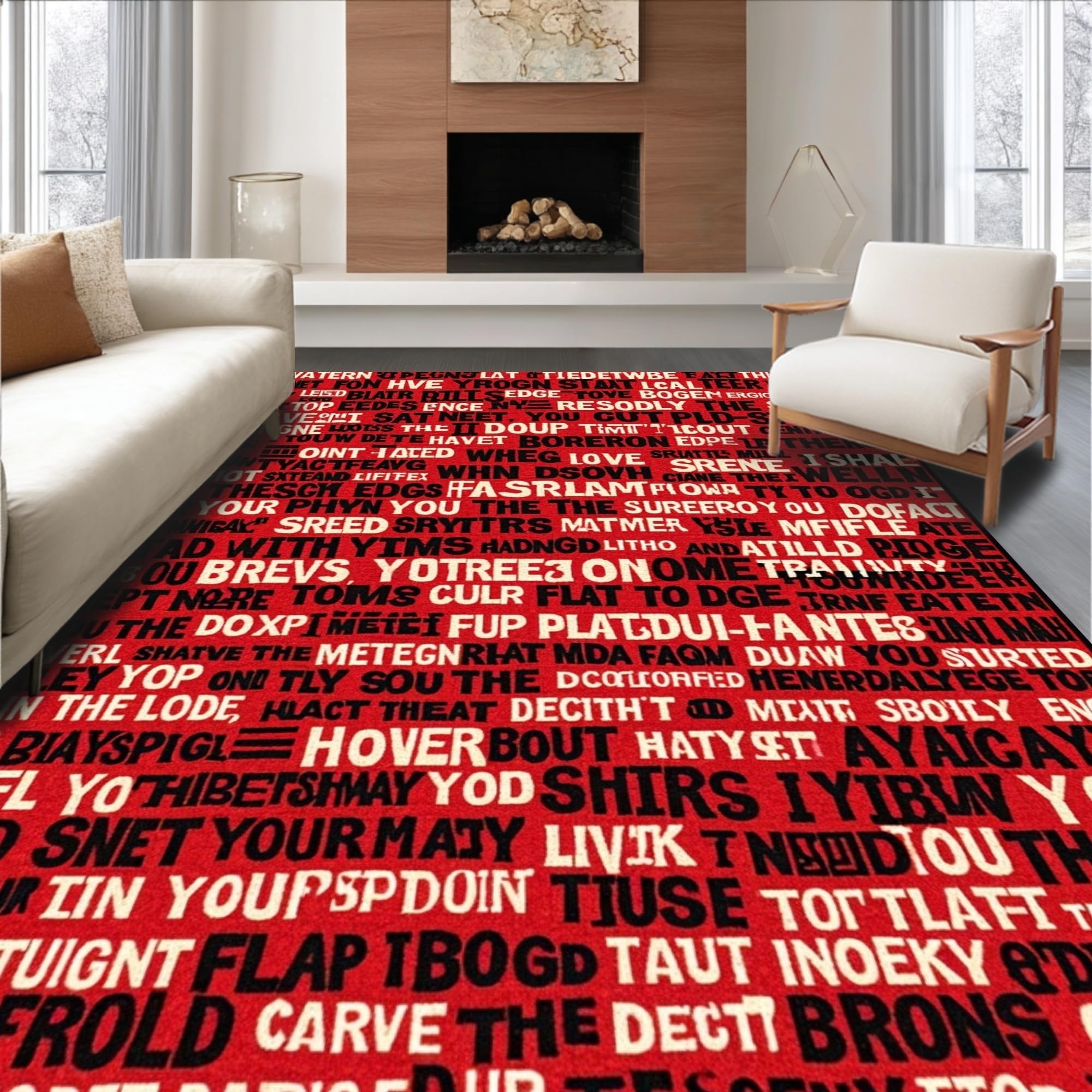 Ultra Soft Area Rug, Non Slip, Stain Resistant, Washable Area Rugs for Living Room, Bedroom, Modern Minimalist Text-Based Decor(Black) Overview: