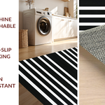 Ultra Soft Area Rug, Non Slip, Stain Resistant, Washable Area Rugs for Living Room, Bedroom, Modern Monochrome Linear Rug Washable Reversible Contemporary Decor(Black) Overview:
