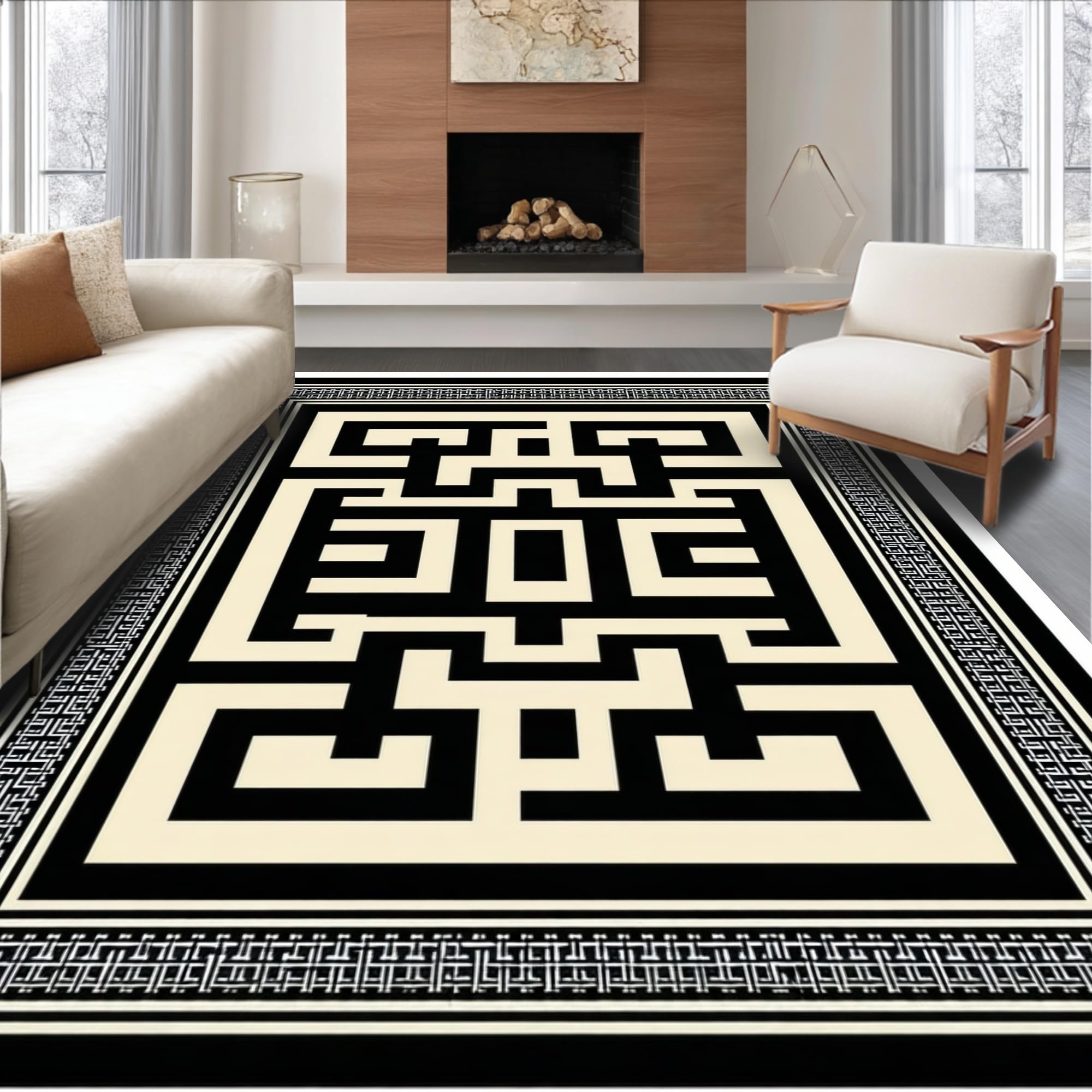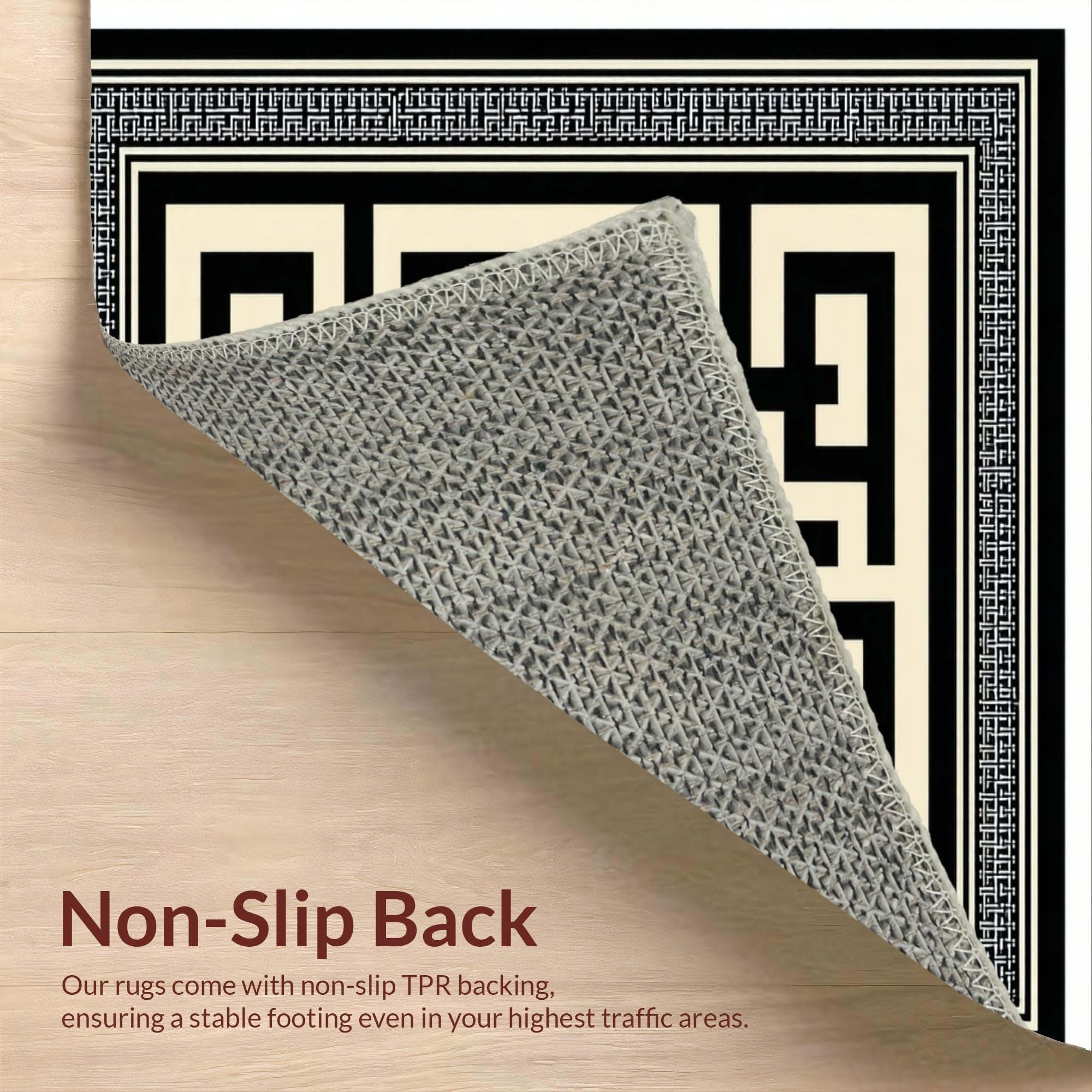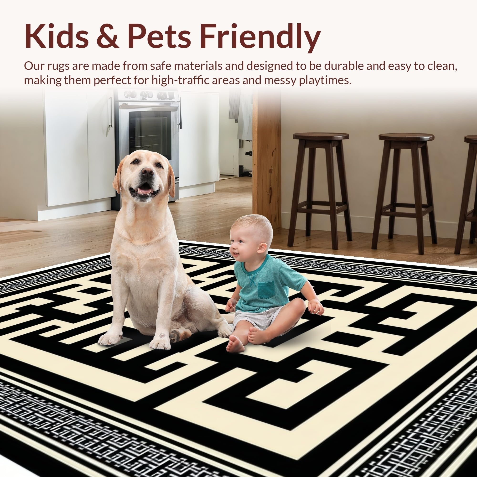 Ultra Soft Area Rug, Non Slip, Stain Resistant, Washable Area Rugs for Living Room, Bedroom, Modern Neutral Home Office Low Pile Rug(Black) Overview: