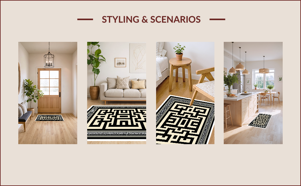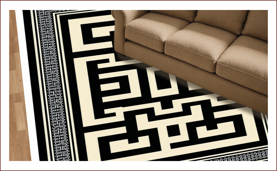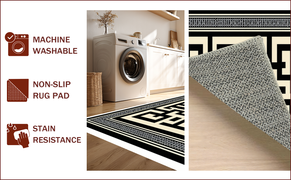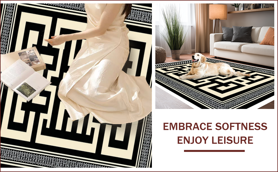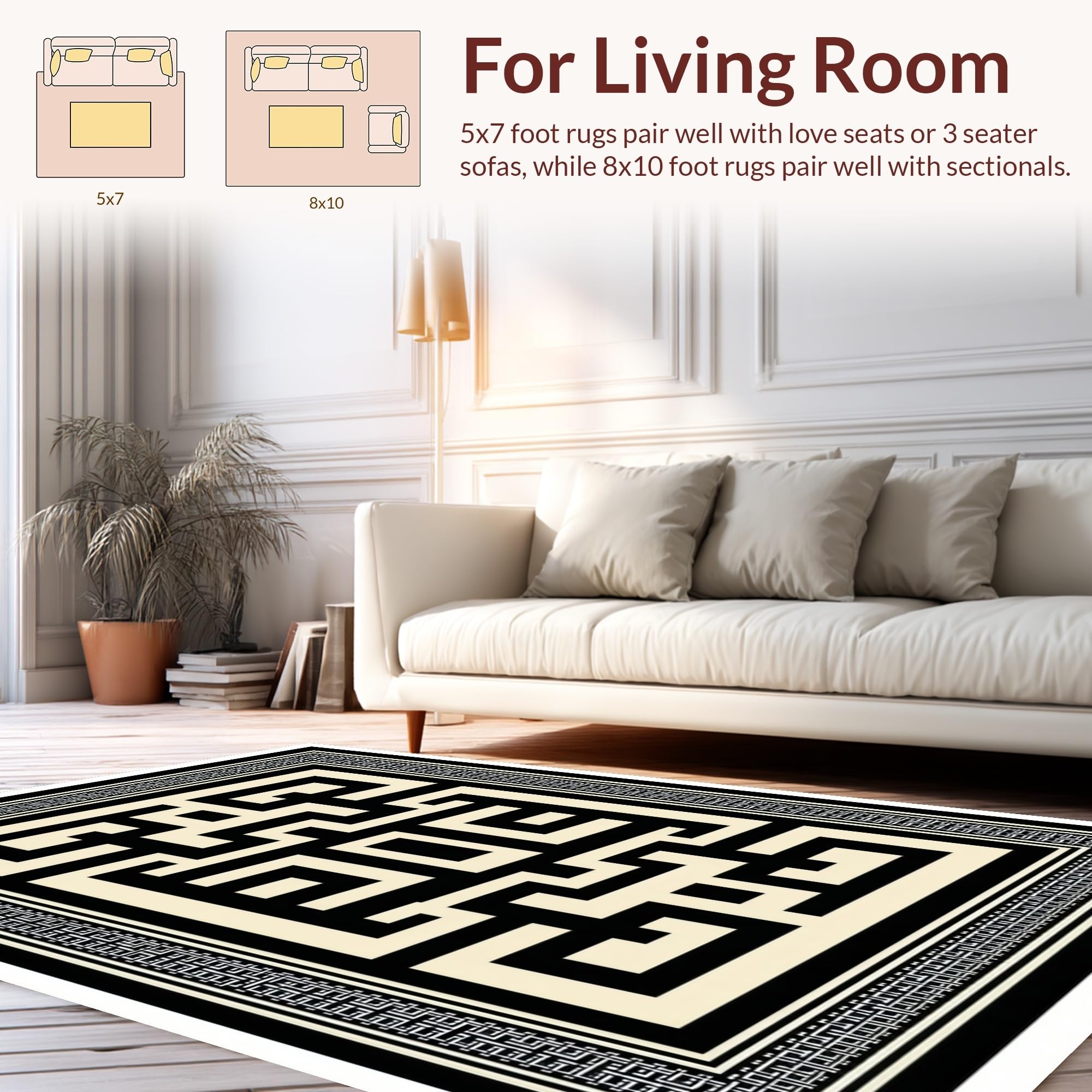 Ultra Soft Area Rug, Non Slip, Stain Resistant, Washable Area Rugs for Living Room, Bedroom, Modern Neutral Home Office Low Pile Rug(Black) Overview: