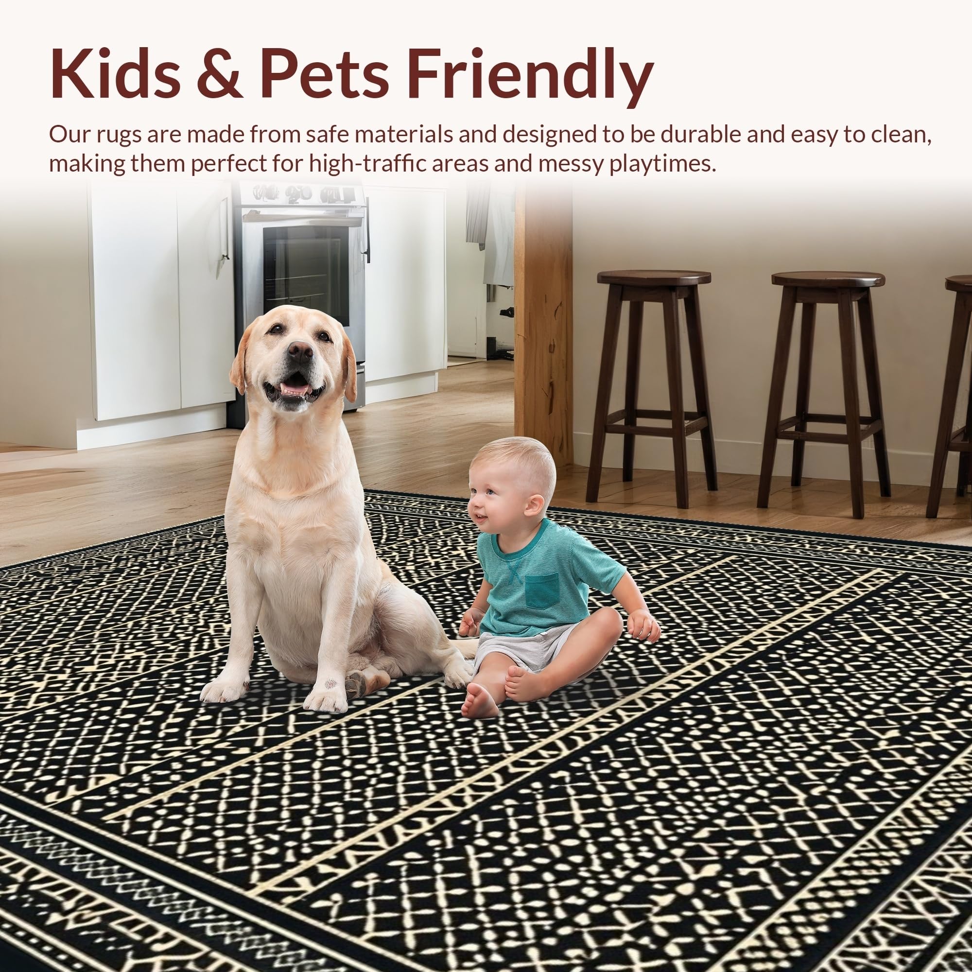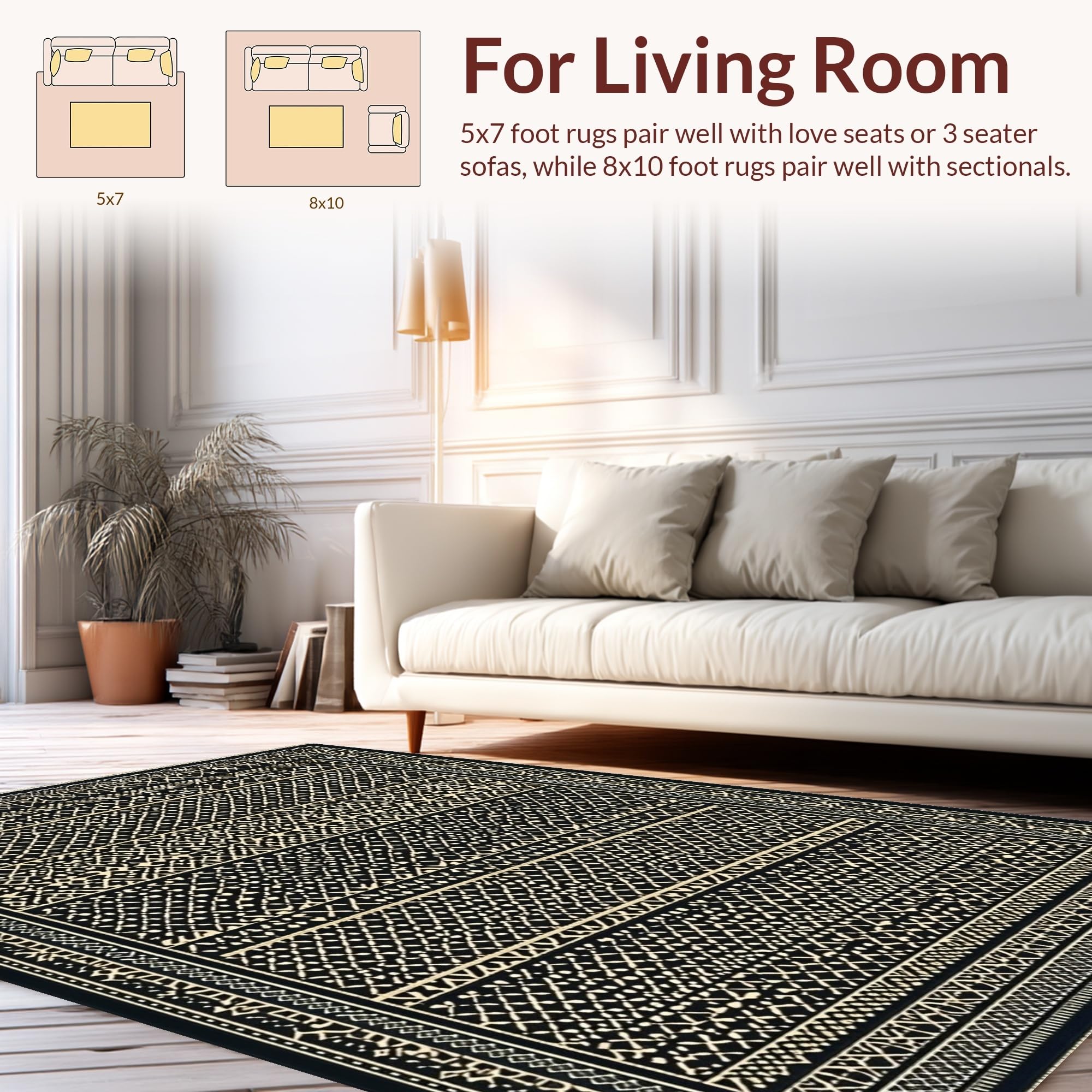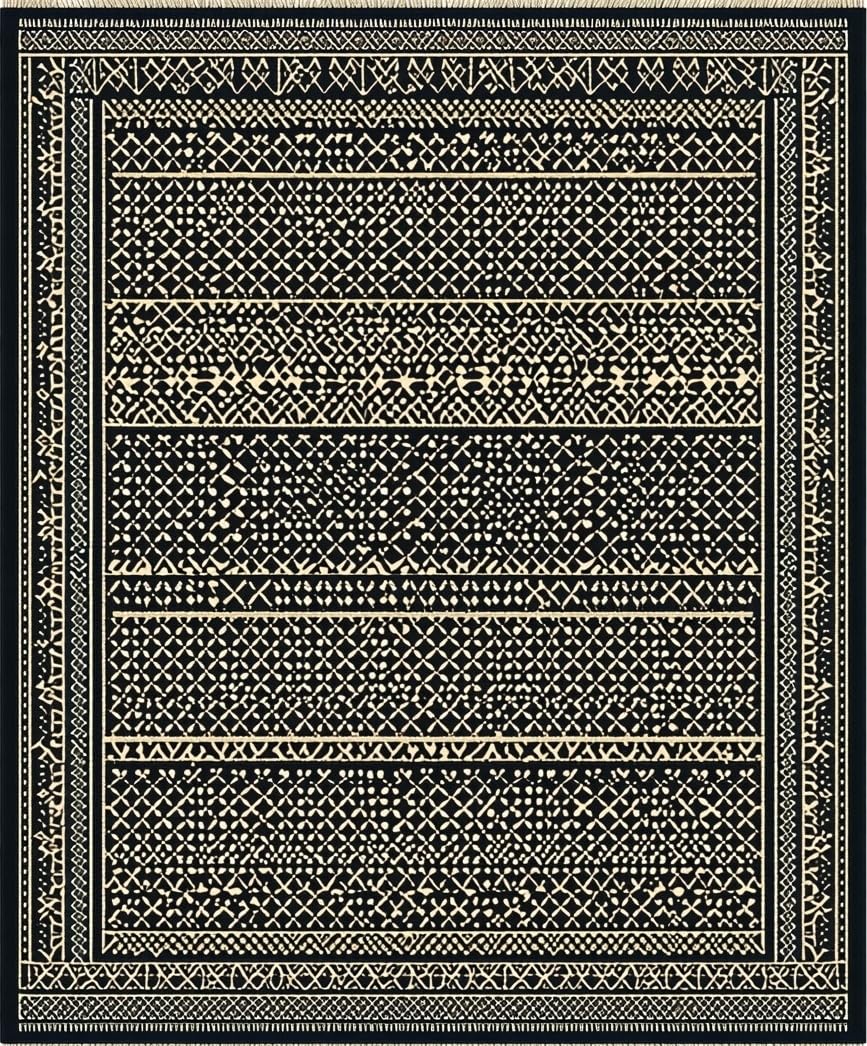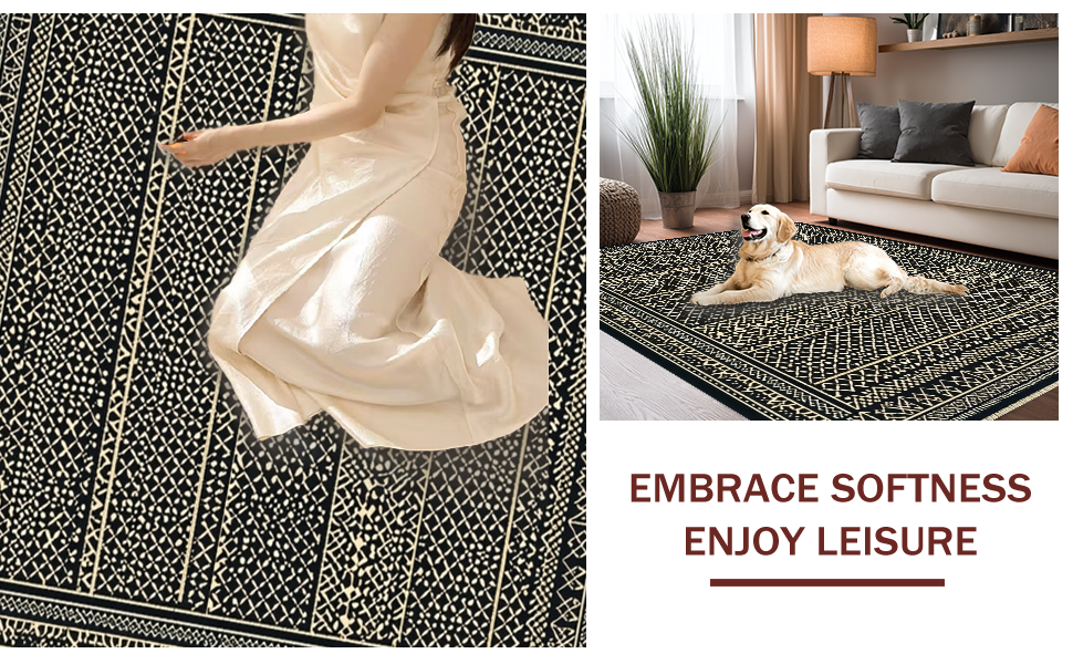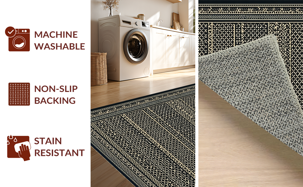 Ultra Soft Area Rug, Non Slip, Stain Resistant, Washable Area Rugs for Living Room, Bedroom, Modern Neutral Tiled Arrangement(Black) Overview: