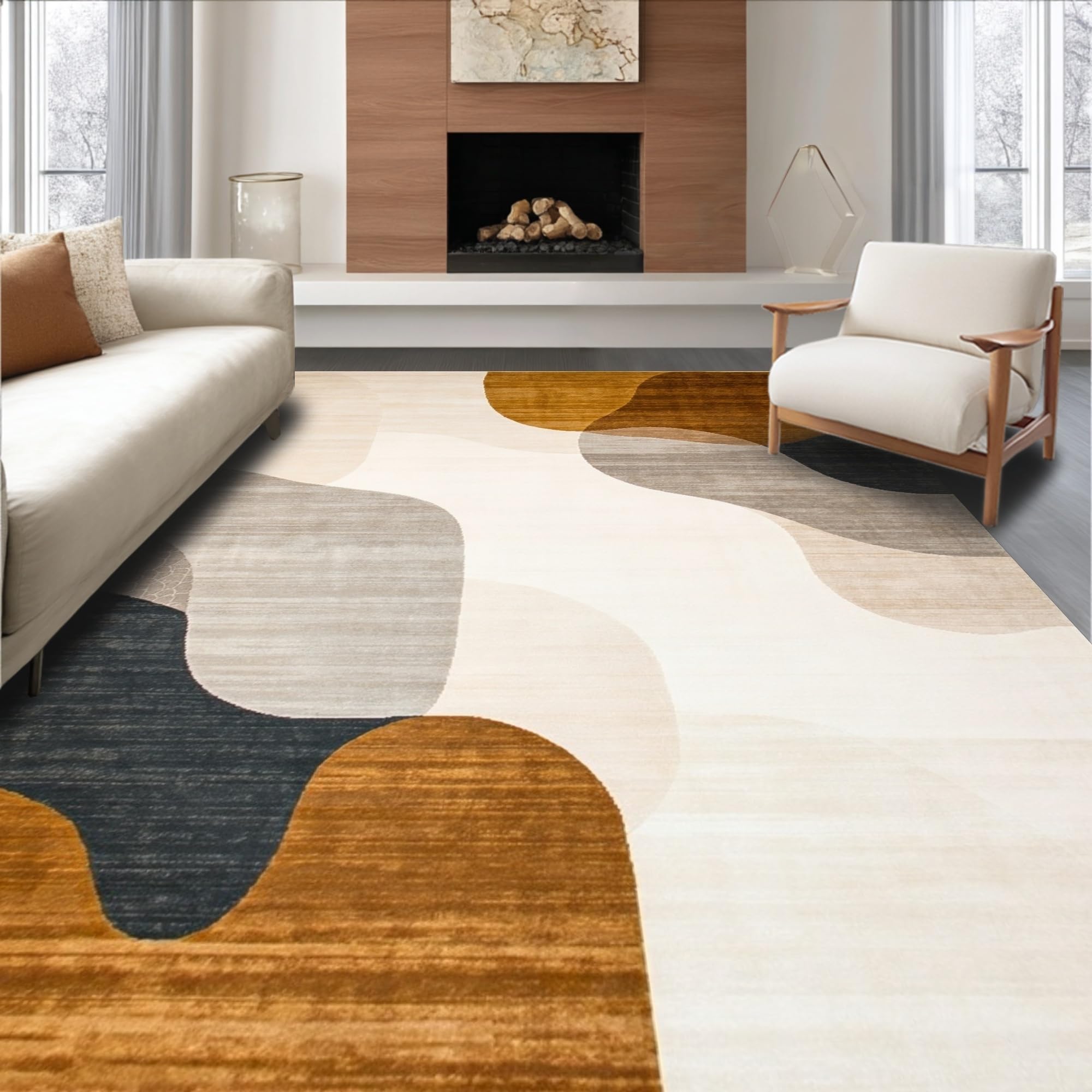 Ultra Soft Area Rug, Non Slip, Stain Resistant, Washable Area Rugs for Living Room, Bedroom, Modern Non Slip Carpet with Curved Lines and Earthy Neutral Palette(Beige) Overview: