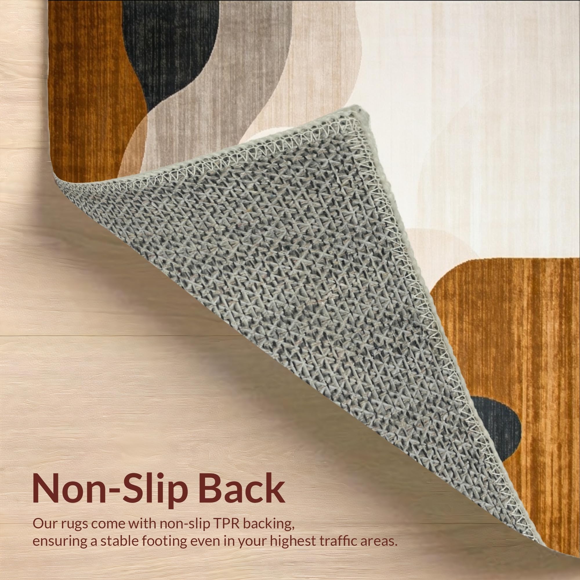 Modern Non Slip with Curved Lines and Earthy Neutral Palette(Beige)