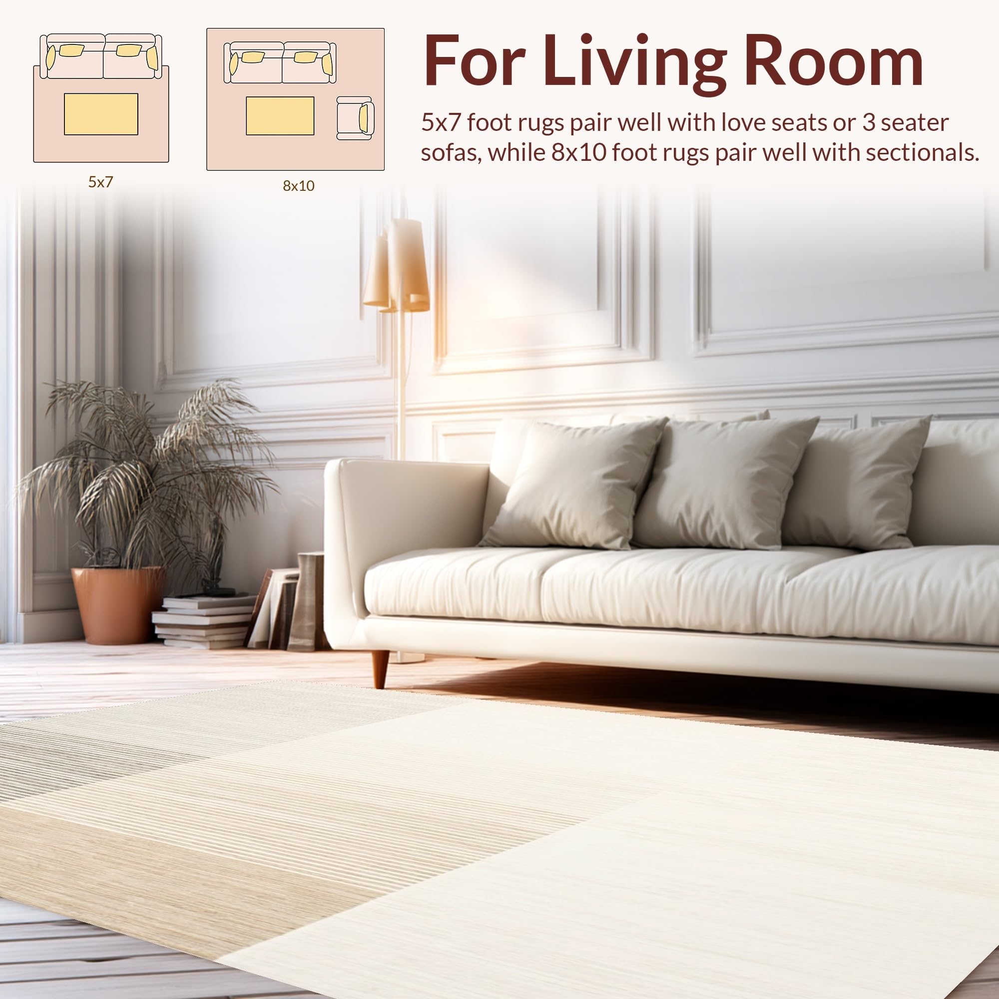 Ultra Soft Area Rug, Non Slip, Stain Resistant, Washable Area Rugs for Living Room, Bedroom, Modern Ombre for Living Spaces Gradient Beige Decor(Beige) Overview:
