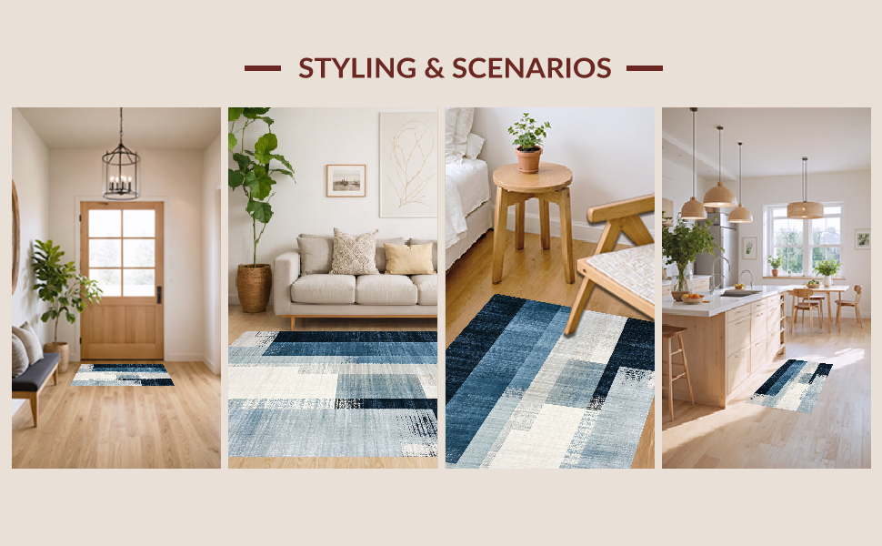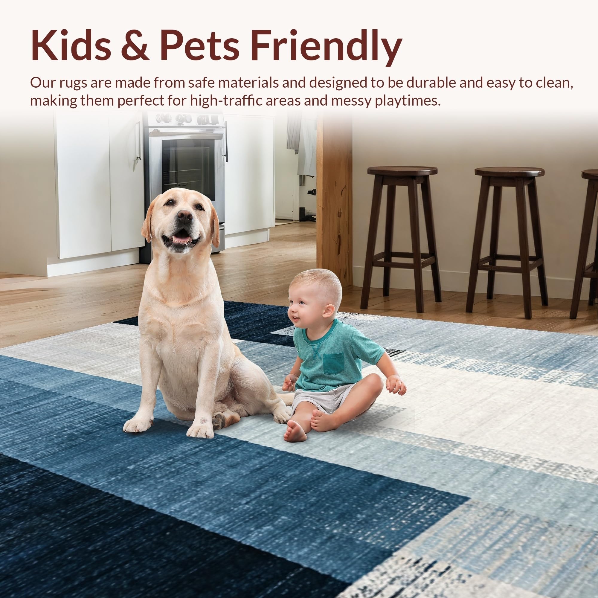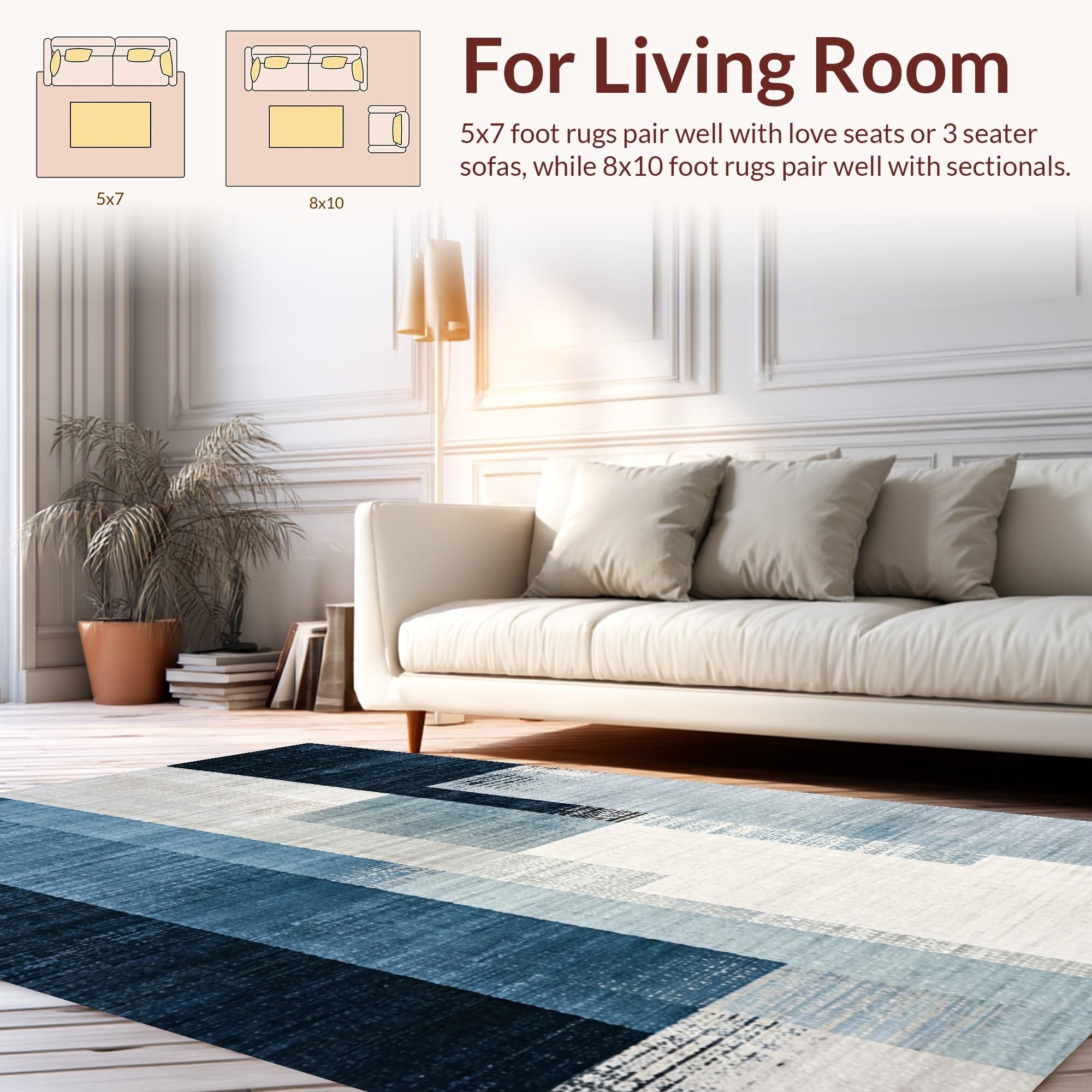 Ultra Soft Area Rug, Non Slip, Stain Resistant, Washable Area Rugs for Living Room, Bedroom, Modern Ombre Stripe Patterned Carpet(Blue) Overview: