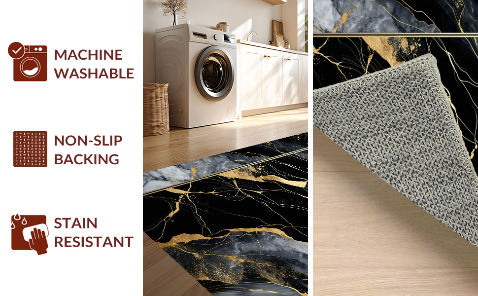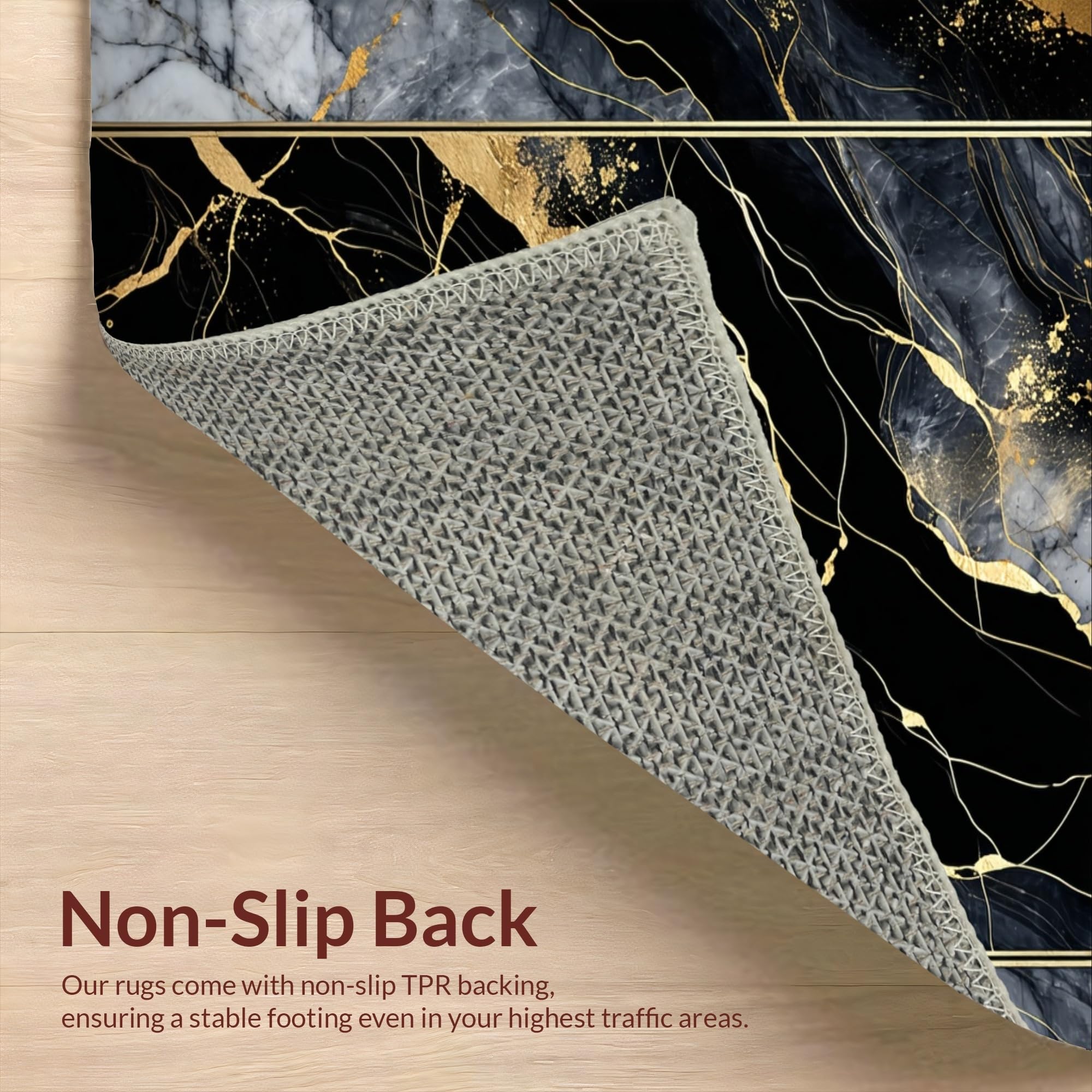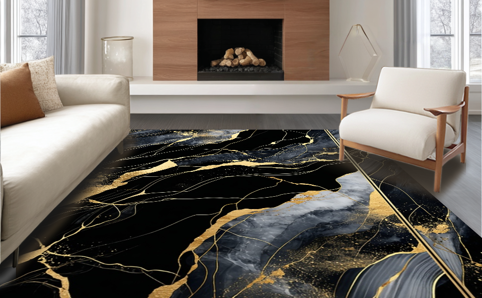 Ultra Soft Area Rug, Non Slip, Stain Resistant, Washable Area Rugs for Living Room, Bedroom, Modern Opulent Artistic Design(Black) Overview:
