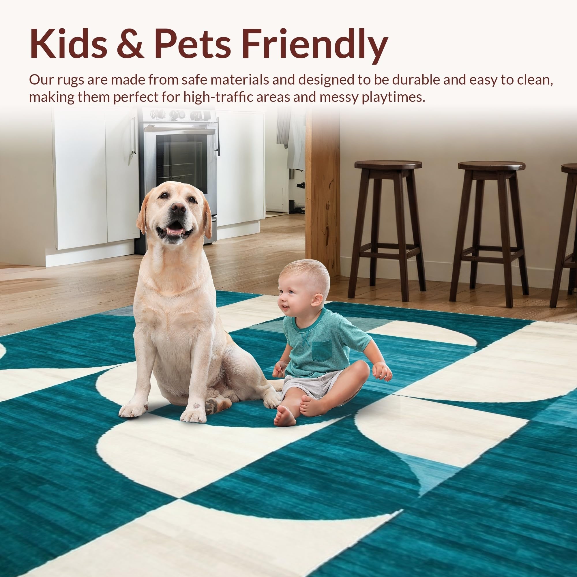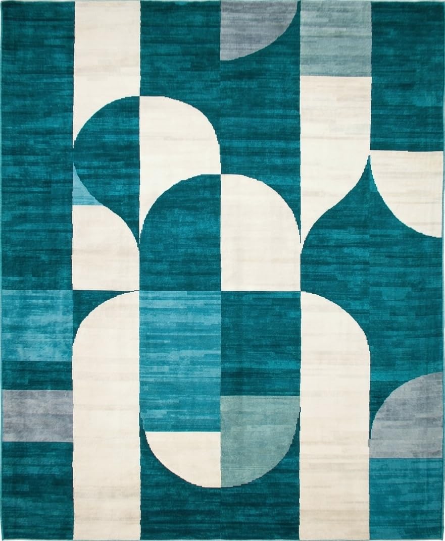 Ultra Soft Area Rug, Non Slip, Stain Resistant, Washable Area Rugs for Living Room, Bedroom, Modern Oval Geometric Delight(Teal) Overview: