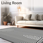Ultra Soft Area Rug, Non Slip, Stain Resistant, Washable Area Rugs for Living Room, Bedroom, Modern Pinstripe Minimalist Contrast Design(Black) Overview:
