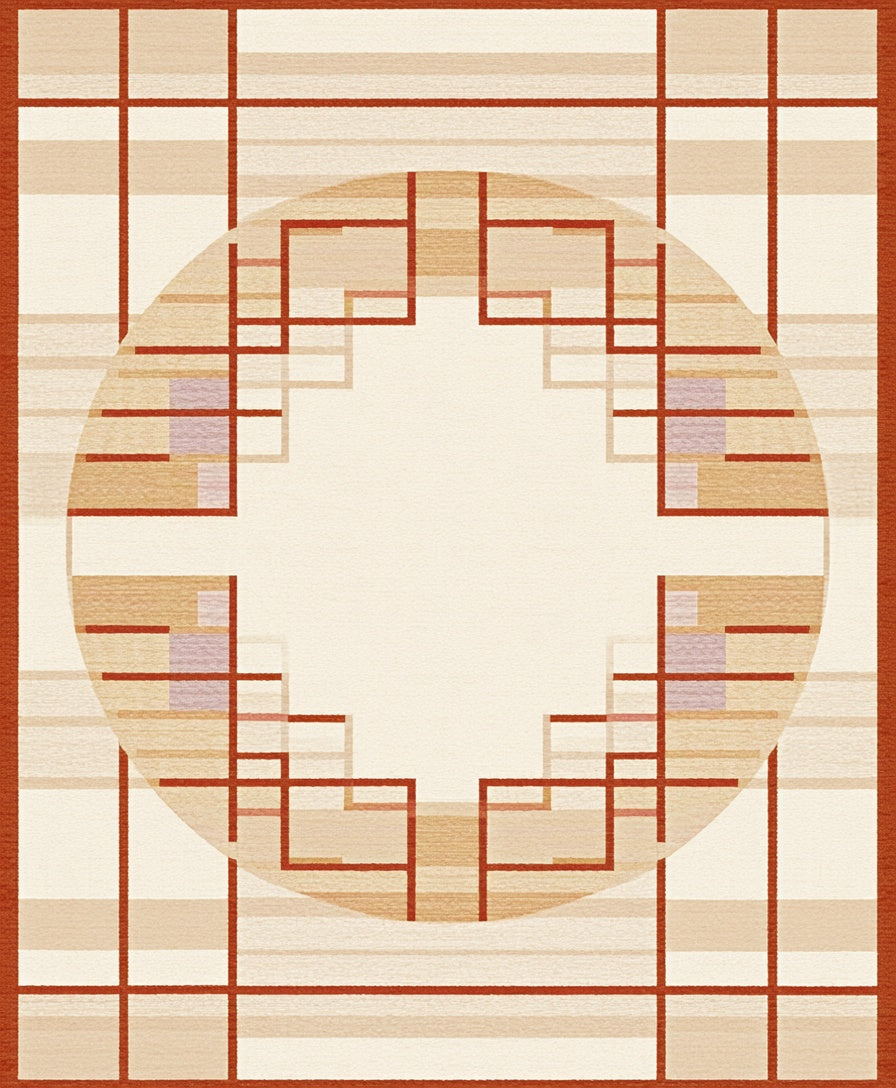 Modern Round Area Beige & Rust Geometric(Beige)