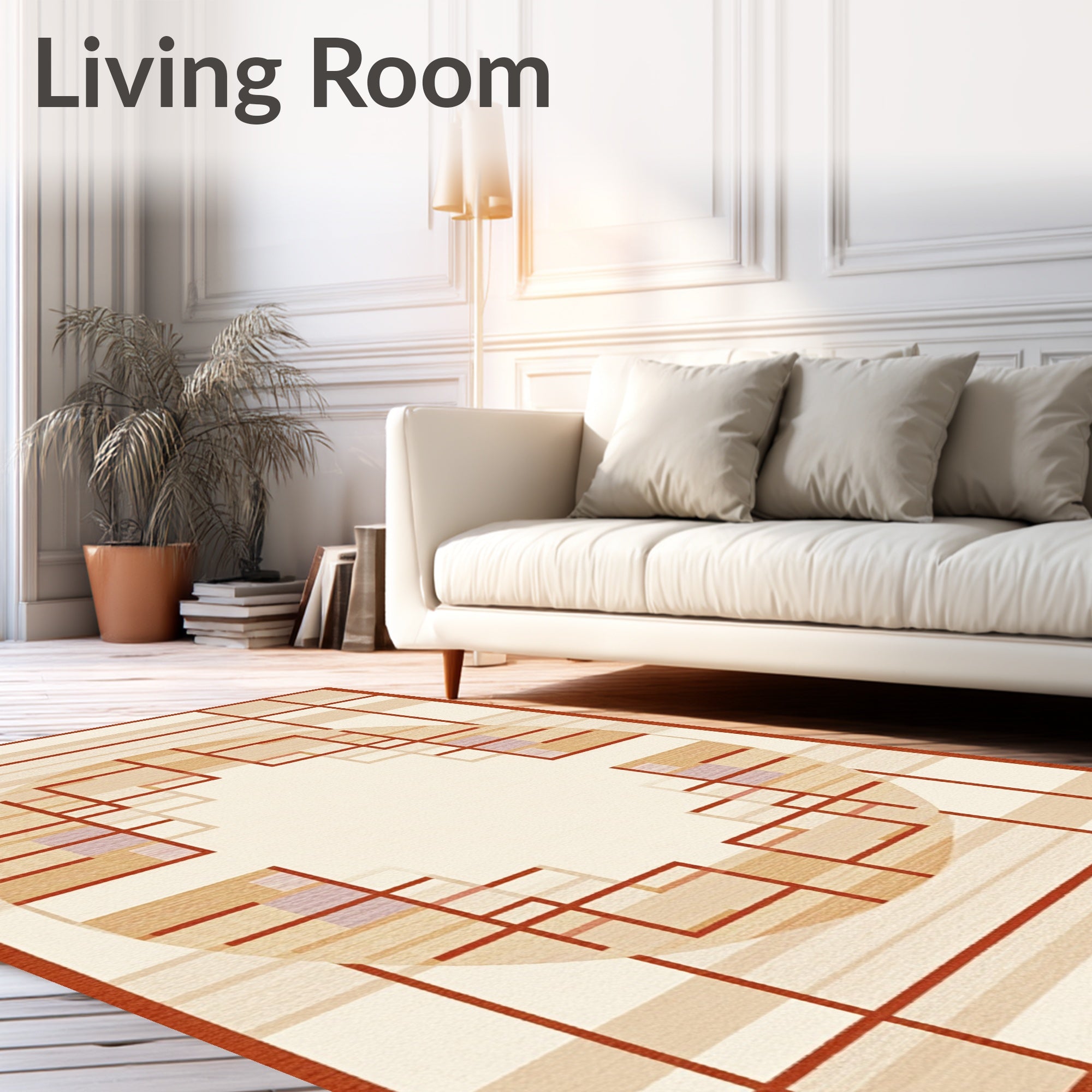 Ultra Soft Area Rug, Non Slip, Stain Resistant, Washable Area Rugs for Living Room, Bedroom, Modern Round Area Beige & Rust Geometric(Beige) Overview: