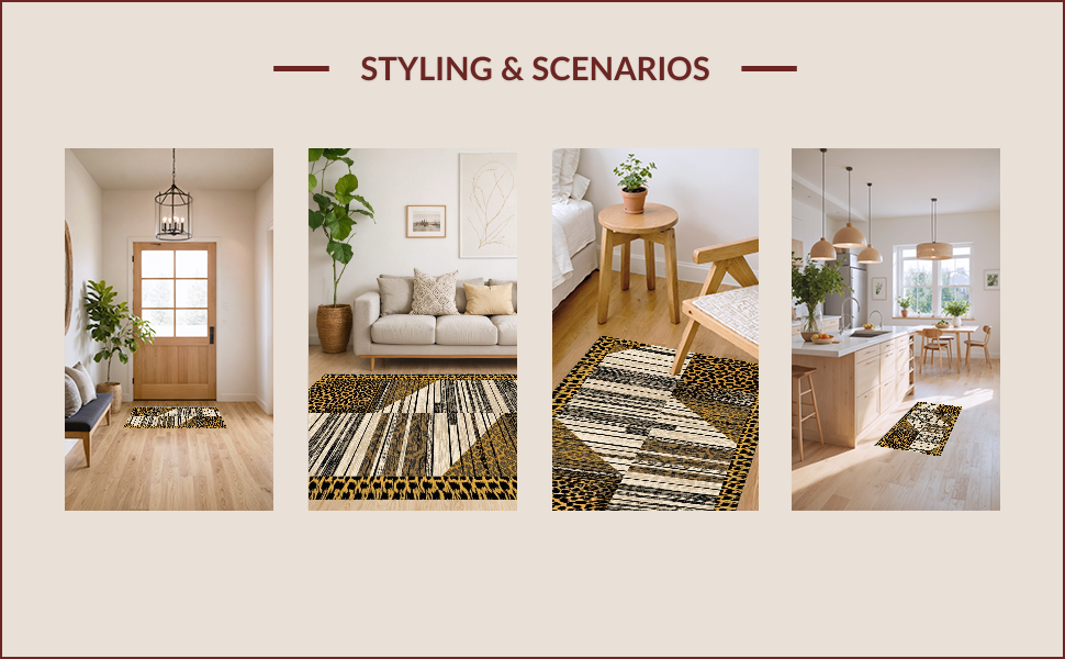 Ultra Soft Area Rug, Non Slip, Stain Resistant, Washable Area Rugs for Living Room, Bedroom, Modern Rustic Fawn Print Statement(Beige) Overview: