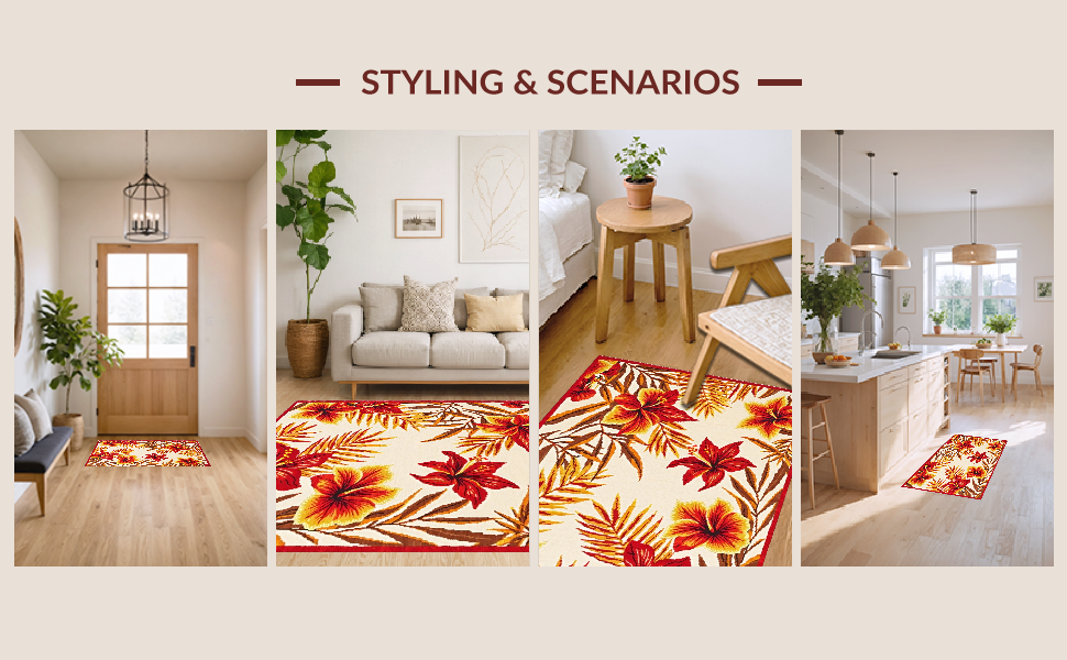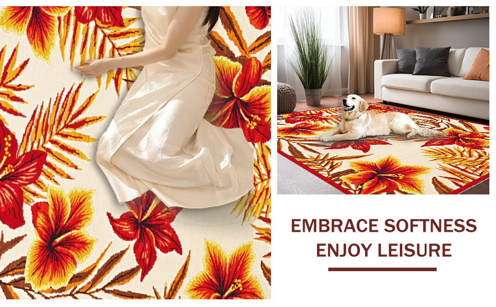 Ultra Soft Area Rug, Non Slip, Stain Resistant, Washable Area Rugs for Living Room, Bedroom, Modern Rustic Floral Aesthetic(Beige) Overview: