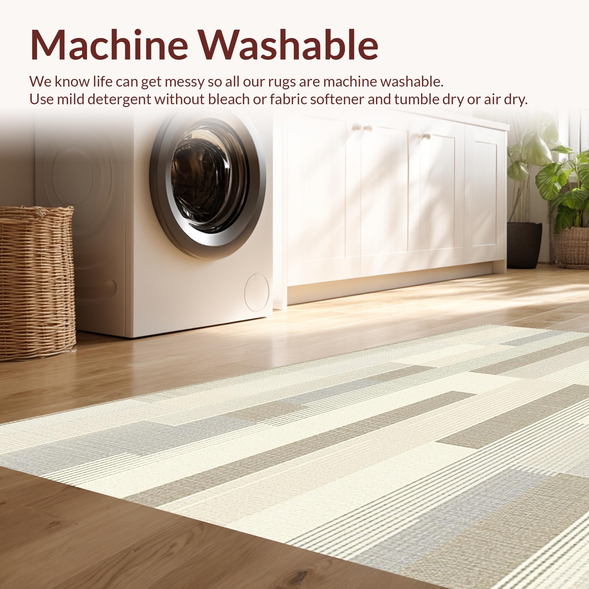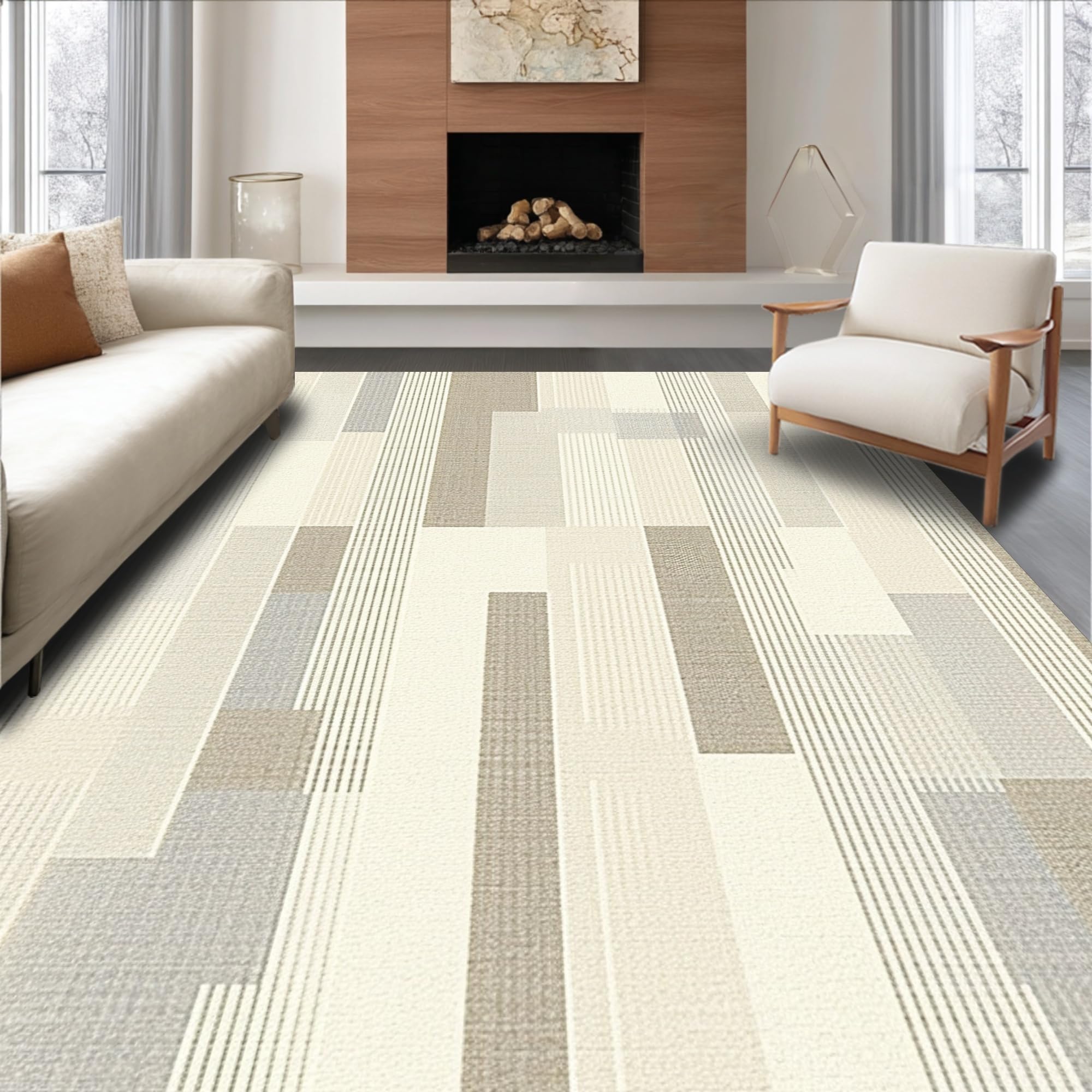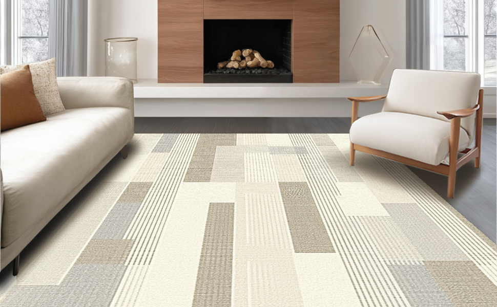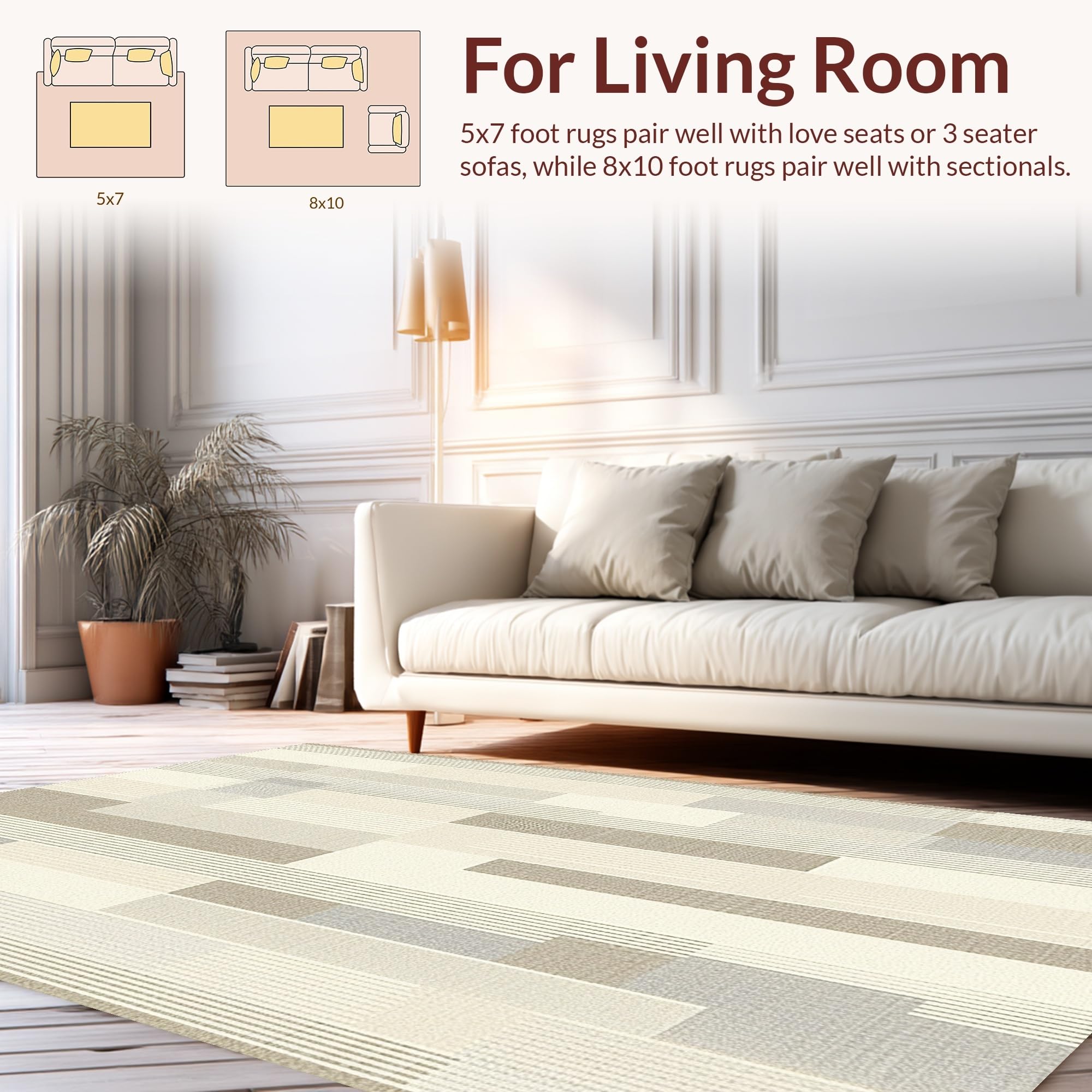 Ultra Soft Area Rug, Non Slip, Stain Resistant, Washable Area Rugs for Living Room, Bedroom, Modern Rustic Horizontal Stripes(Beige) Overview: