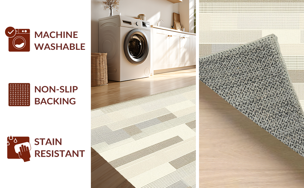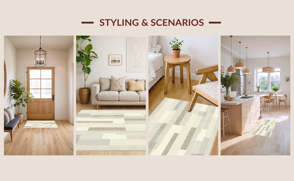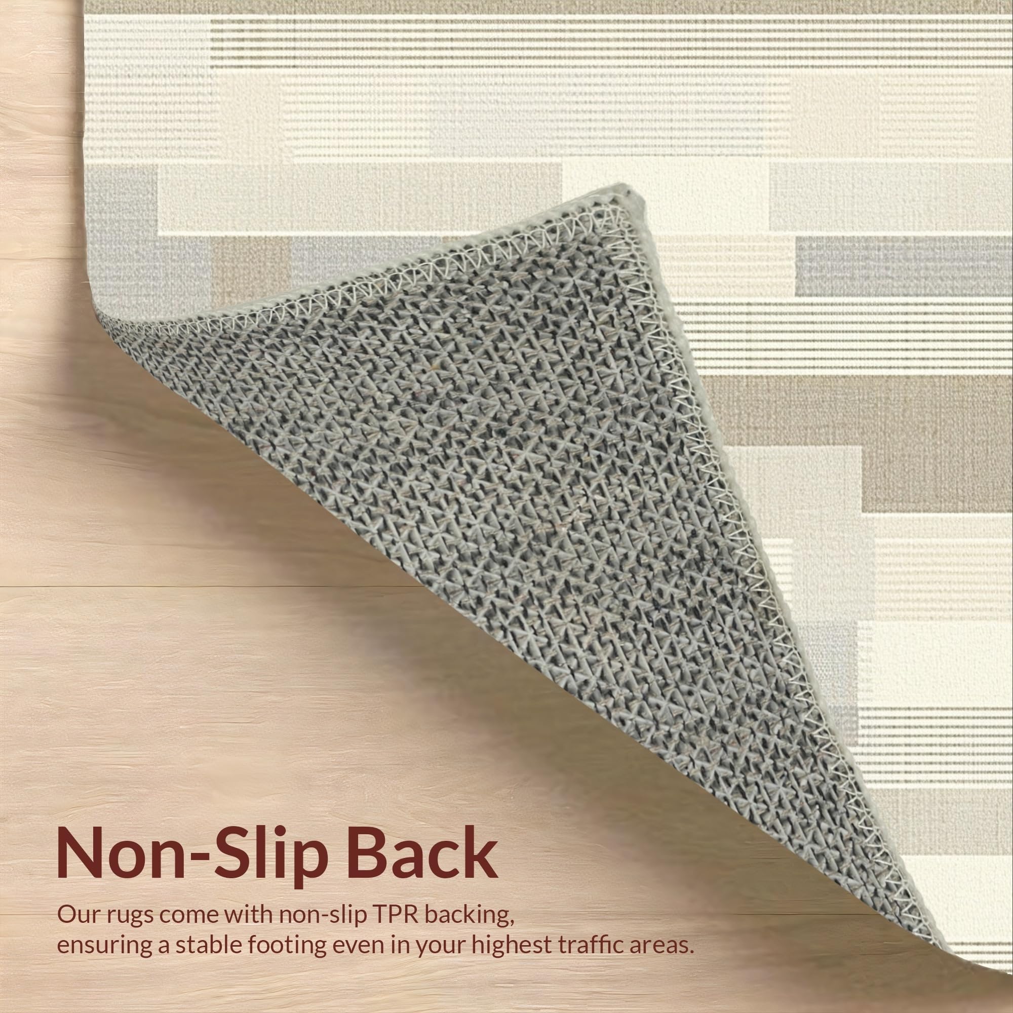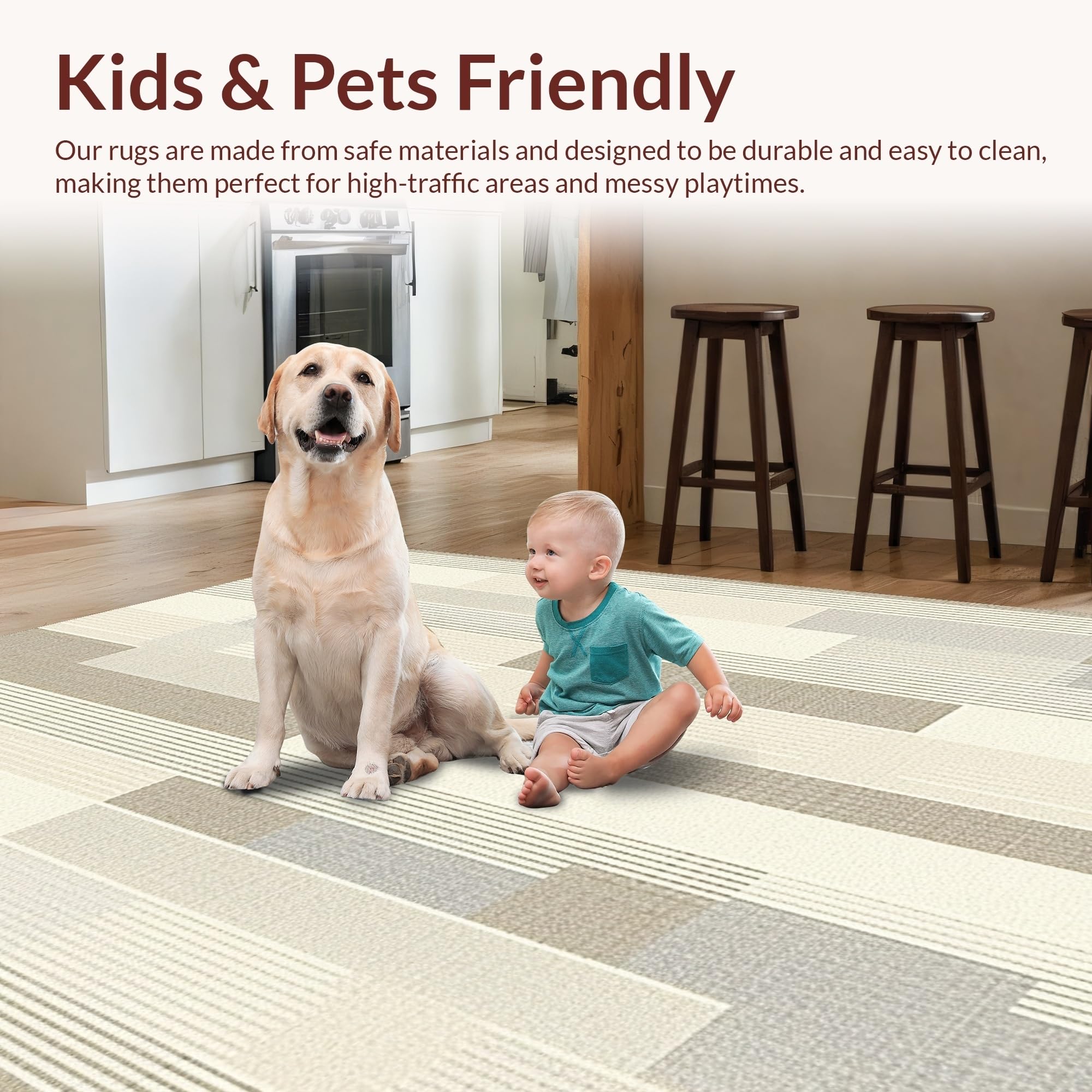 Ultra Soft Area Rug, Non Slip, Stain Resistant, Washable Area Rugs for Living Room, Bedroom, Modern Rustic Horizontal Stripes(Beige) Overview: