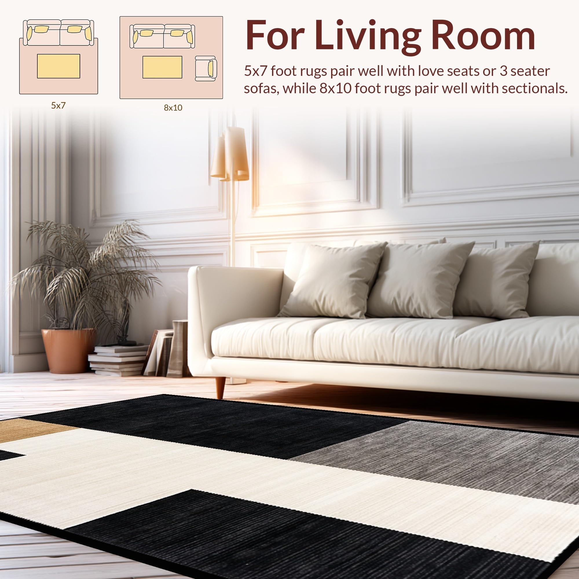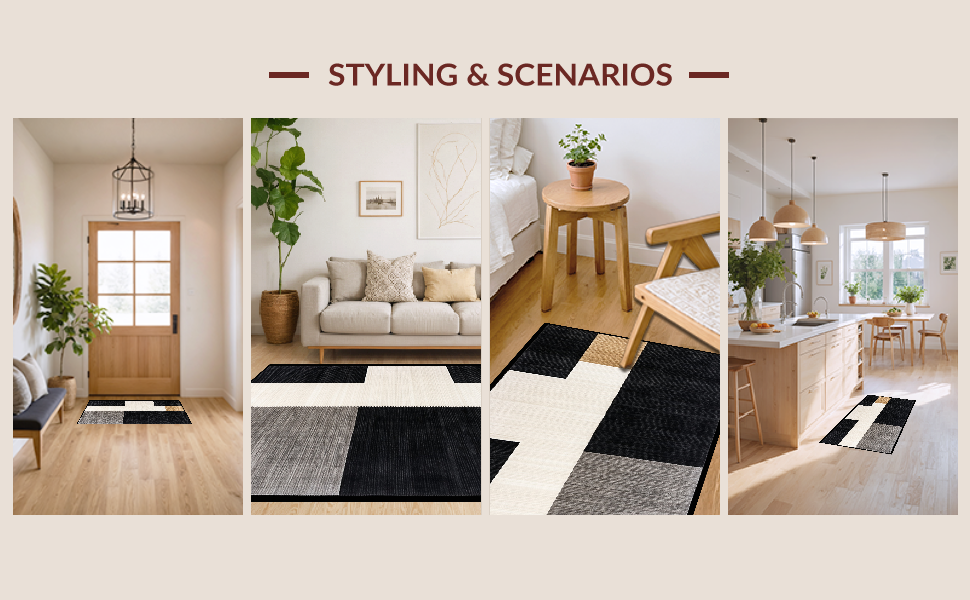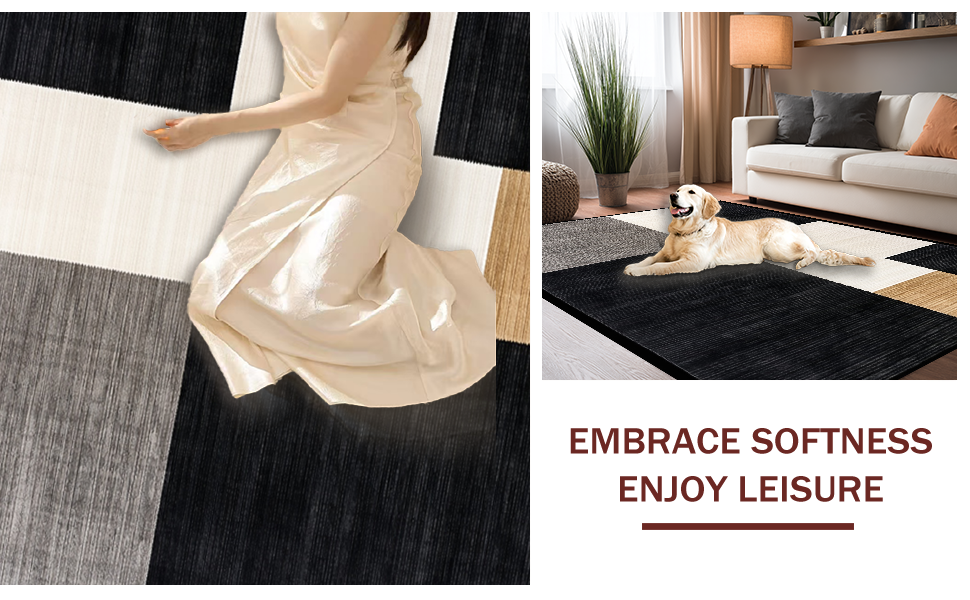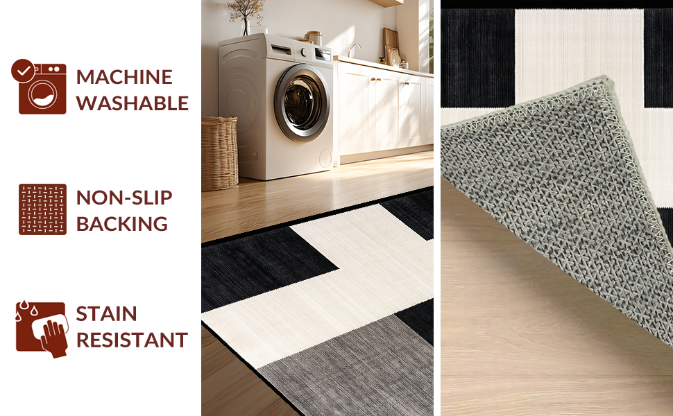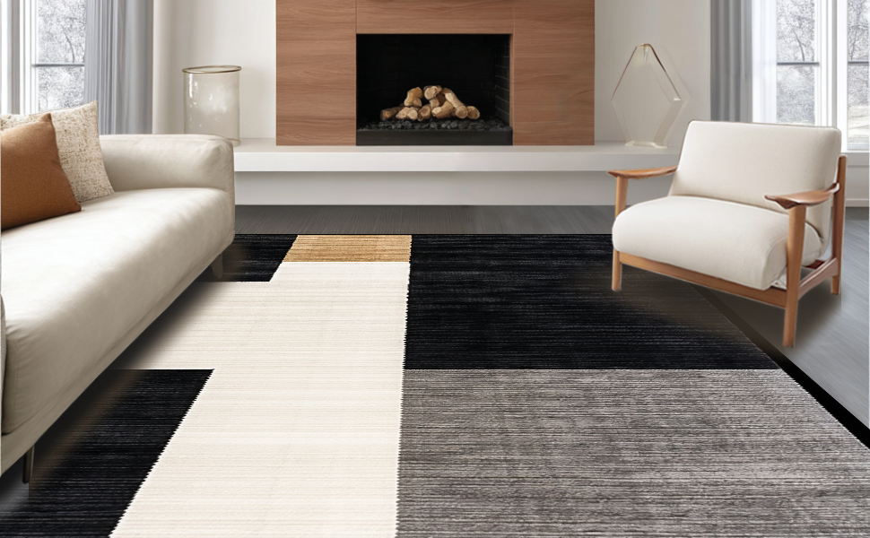 Ultra Soft Area Rug, Non Slip, Stain Resistant, Washable Area Rugs for Living Room, Bedroom, Modern Rustic Lattice Arrangement(Black) Overview: