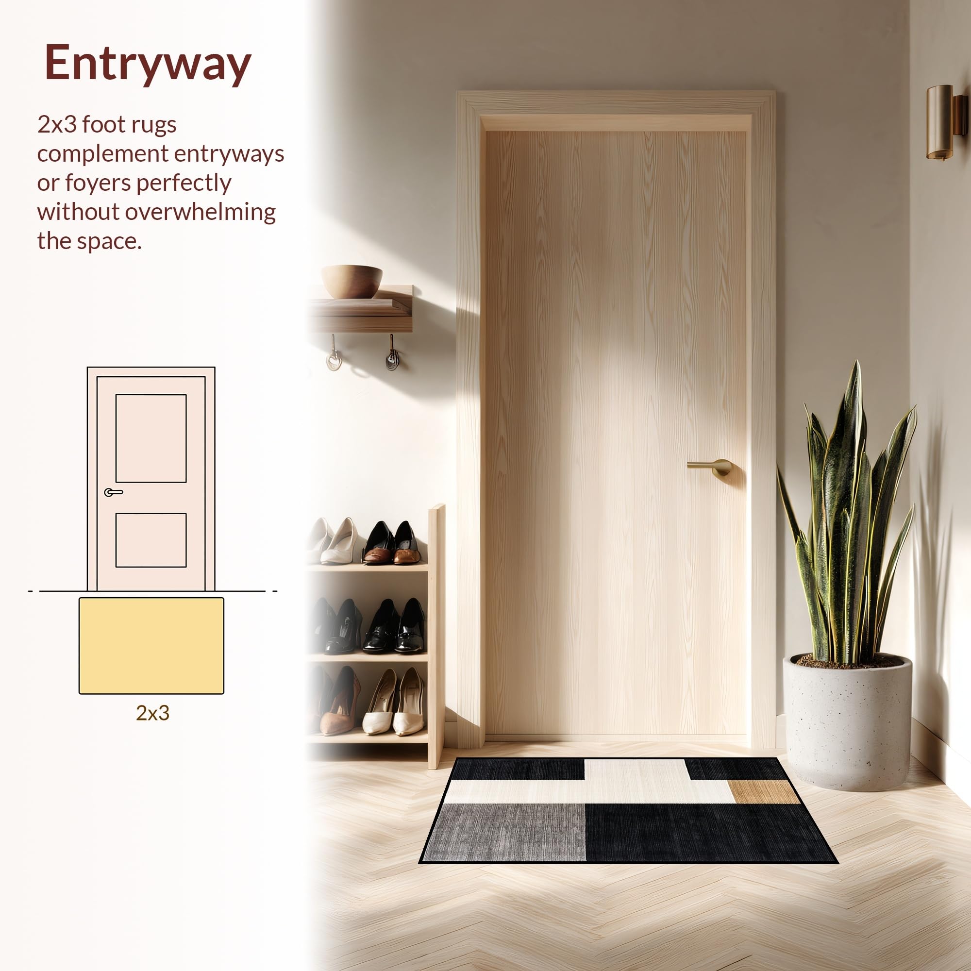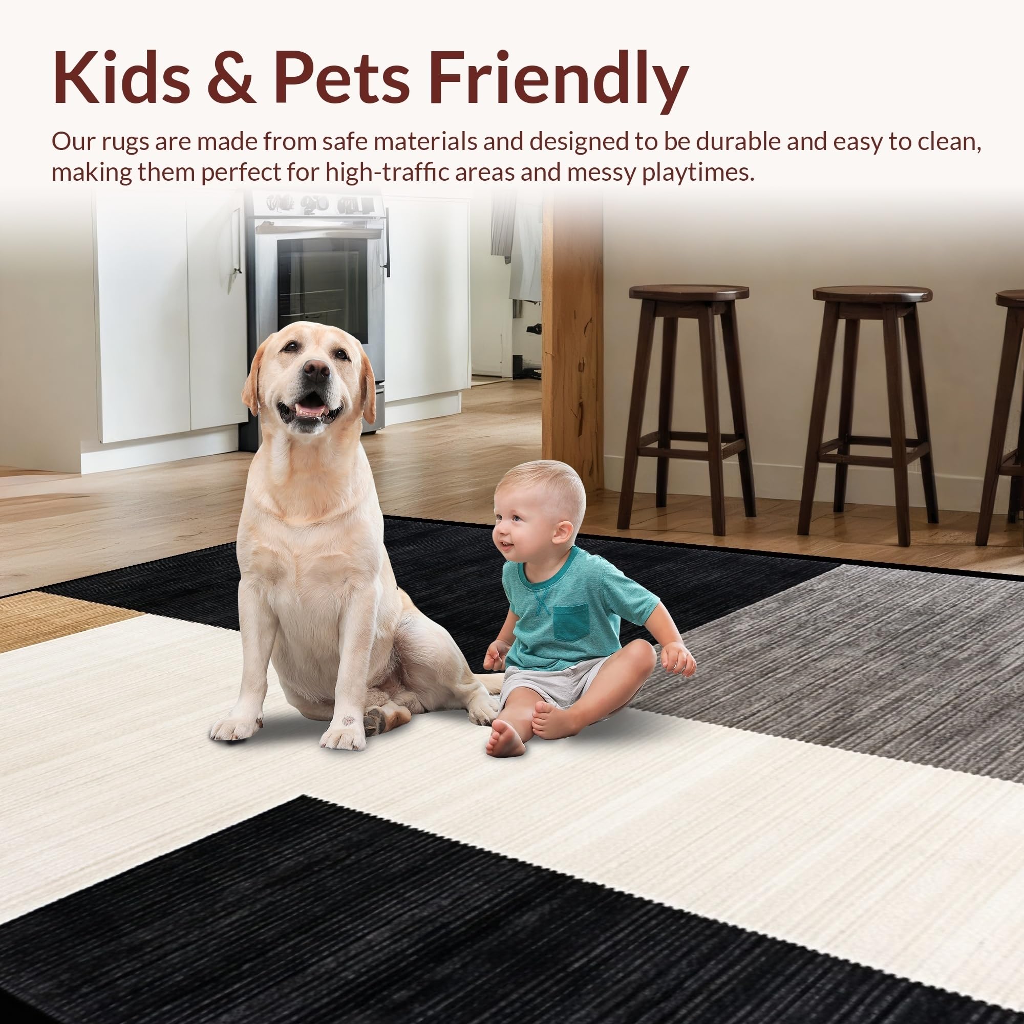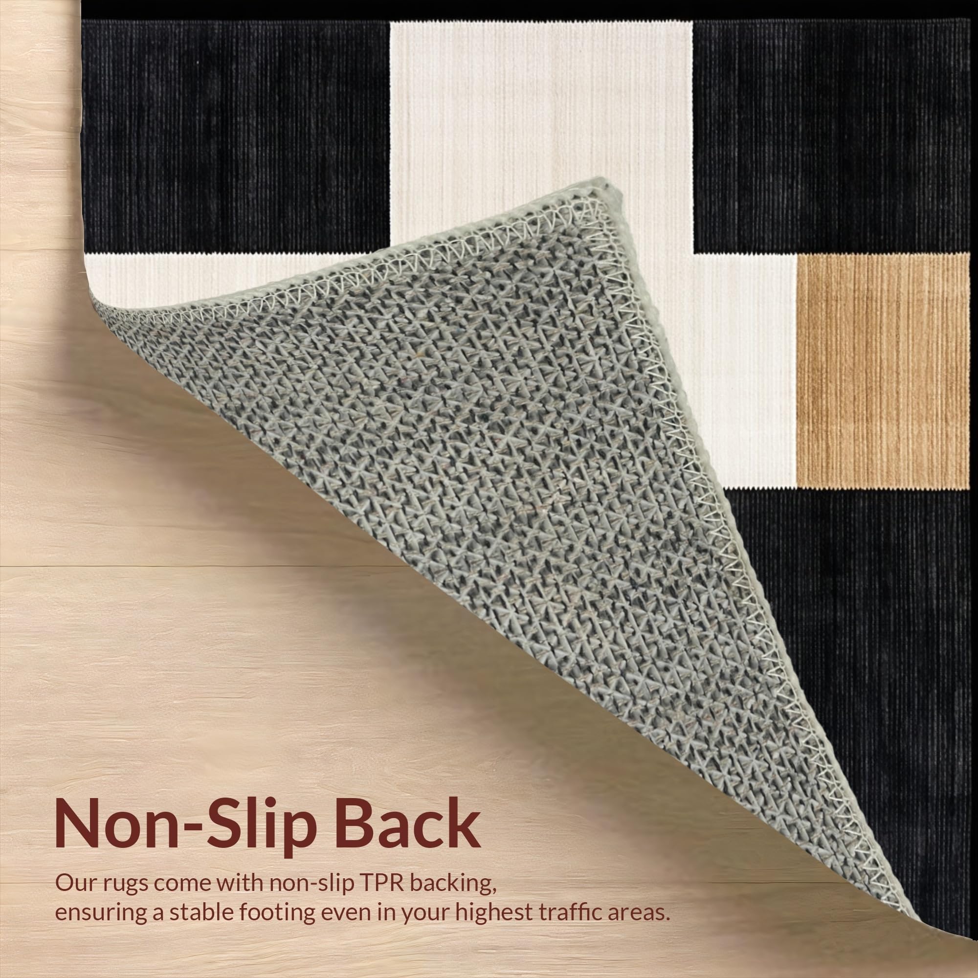 Ultra Soft Area Rug, Non Slip, Stain Resistant, Washable Area Rugs for Living Room, Bedroom, Modern Rustic Lattice Arrangement(Black) Overview: