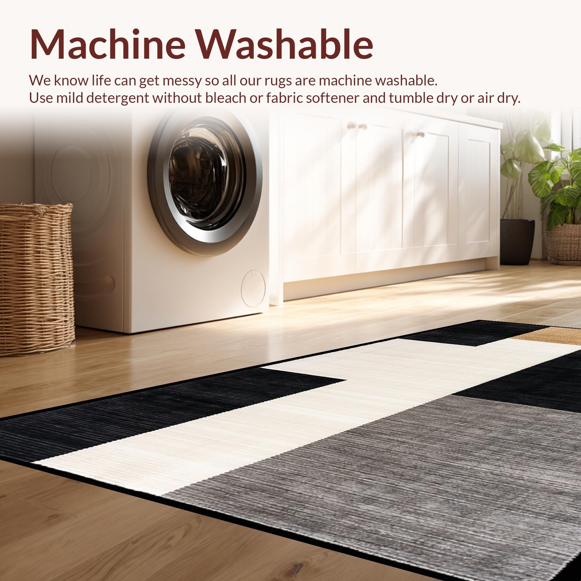 - Machine Washable: Our rugs can be easily thrown in the wash machine.