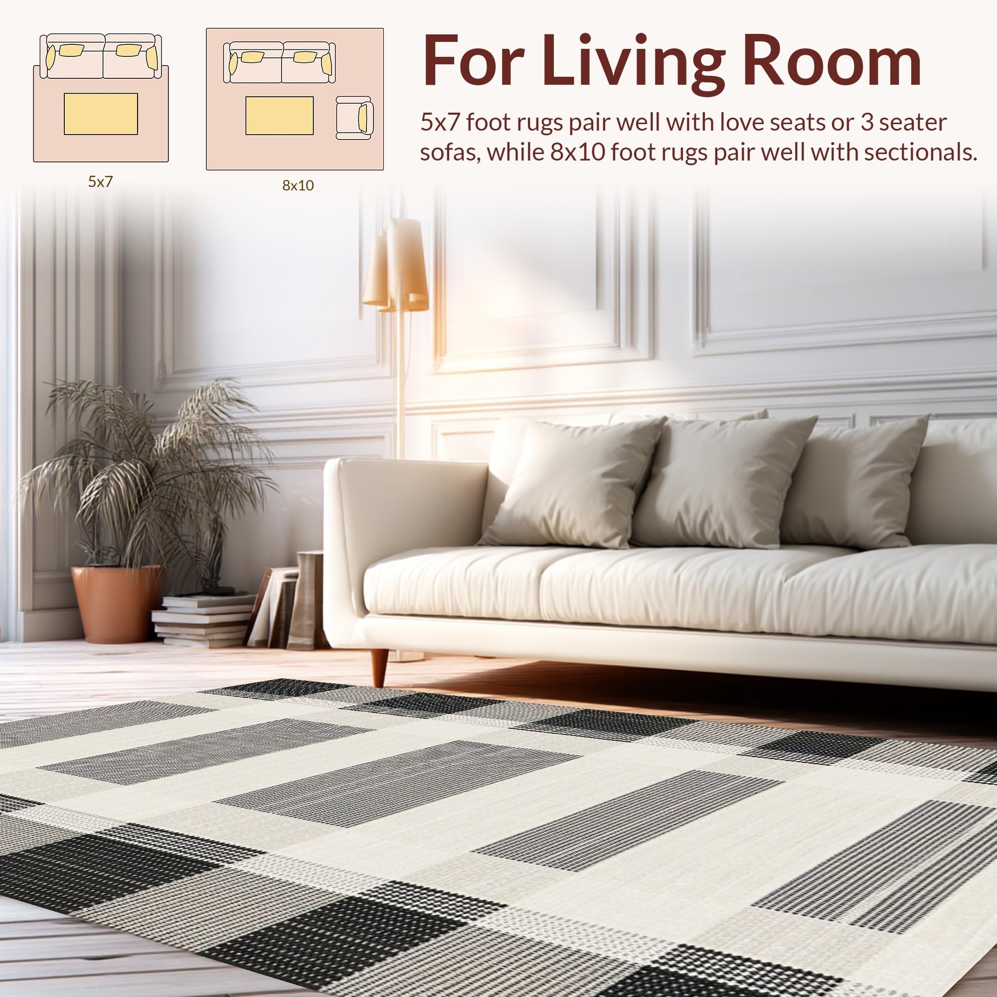 Ultra Soft Area Rug, Non Slip, Stain Resistant, Washable Area Rugs for Living Room, Bedroom, Modern Rustic Ogee Pattern(Gray) Overview: