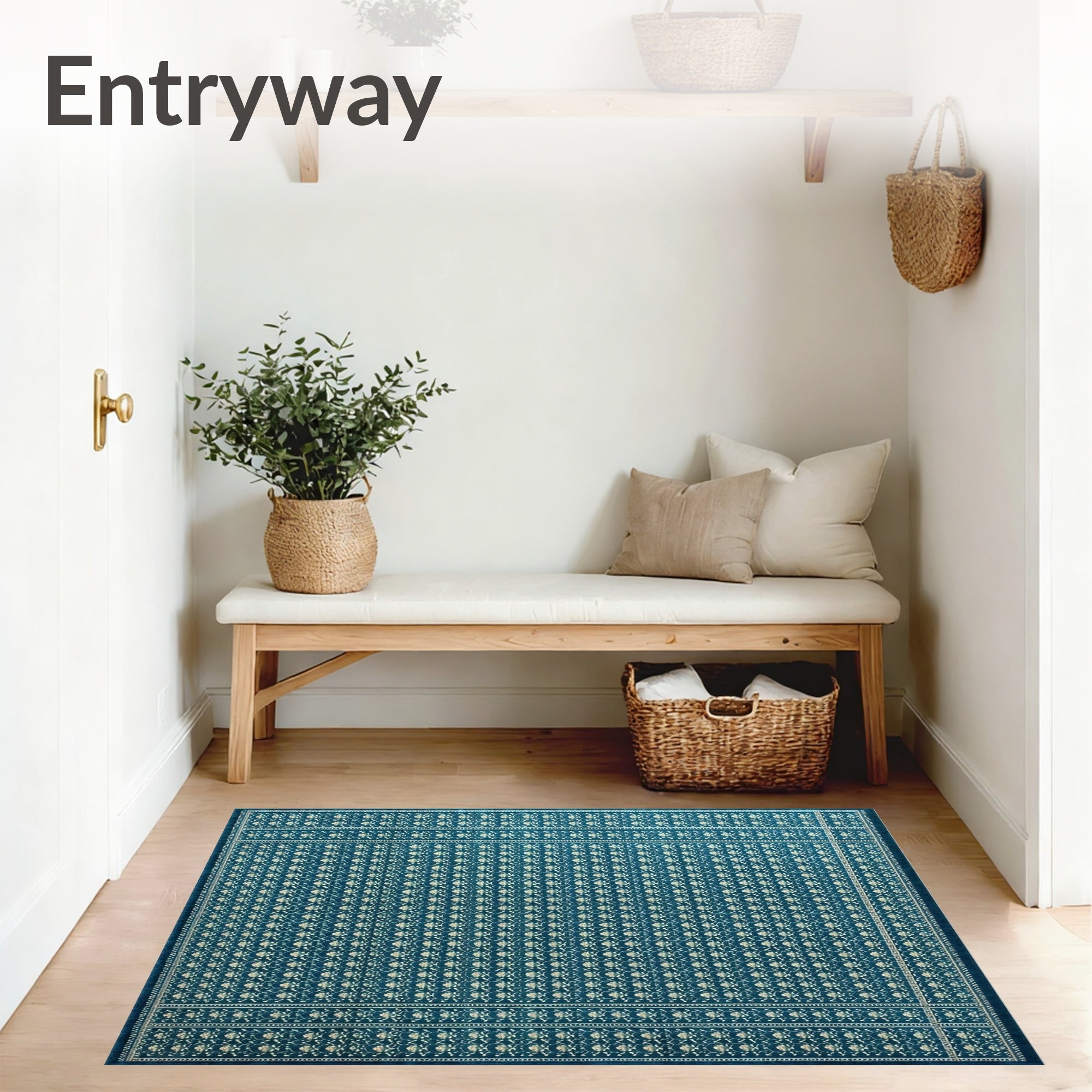 Ultra Soft Area Rug, Non Slip, Stain Resistant, Washable Area Rugs for Living Room, Bedroom, Modern Scallop(Blue) Overview: